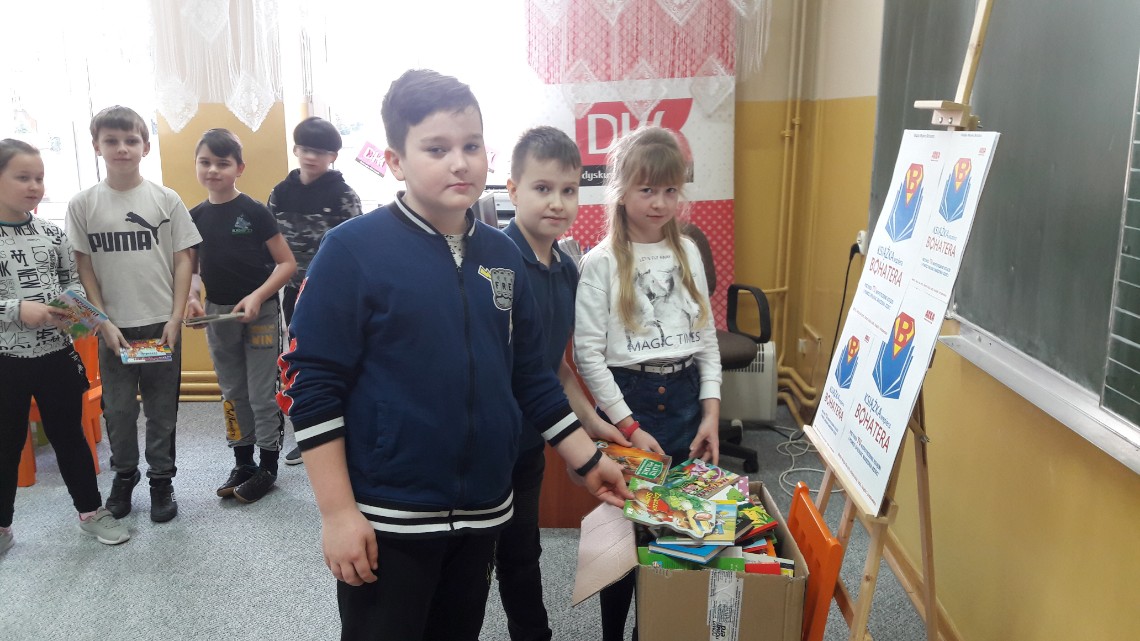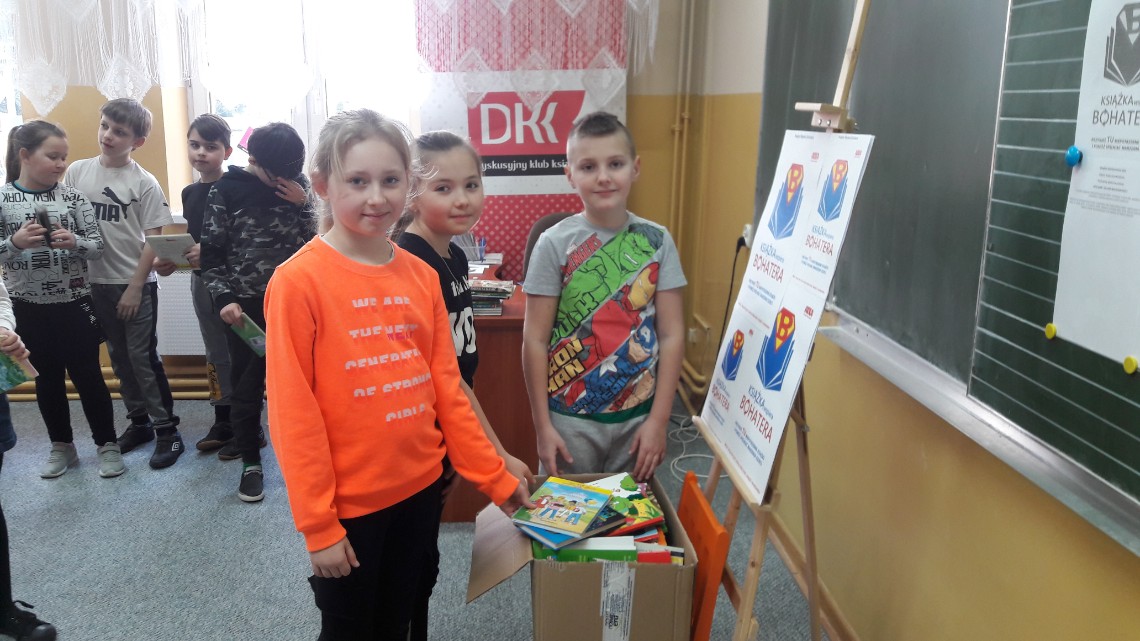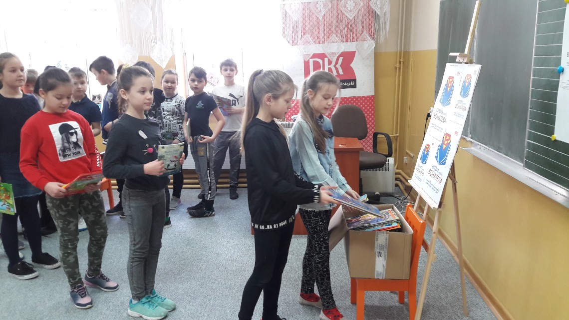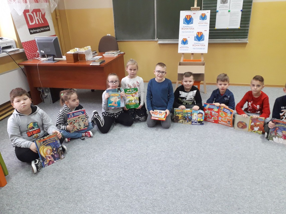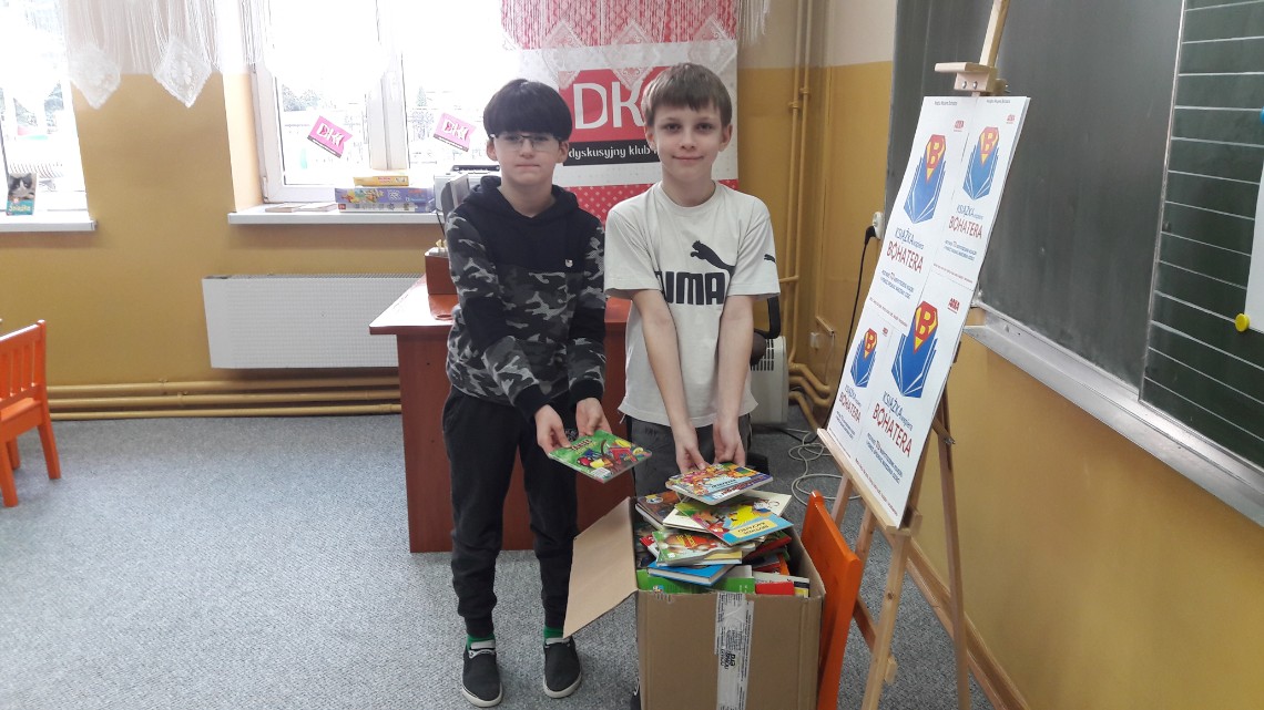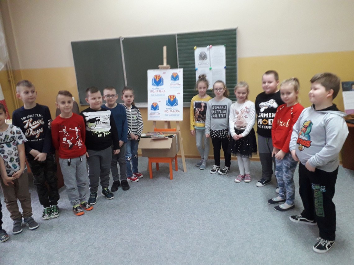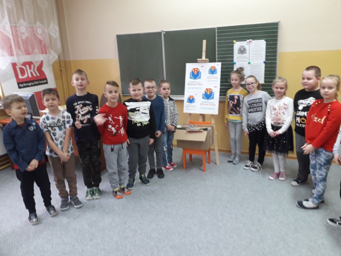 „Książka wspiera bohatera” to nowa inicjatywa fundacji, która łączy w sobie kilka aspektów: ochronę środowiska, edukację kulturalną i pomoc społeczną. Uczniowie naszej szkoły angażując się w akcję, pokazali jak wiele można uczynić dla innych. Szczególnie mocno zaangażowały się klasy Ia z wych. M. Gawłowicz, IIIa z wych. R. Gazdecką, IIIb z wych. M. Sucharzewską, IV z wych. M. Łysiak i Vb z wych. E. Świątkiewicz-Maj.