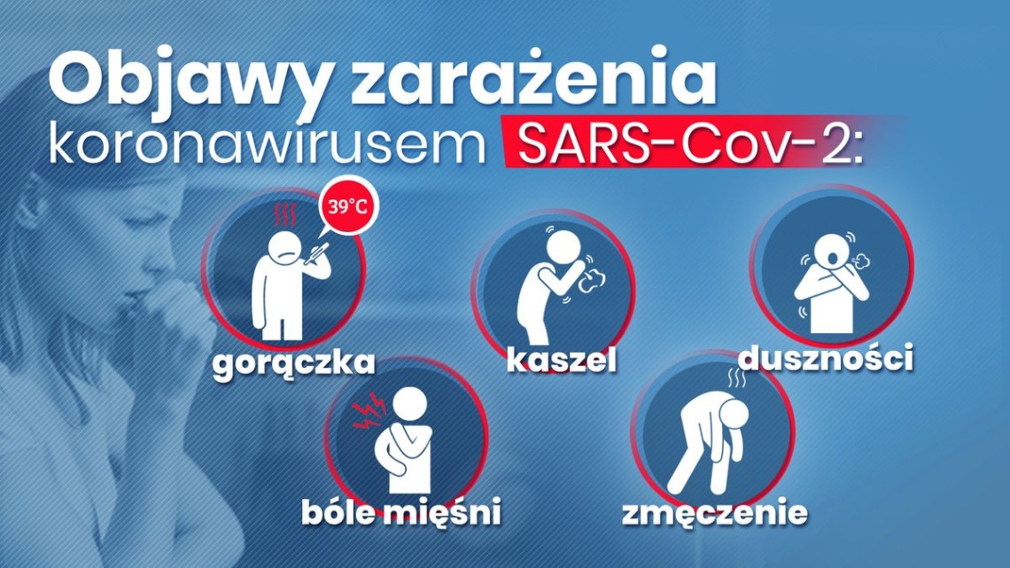 Nowy koronawirus SARS-Cov-2 wywołuje chorobę o nazwie COVID-19. Choroba objawia się najczęściej gorączką, kaszlem, dusznościami, bólami mięśni, zmęczeniem.