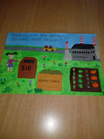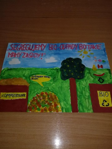 Jednym z działań był  Konkurs plastyczny -  Hasło: „Segregujemy BIO-odpady, bo takie mamy zasady!” skierowany do uczniów szkół podstawowych z klas: I-III. Uczniowie wykonali plakaty zgodnie z tematem konkursu.