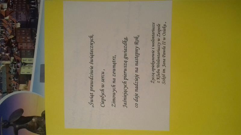 - Autor kartek: wolntariusz z klasy VIIIb - Patryk Macias