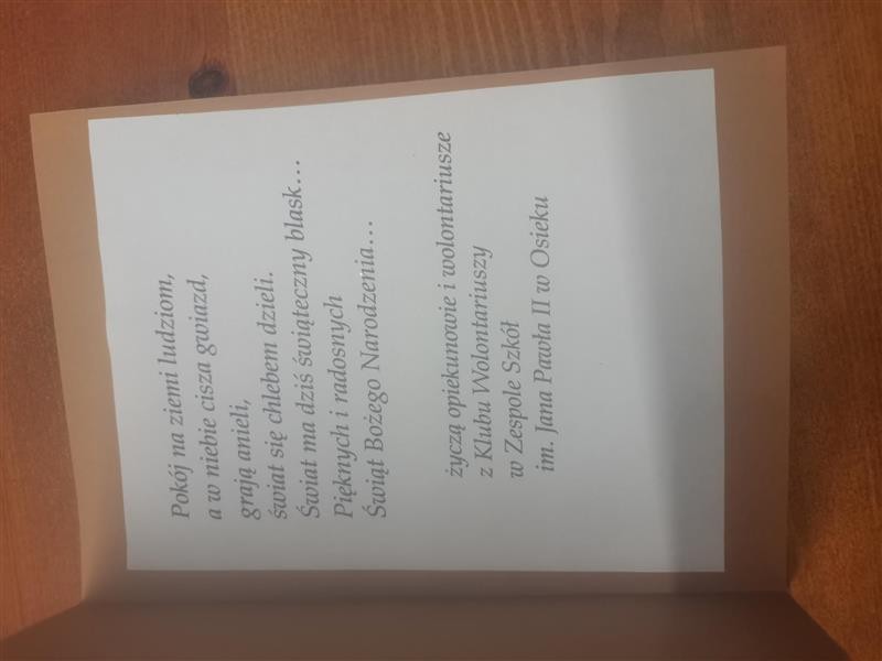 Wolontariusze z Zespołu Szkół im. Jana Pawła II w Osieku w bieżącym roku szkolnym biorą udział w III edycji akcji MEN „Razem na Święta”, której głównym celem jest budowanie wspólnot i więzi międzypokoleniowych.