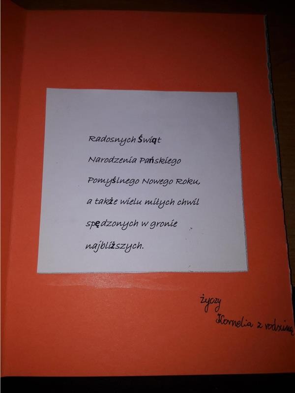 1. Wykonanie kartek z życzeniami świątecznymi i przekazanie ich sąsiadom poprzez wrzucenie ich do skrzynek pocztowych.