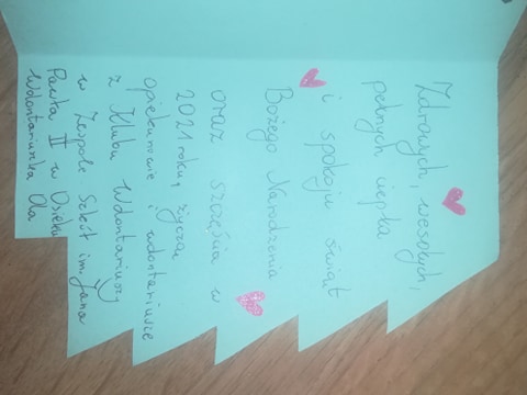 - Autor kartek: wolontariusz z klasy VIb - Julia Jazgara