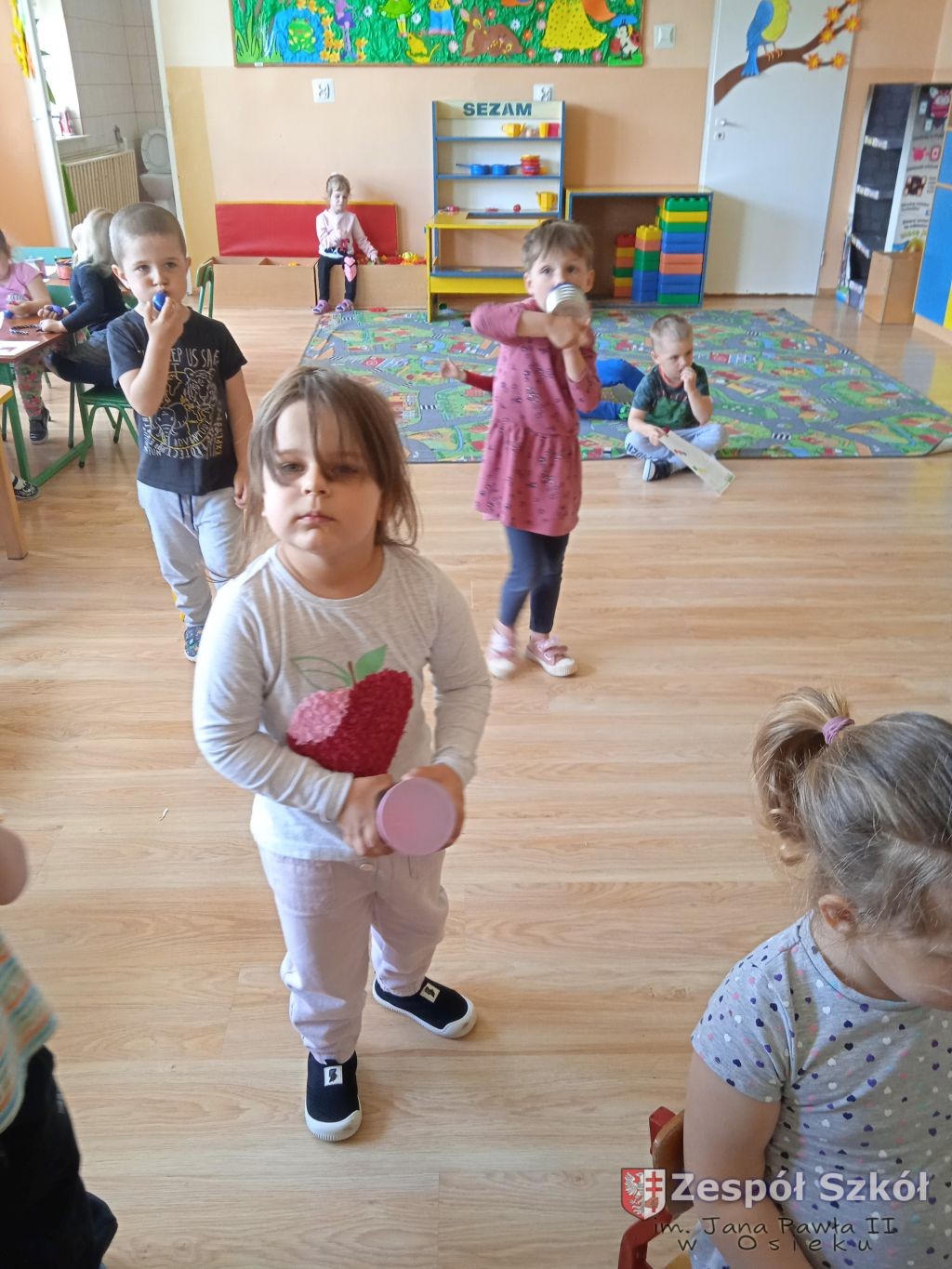 2) Wystukiwane rytmu na własnoręcznie wykonanych bębenkach.