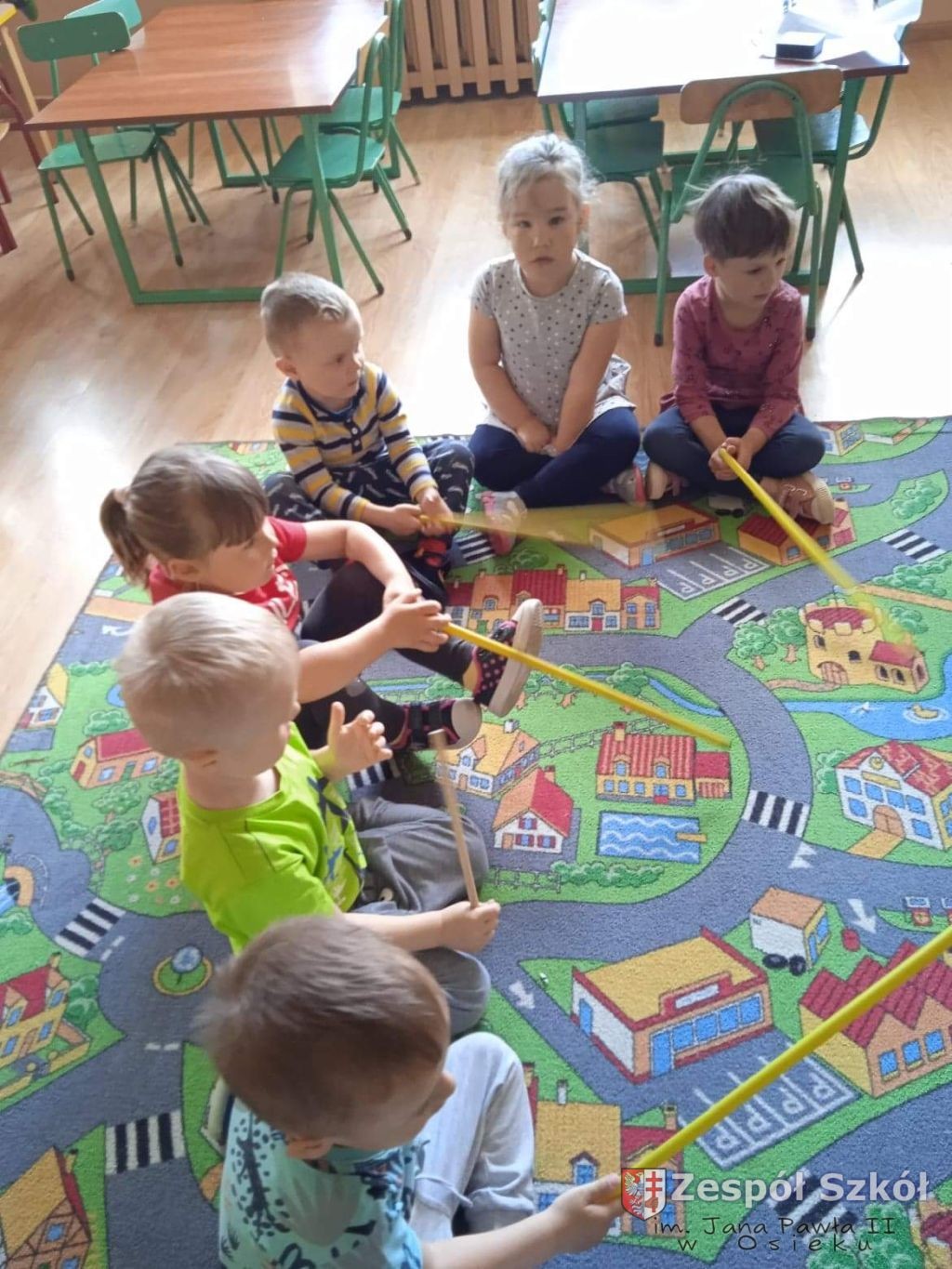 5) Zabawa „Ile dźwięków słyszysz?”.