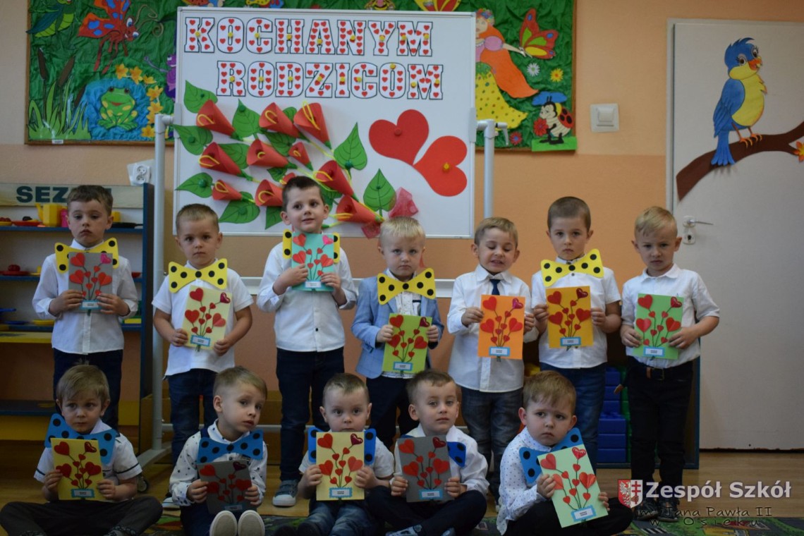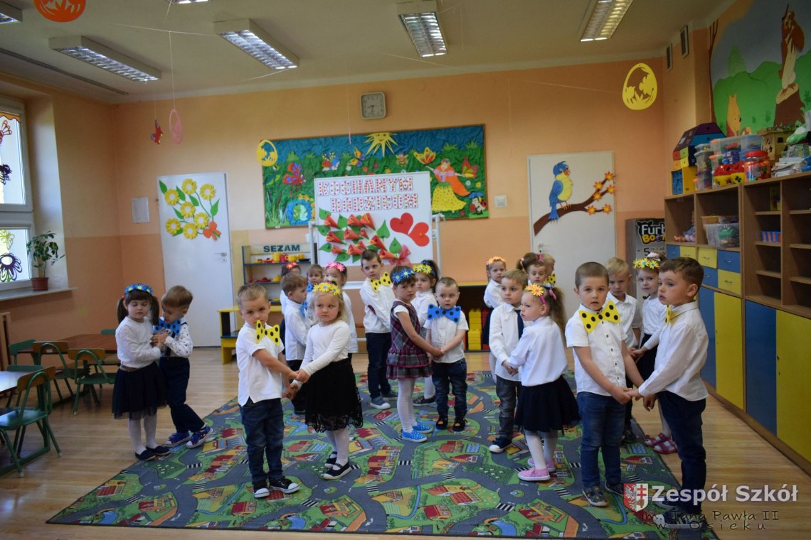 Dzieci z ogromnym przejęciem i zaangażowaniem, śpiewały piosenki, recytowały wiersze, przygotowały laurki, dziękowały za miłość, trud wychowania, troskę i cierpliwość. Życzenia płynęły prosto z małych, ale gorących serc!!!