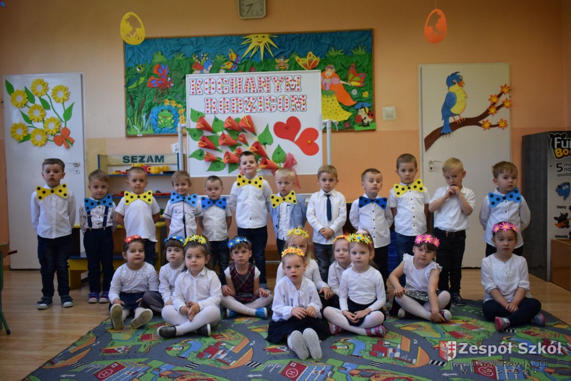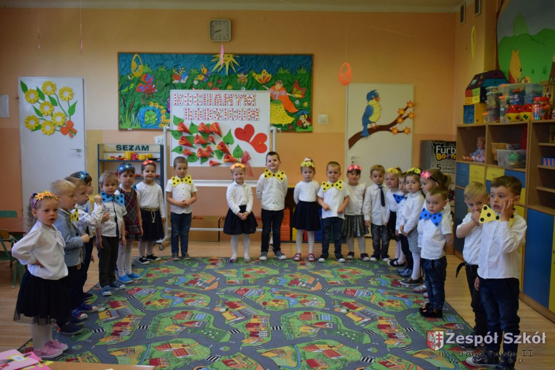 i Muchomorków zaprezentowały swoim Rodzicom występy z okazji Ich święta. Niestety w związku z pandemią koronawirusa rodzice nie mogli uczestniczyć w uroczystościach na żywo.