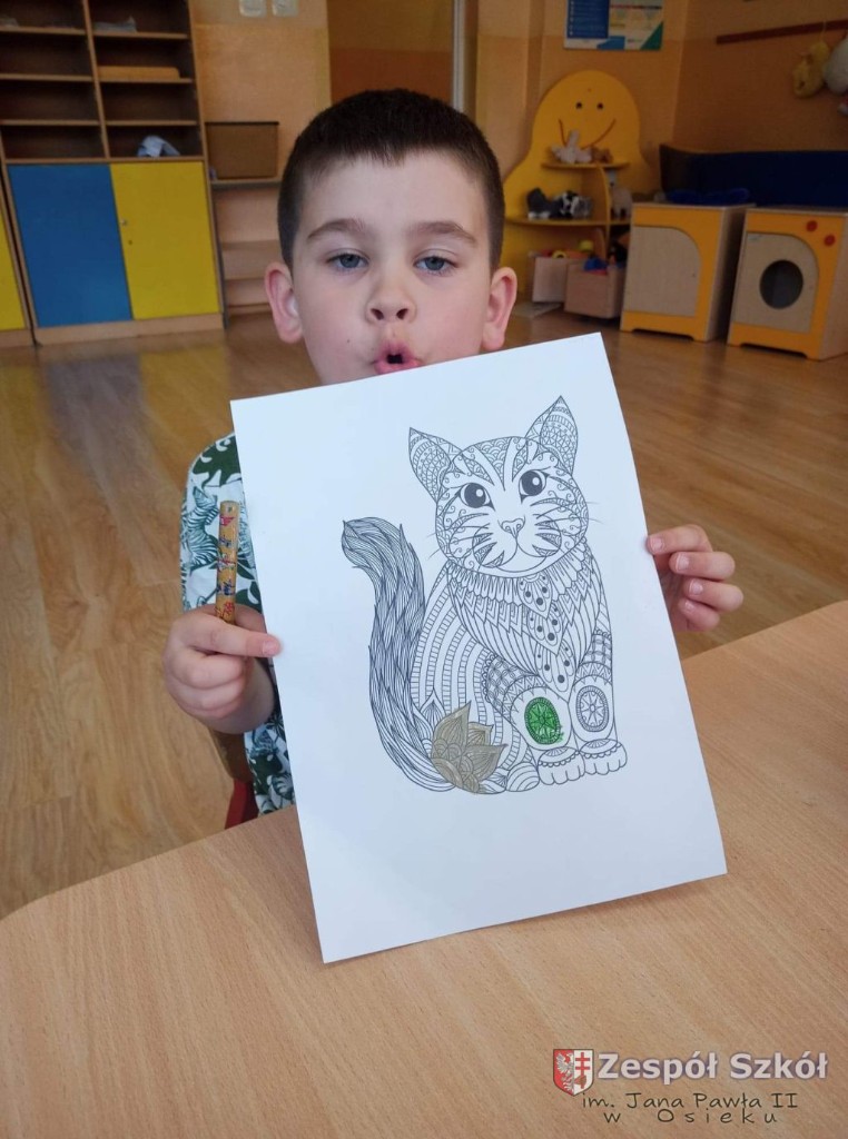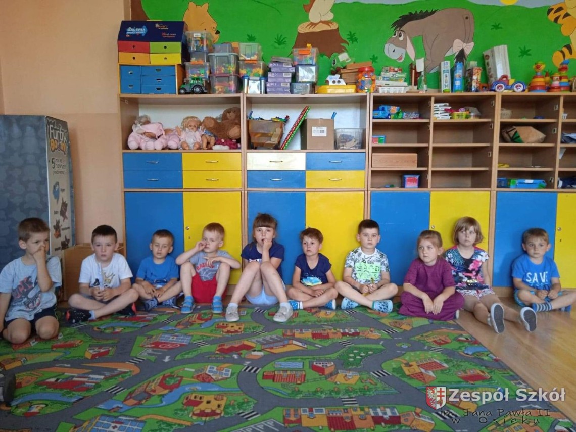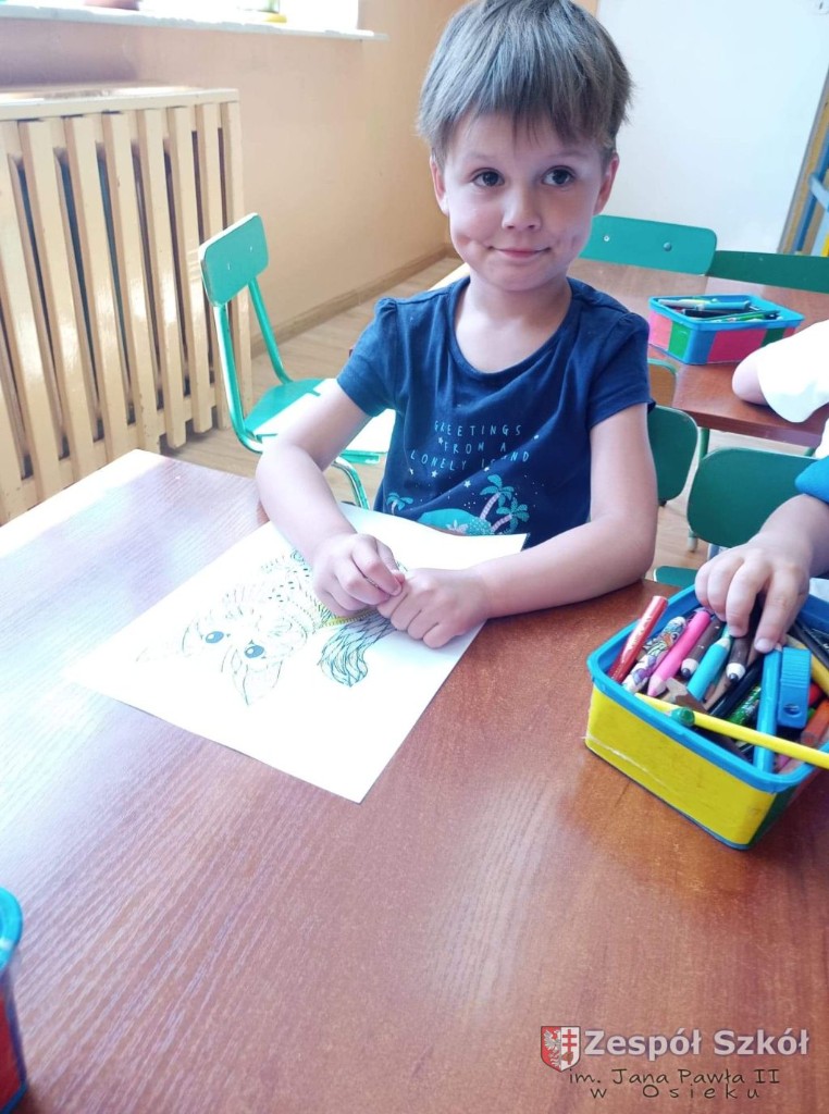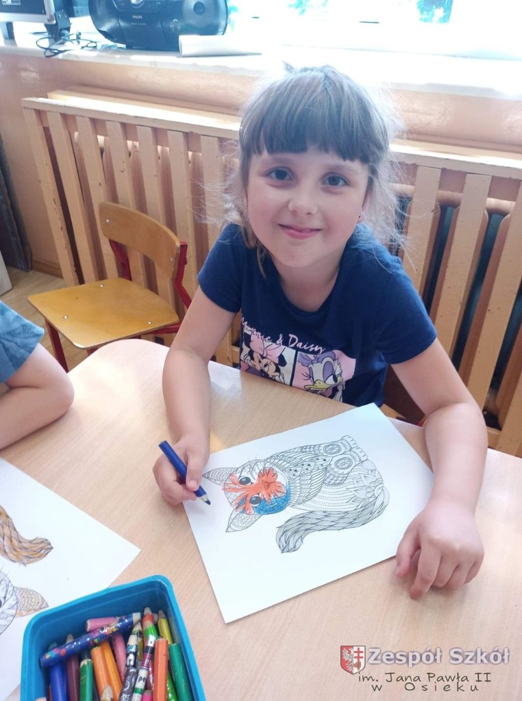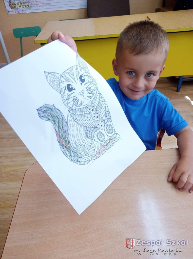 W dniu 10.06.2021 roku w Publicznym Przedszkolu w Zespole Szkól im. Jana Pawła II w Osieku odbyły się kolejne profilaktyczne zajęcia logopedyczne. Tym razem były to ćwiczenia i zabawy relaksacyjne. Są one wykorzystywane w terapii logopedycznej w celu zredukowania nadmiernego napięcia i stresu. Najpierw dzieci wysłuchały bajki relaksacyjnej pt: ,,Kotek", podczas której wykonywały szereg ćwiczeń relaksacyjnych. Następnie przy dźwiękach muzyki relaksacyjnej wykonywały ćwiczenia manualne w postaci kolorowanki relaksacyjnej.