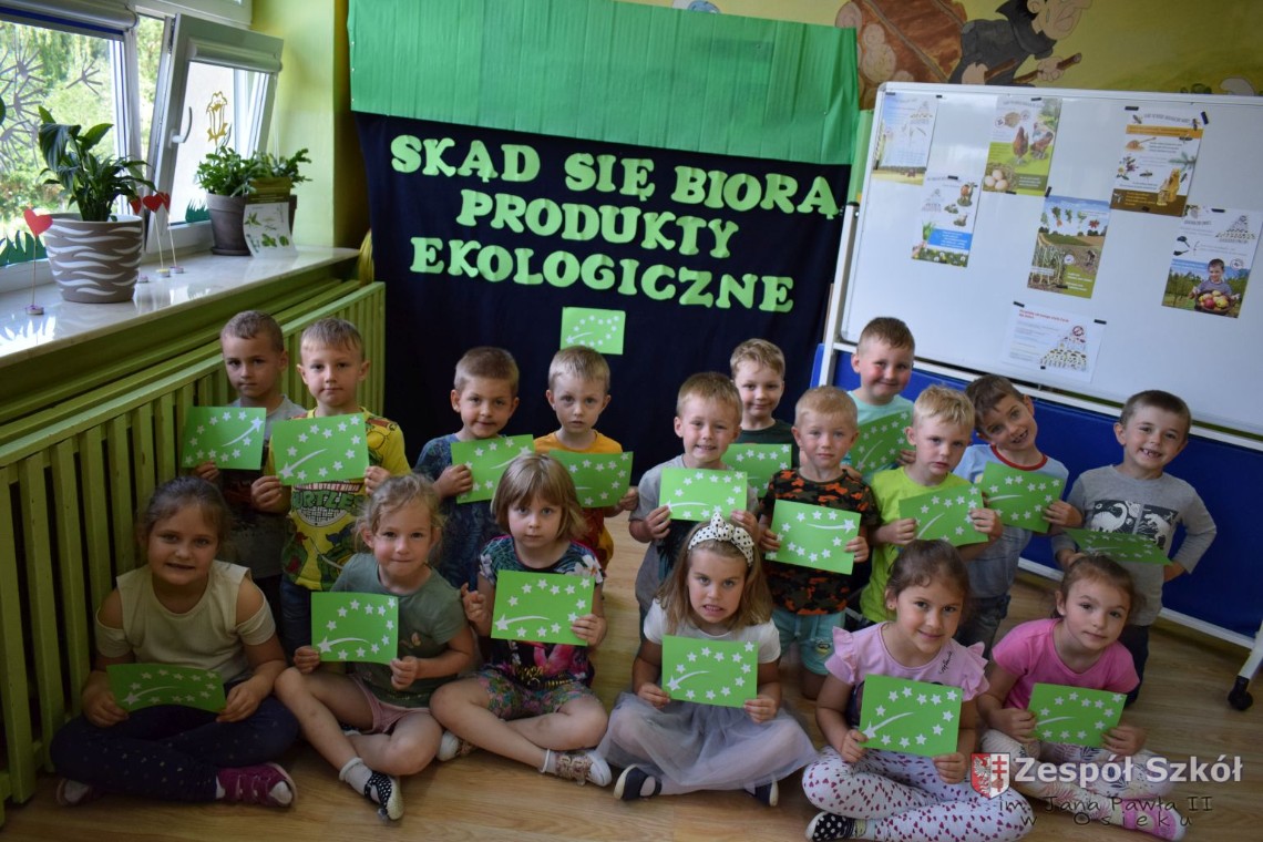 Dzieci pięcioletnie i sześcioletnie z naszego przedszkola w bieżącym roku szkolnym wzięły udział w ogólnopolskim programie edukacyjnym dla przedszkoli „Skąd się biorą produkty ekologiczne”, opracowanym wspólnie z Ministerstwem Rolnictwa i Rozwoju Wsi.