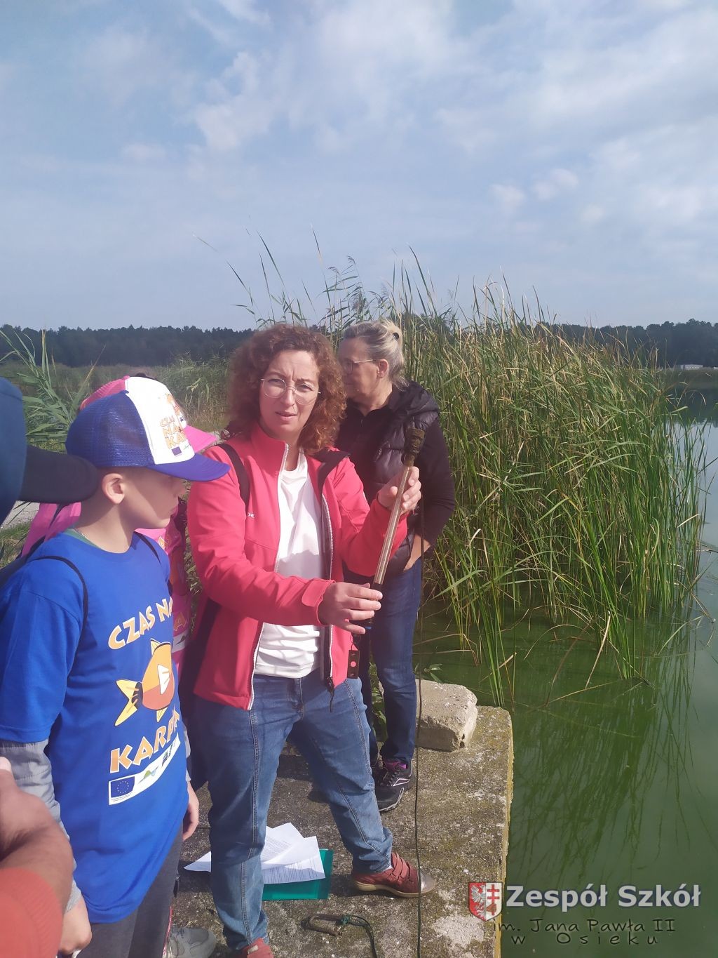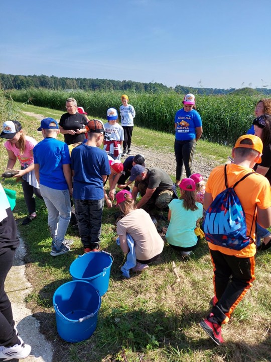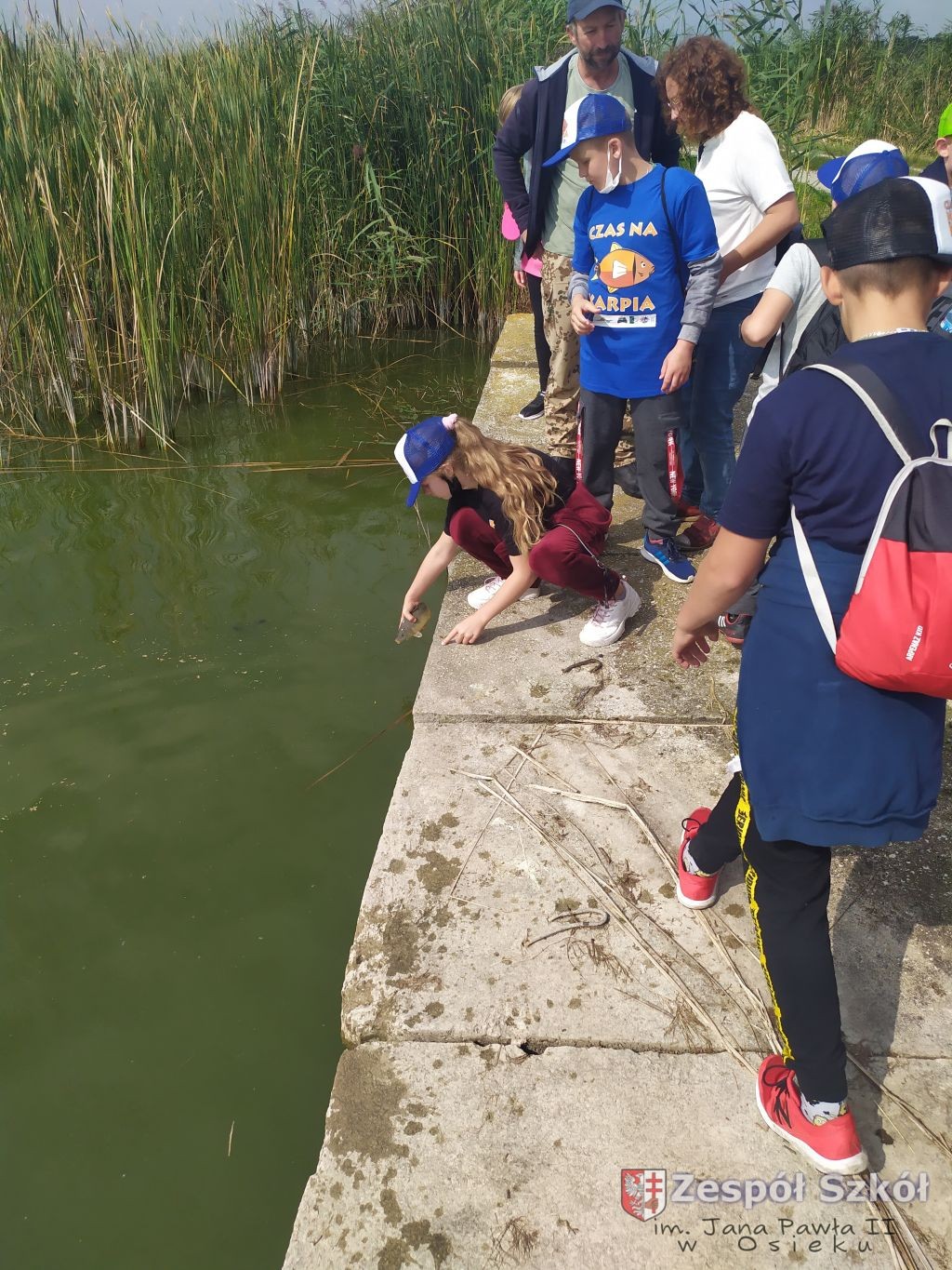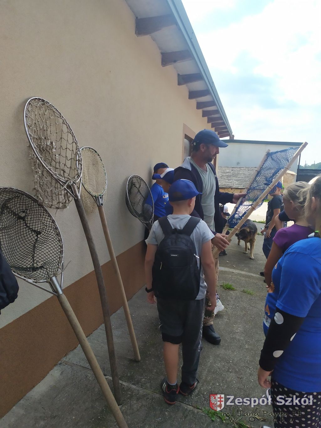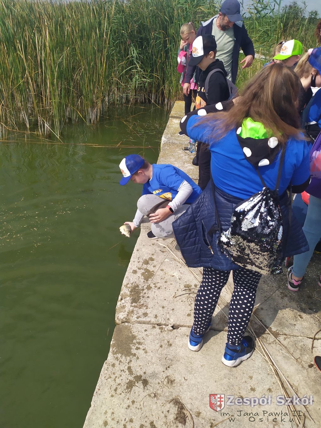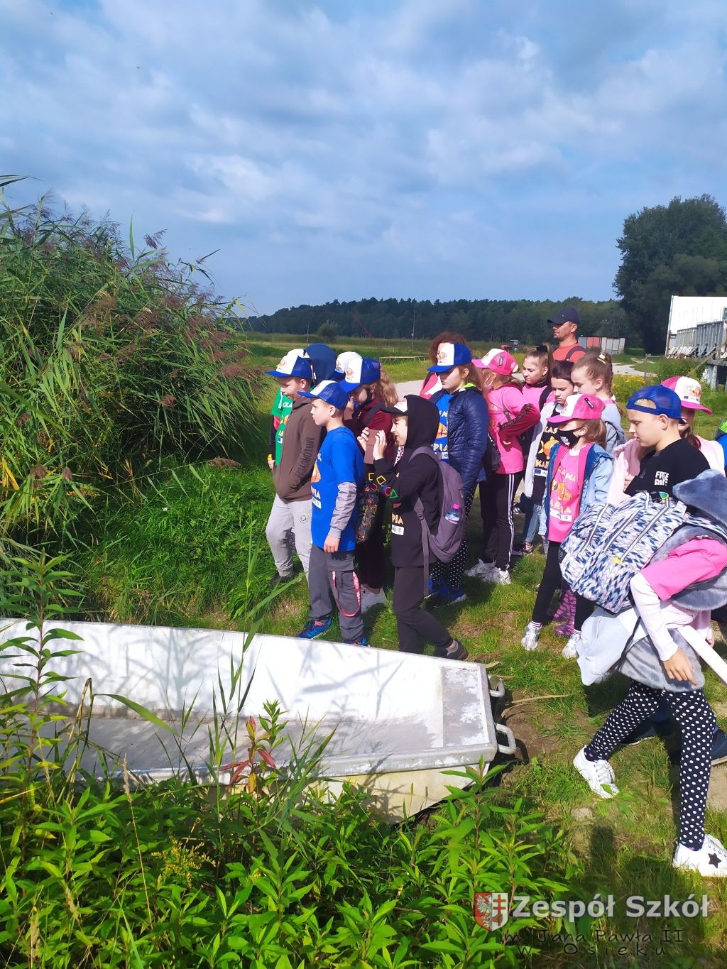 Pani Ania właścicielka gospodarstwa rybackiego w ciekawy sposób opowiadała o rodzinnej, wielopokoleniowej tradycji hodowli karpia. Przekazała również najważniejsze informacje dotyczące życia ryb. Dzieci miały możliwość zobaczyć, w jaki sposób odławia się karpie i jak wyglądają w różnych okresach ich życia. Zajęcia terenowe w kompleksie stawowym dały uczniom możliwość podziwiania otaczającego krajobrazu i były żywą lekcją przyrody.