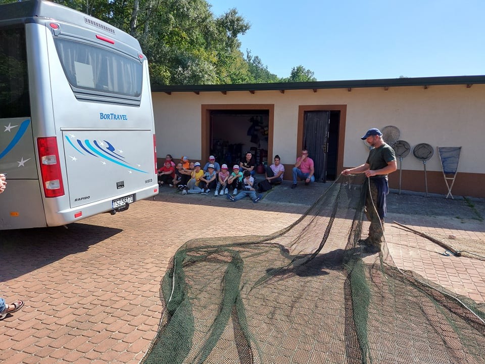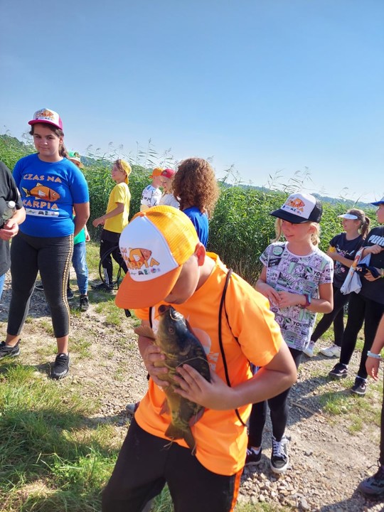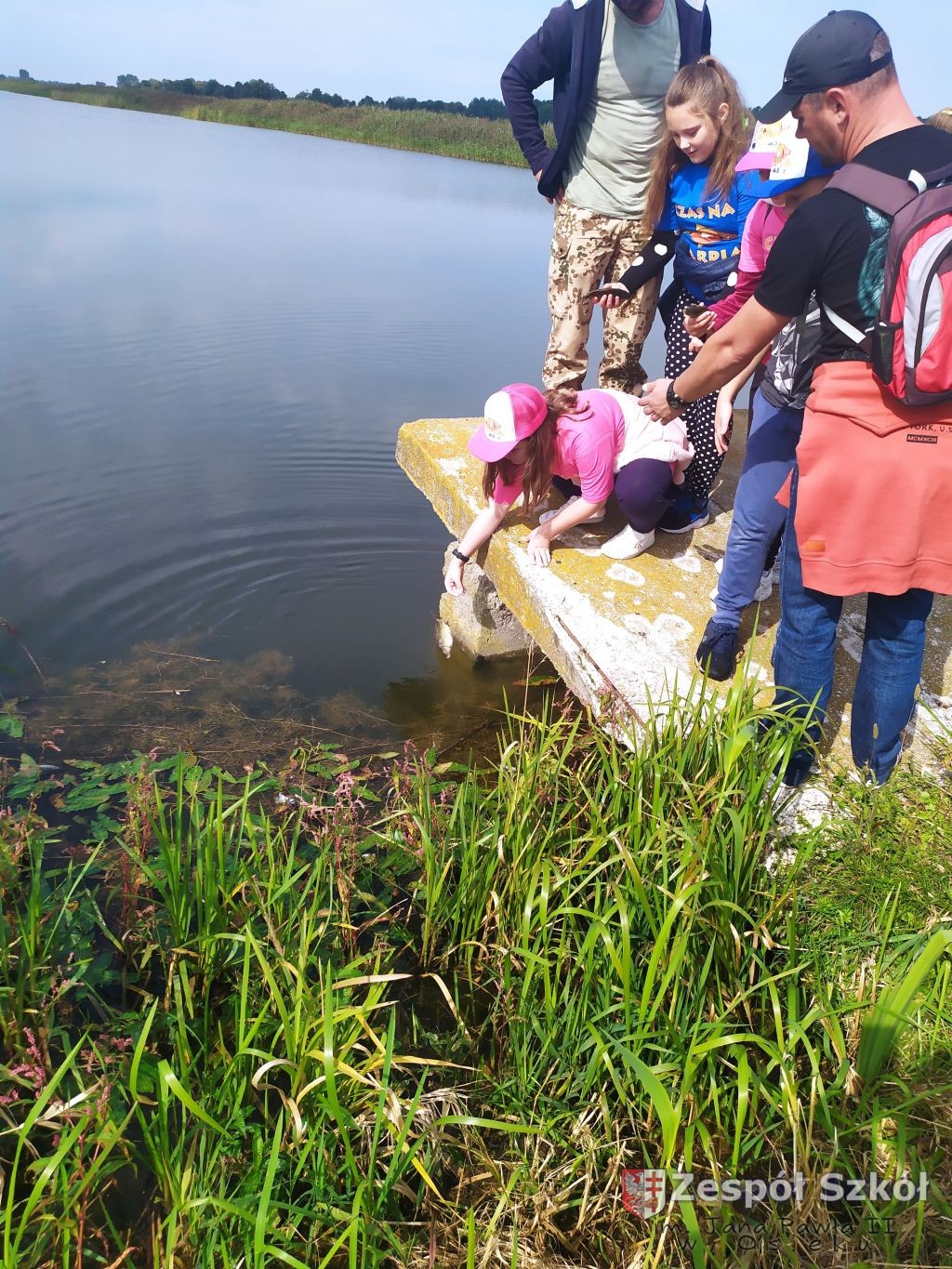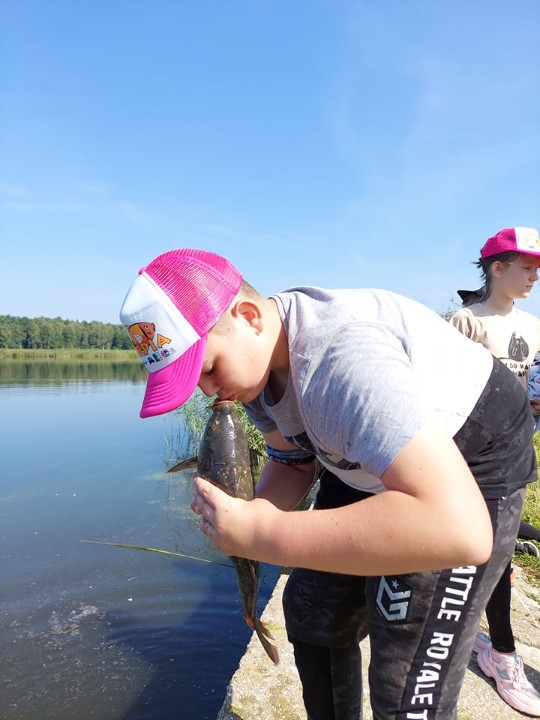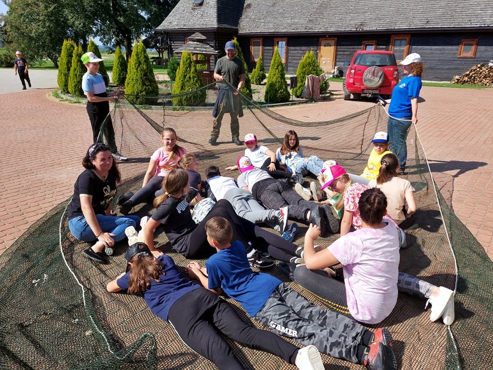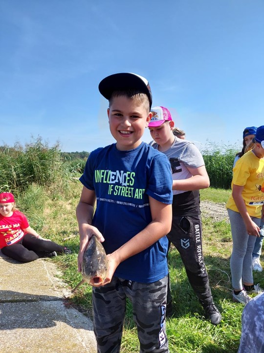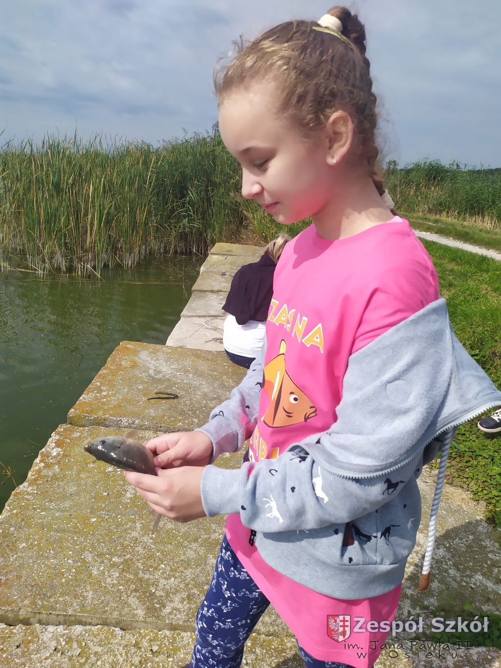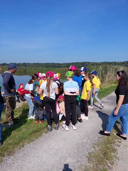 Pani Ania właścicielka gospodarstwa rybackiego w ciekawy sposób opowiadała o rodzinnej, wielopokoleniowej tradycji hodowli karpia. Przekazała również najważniejsze informacje dotyczące życia ryb. Dzieci miały możliwość zobaczyć, w jaki sposób odławia się karpie i jak wyglądają w różnych okresach ich życia. Zajęcia terenowe w kompleksie stawowym dały uczniom możliwość podziwiania otaczającego krajobrazu i były żywą lekcją przyrody.