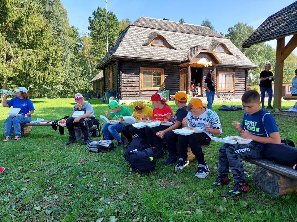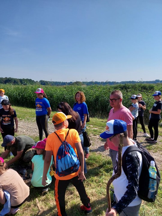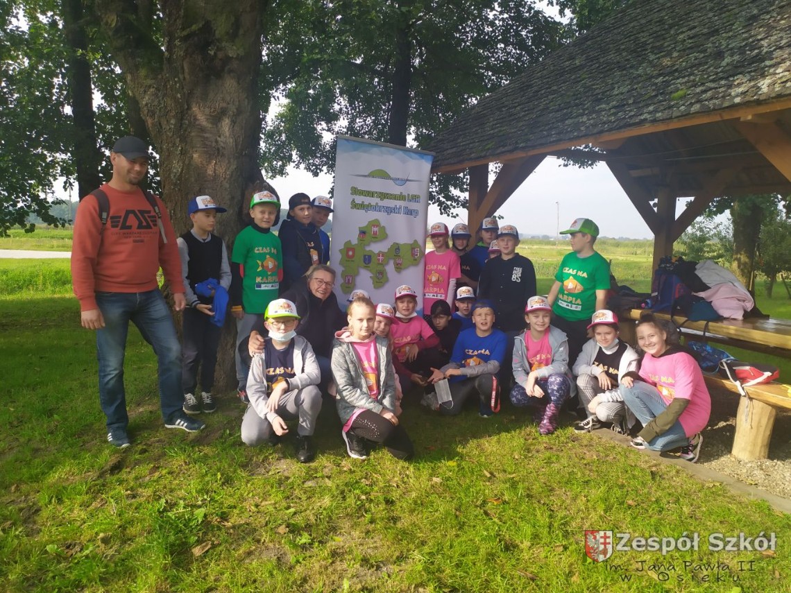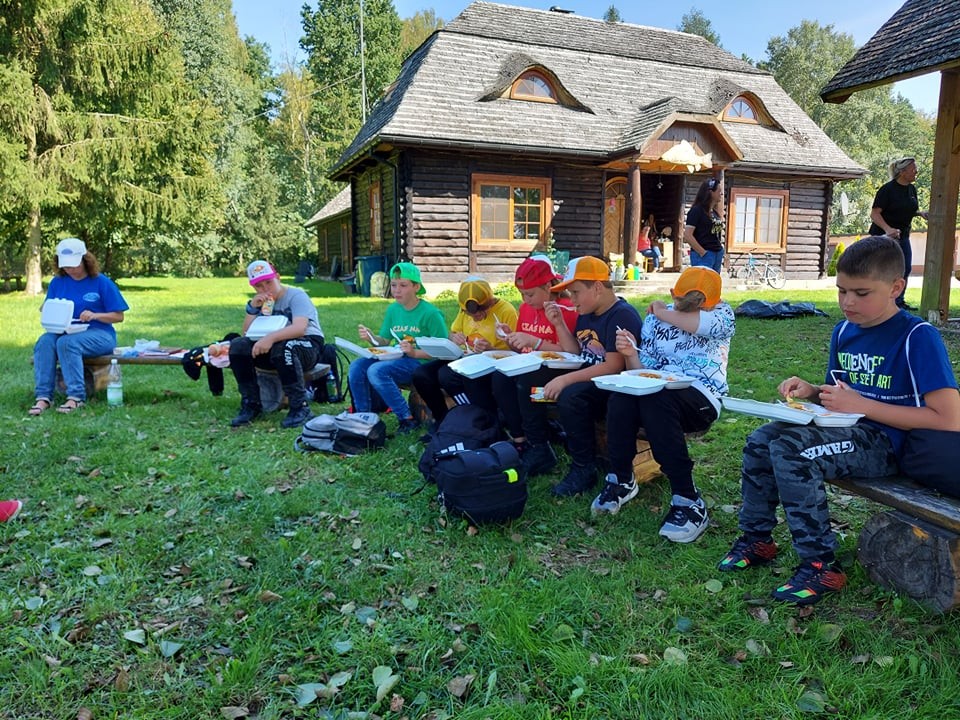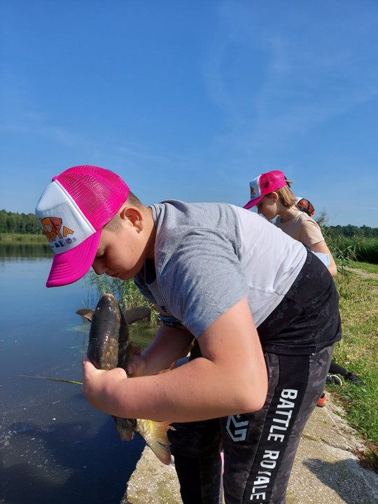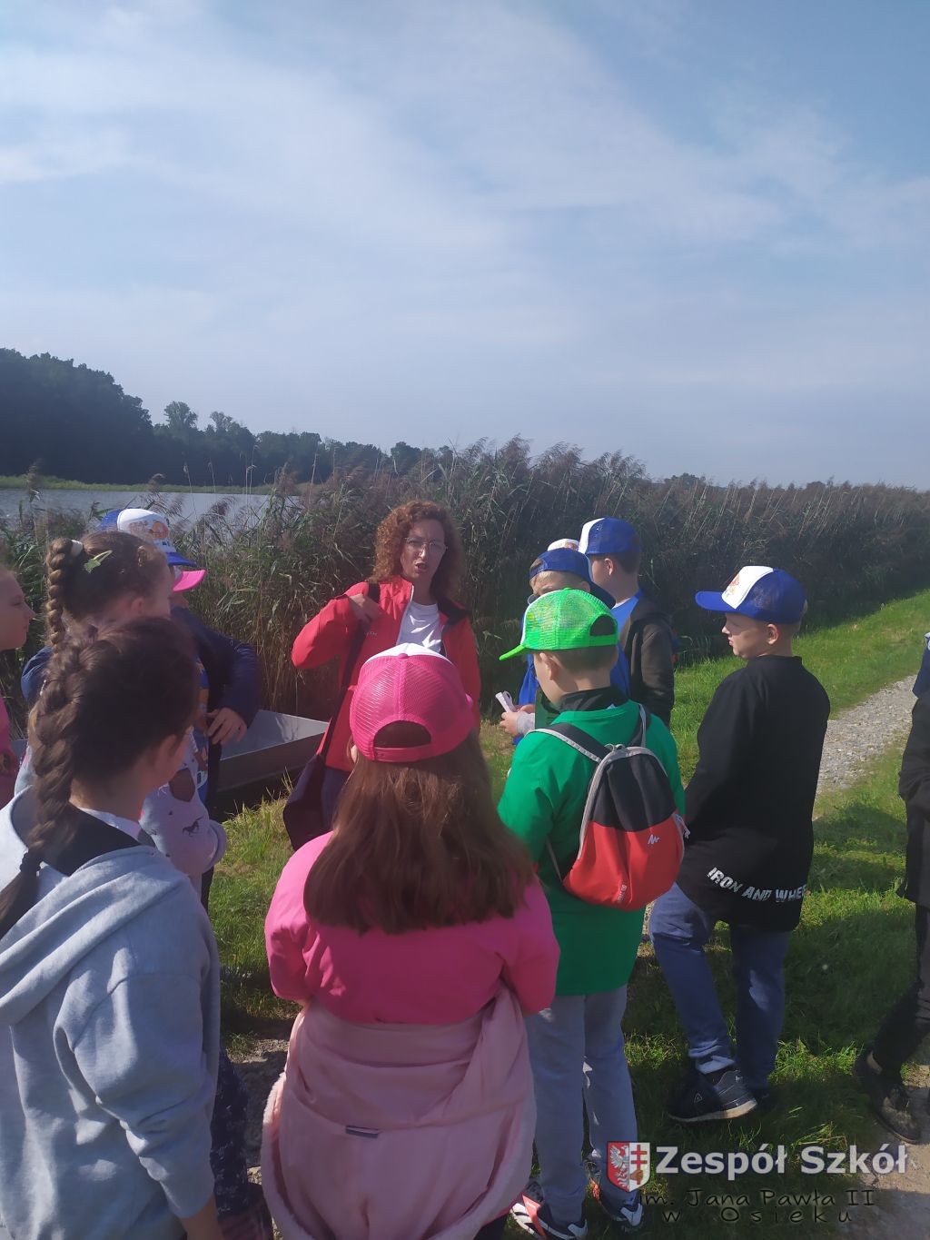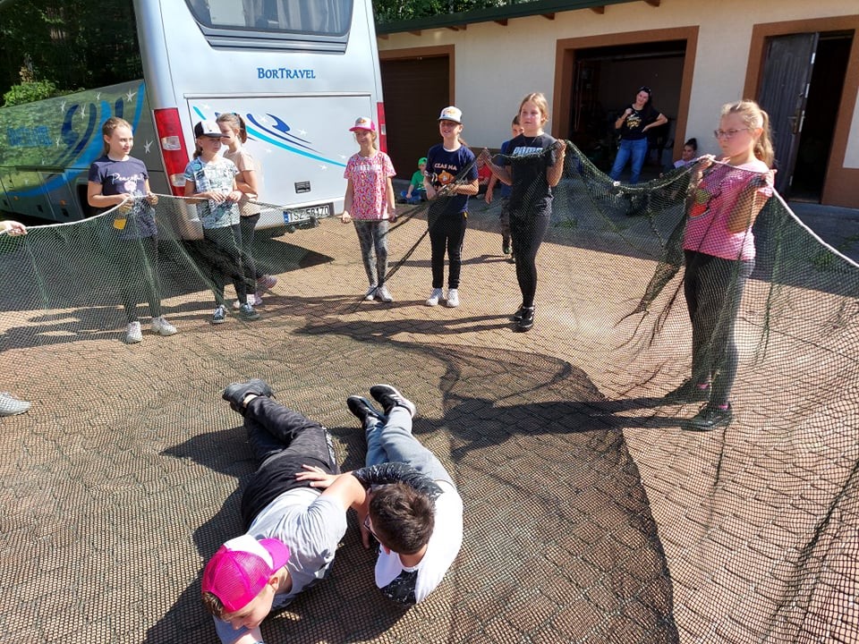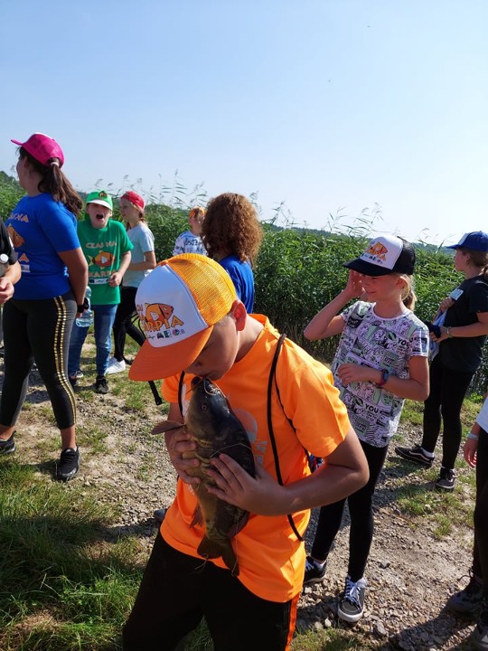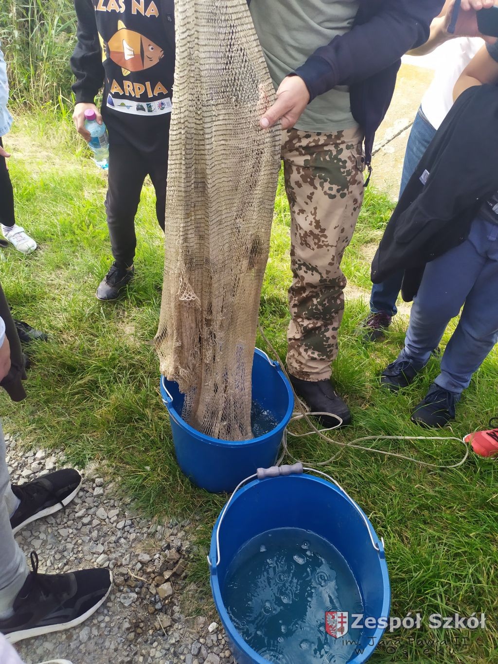 Pani Ania właścicielka gospodarstwa rybackiego w ciekawy sposób opowiadała o rodzinnej, wielopokoleniowej tradycji hodowli karpia. Przekazała również najważniejsze informacje dotyczące życia ryb. Dzieci miały możliwość zobaczyć, w jaki sposób odławia się karpie i jak wyglądają w różnych okresach ich życia. Zajęcia terenowe w kompleksie stawowym dały uczniom możliwość podziwiania otaczającego krajobrazu i były żywą lekcją przyrody.