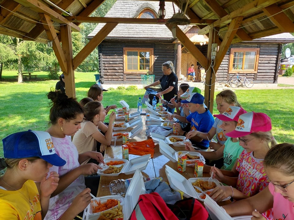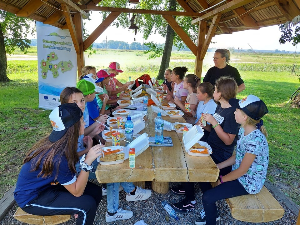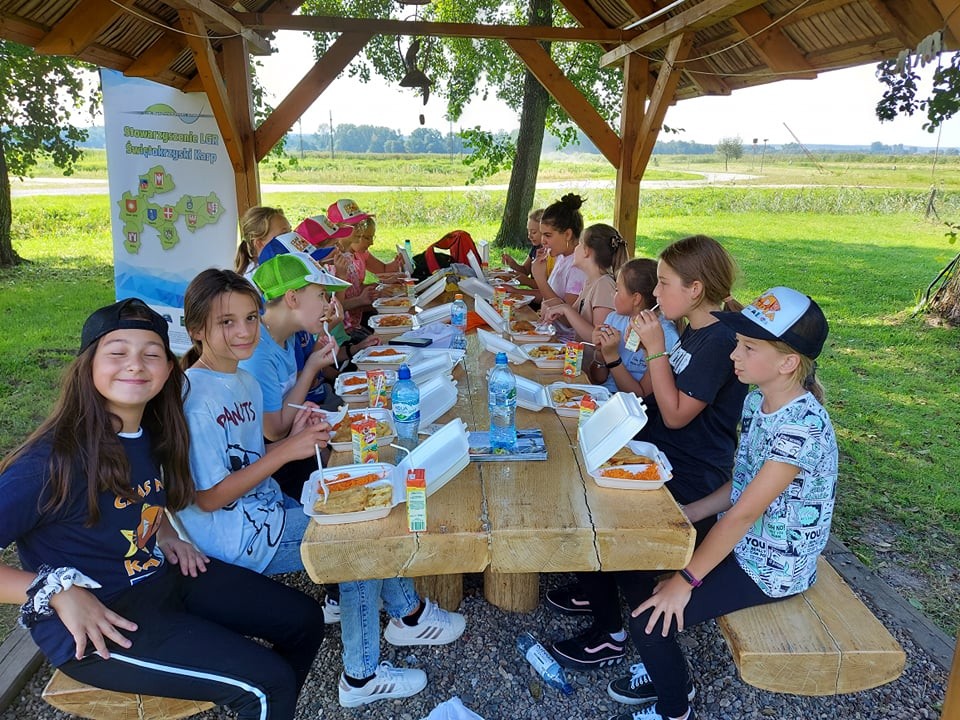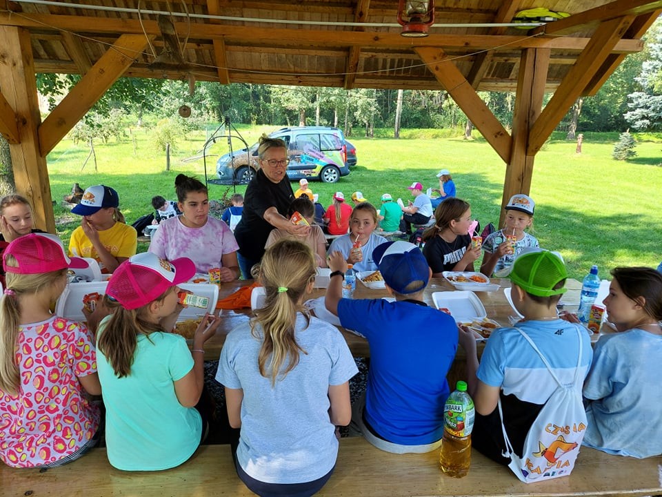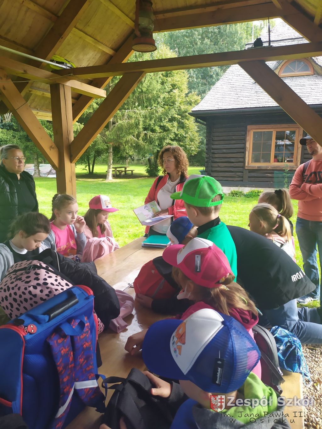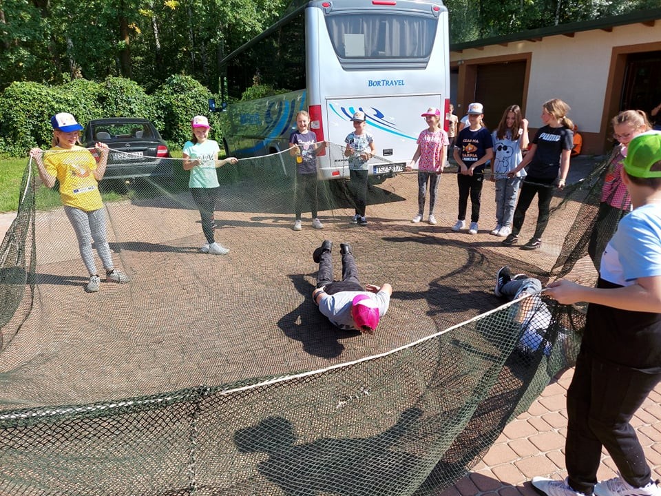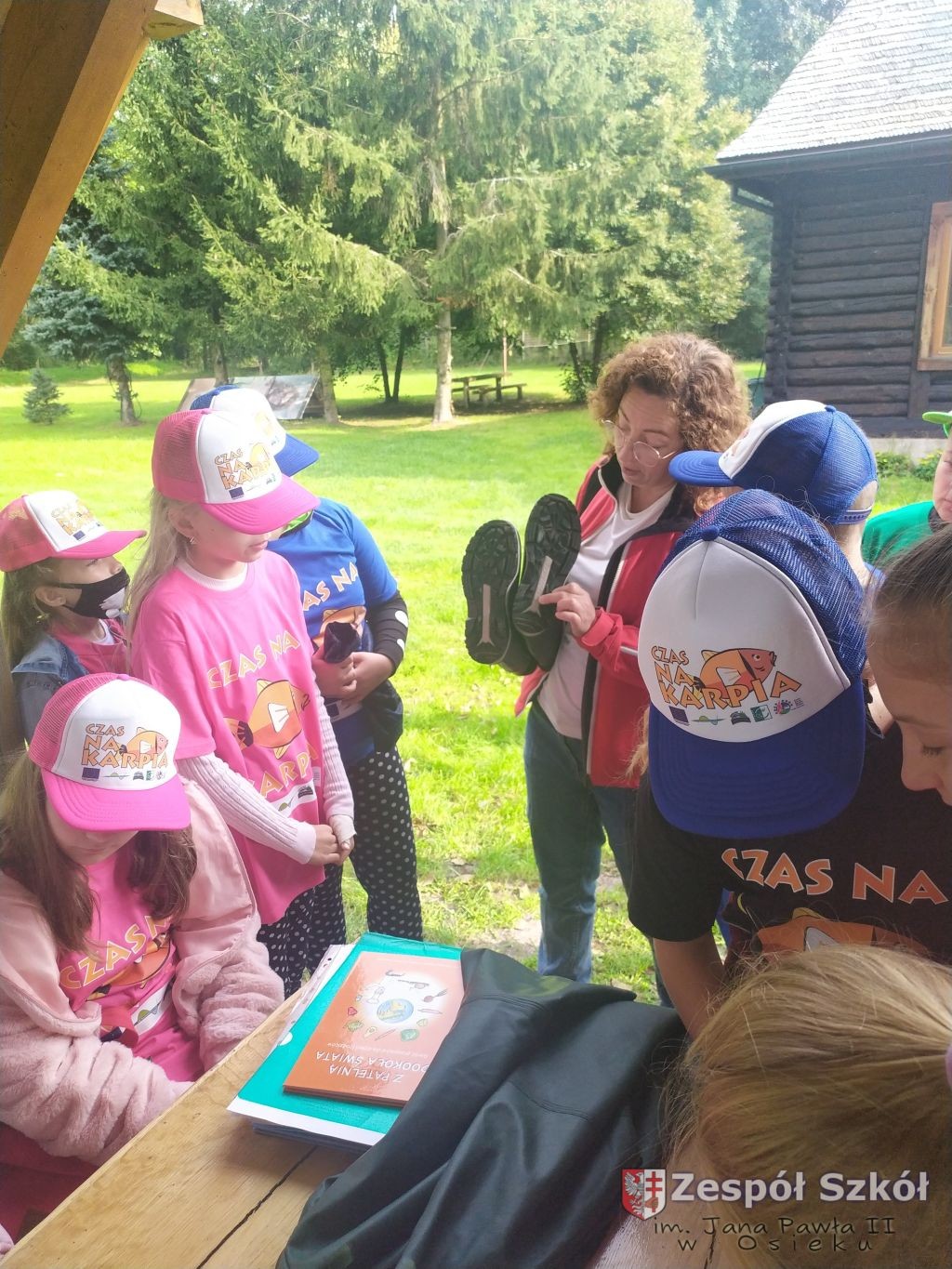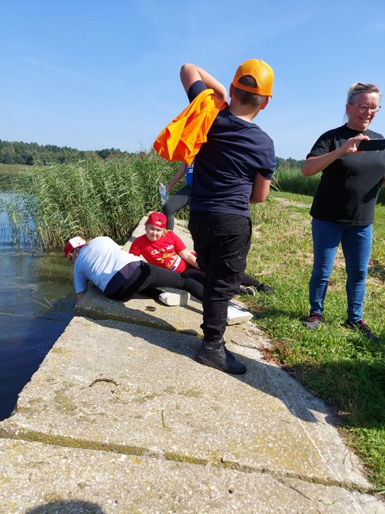 Pani Ania właścicielka gospodarstwa rybackiego w ciekawy sposób opowiadała o rodzinnej, wielopokoleniowej tradycji hodowli karpia. Przekazała również najważniejsze informacje dotyczące życia ryb. Dzieci miały możliwość zobaczyć, w jaki sposób odławia się karpie i jak wyglądają w różnych okresach ich życia. Zajęcia terenowe w kompleksie stawowym dały uczniom możliwość podziwiania otaczającego krajobrazu i były żywą lekcją przyrody.