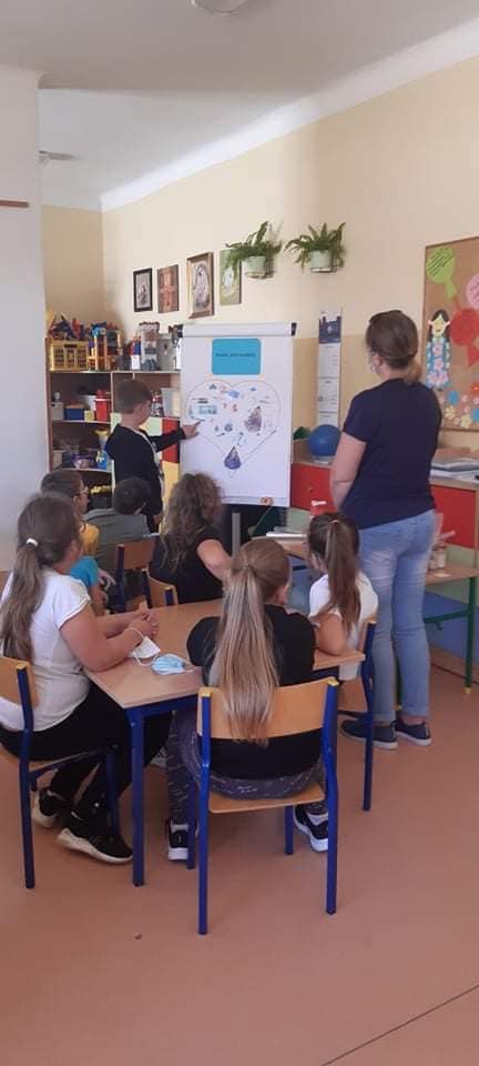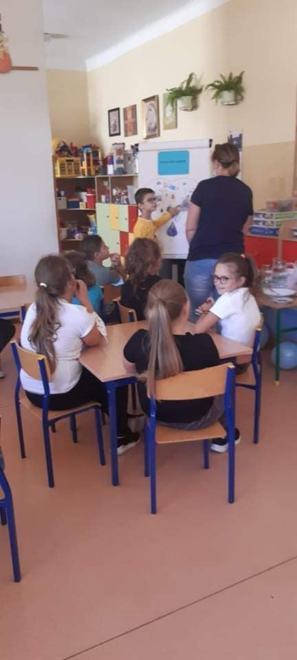 8 września w ramach projektu „Zielone Gminy” przygotowanego przez Stowarzyszenie „Osieczanie” uczniowie klasy III Zespół Szkół im. Jana Pawła II w Osieku pojechali do PSP im. Tadeusza Kościuszki w Połańcu na spotkanie edukacyjne. Głównym tematem spotkania była woda i to jak ważną rolę odgrywa w życiu naszym i naszej planety. Uczniowie wzięli udział w wielu interesujących grach i zabawach. Podziękowania dla Stowarzyszenie „Bliżej” z Połańca, które jako nasz partner pomogło zorganizować spotkanie, dziękujemy także Pani Grażynie Kamińskiej oraz nauczycielom z połanieckiej szkoły, którzy ugościli naszych uczniów.