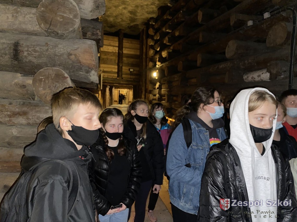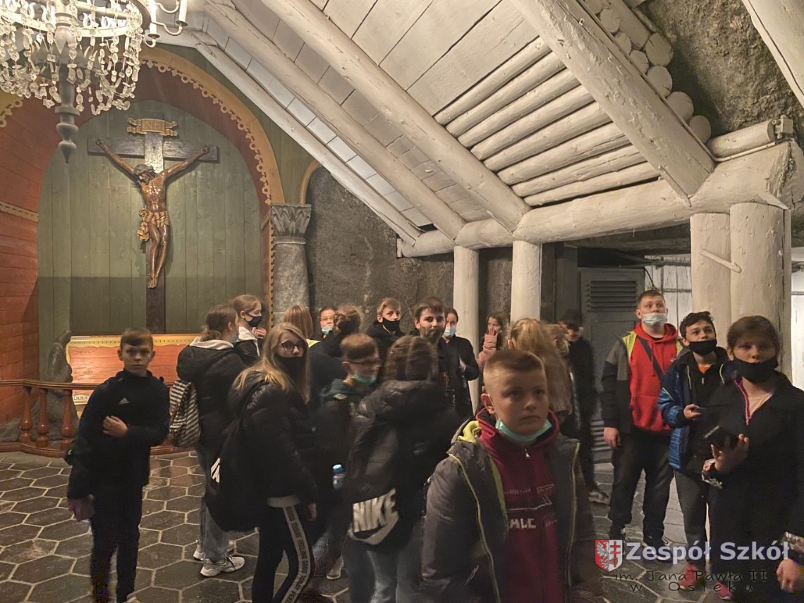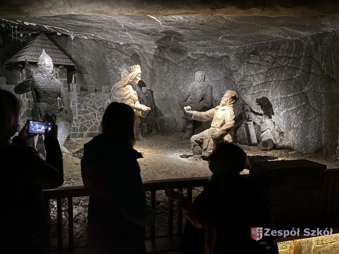 Pod opieką przewodnika uczniowie zwiedzali szlak turystyczny w Kopalni Soli „Wieliczka”. Podczas wędrówki trasą turystyczną poznali historię zabytkowej kopalni, której początki sięgają czasów średniowiecza, dowiedzieli się o tradycjach i obyczajach wielickich górników, podziwiali prawdziwe cuda wykonane z soli: m.in. wspaniałe kaplice zdobione solnymi rzeźbami i płaskorzeźbami, żyrandole, urokliwe podziemne jeziora, stare wyrobiska o oryginalnej drewnianej zabudowie, dawne narzędzia górnicze oraz zachowane ślady prac w dawnej kopalni. Najbardziej zachwycił nas wystrój wydrążonej w XIX wieku kaplicy św. Kingi.