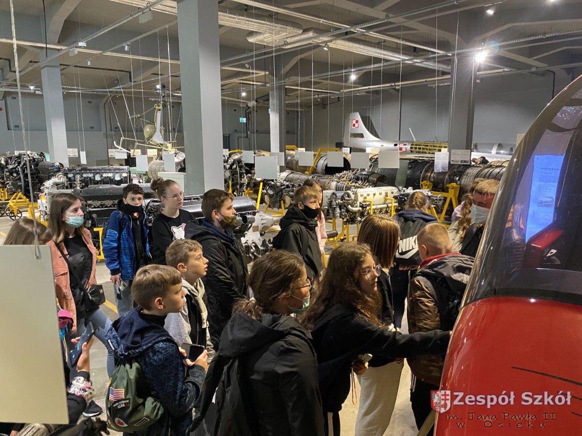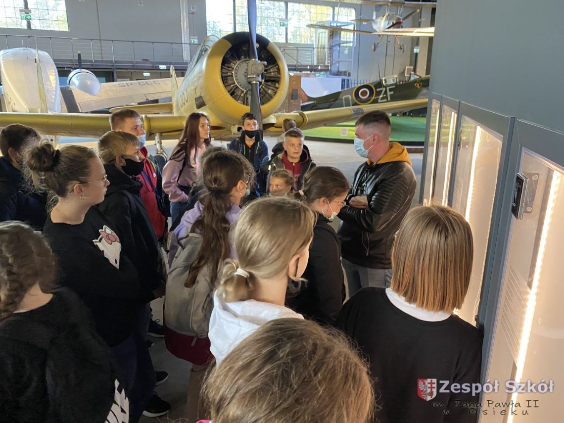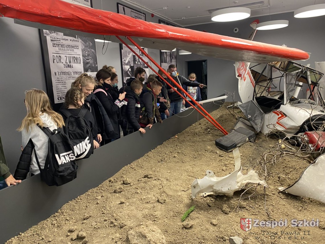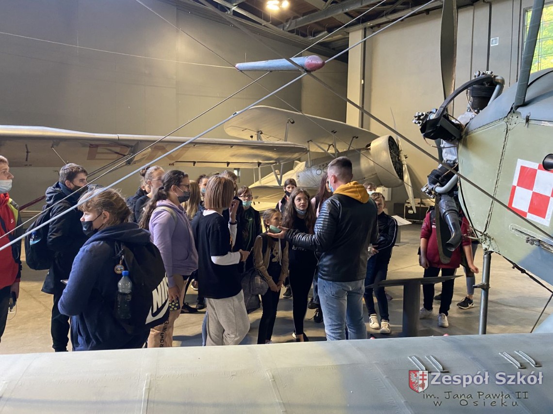 Kolejnym celem wycieczki było zwiedzanie Muzeum Lotnictwa w Krakowie. Jest to naprawdę fascynujące miejsce dla każdego, kto choć trochę pasjonuje się lotnictwem. Nie sposób wymienić listę eksponatów znajdujących się w muzeum jak: samoloty, szybowce, motoszybowce, śmigłowce, a także rakiety systemów przeciwlotniczych. Jednakże podczas naszej wędrówki po muzeum mogliśmy zobaczyć 163 samoloty, 16 śmigłowców, 45 szybowców oraz wiele innych ciekawych pamiątek związanych z historią polskiego lotnictwa. Dużym zainteresowaniem cieszył się samolot An-26, do którego można było wejść i usiąść za sterami.