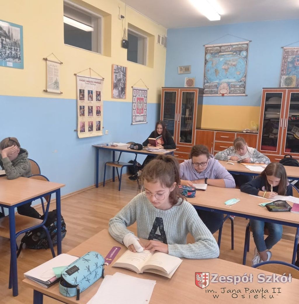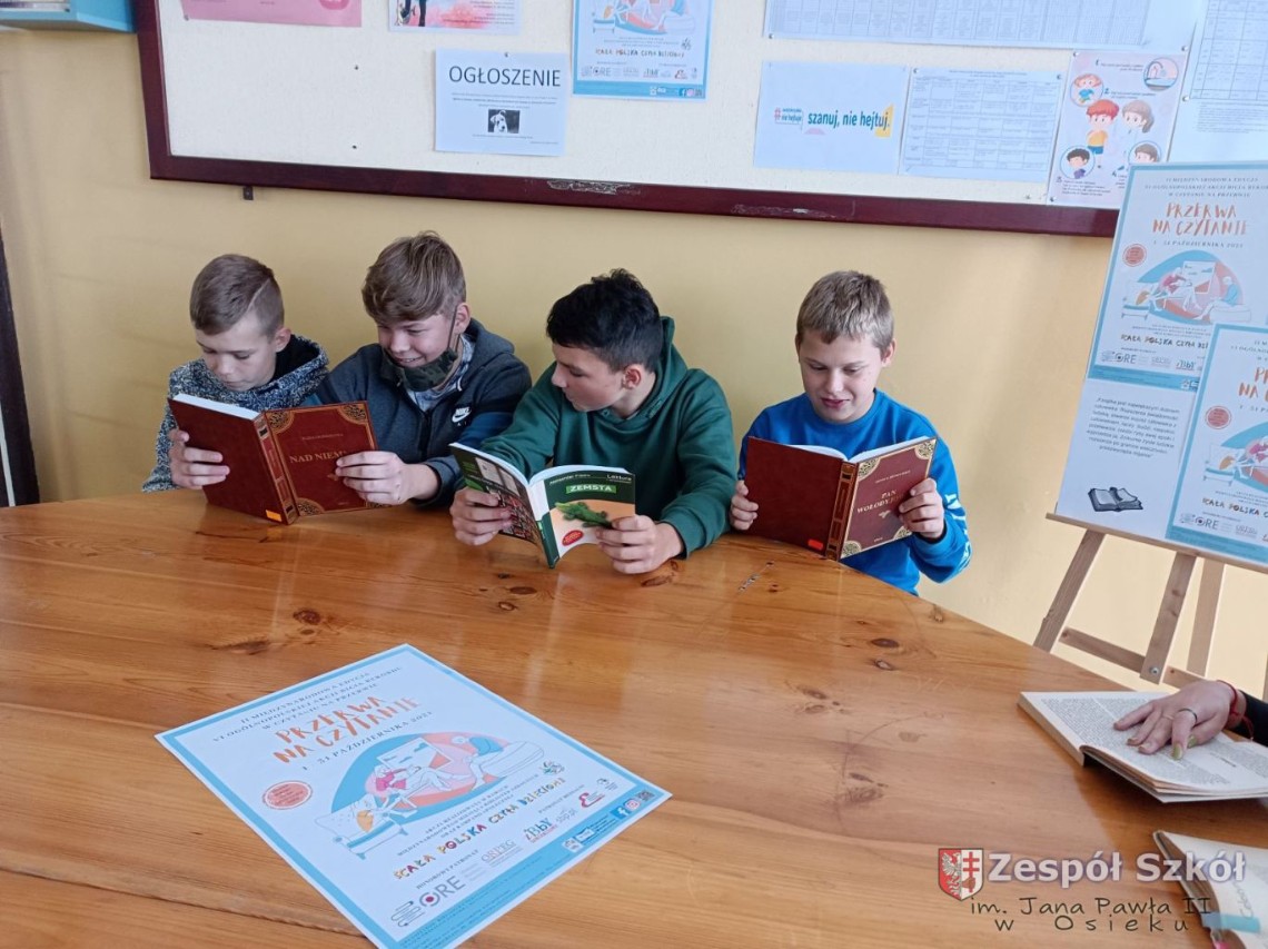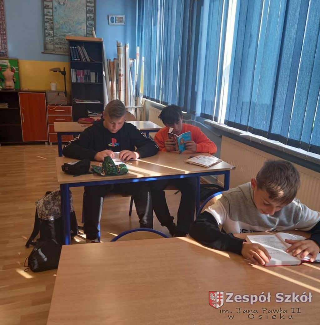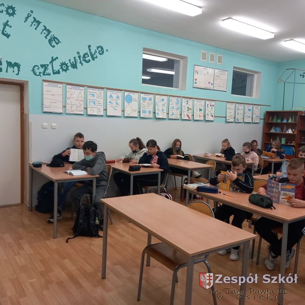 W dniu 12 października 2021 roku uczniowie, nauczyciele i pracownicy Zespołu Szkół im. Jana Pawła II w Osieku wzięli udział w II Międzynarodowej Edycji VI Ogólnopolskiej Akcji "Przerwa na czytanie – bicie rekordu w czytaniu na przerwie". Akcja realizowana jest w ramach Międzynarodowego Miesiąca Bibliotek Szkolnych oraz kampanii społecznej "Cała Polska czyta dzieciom".