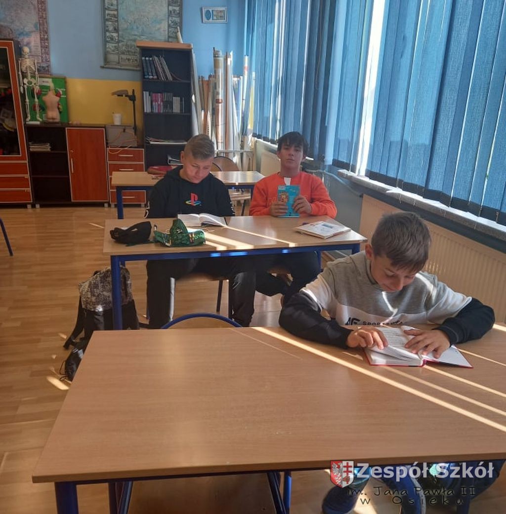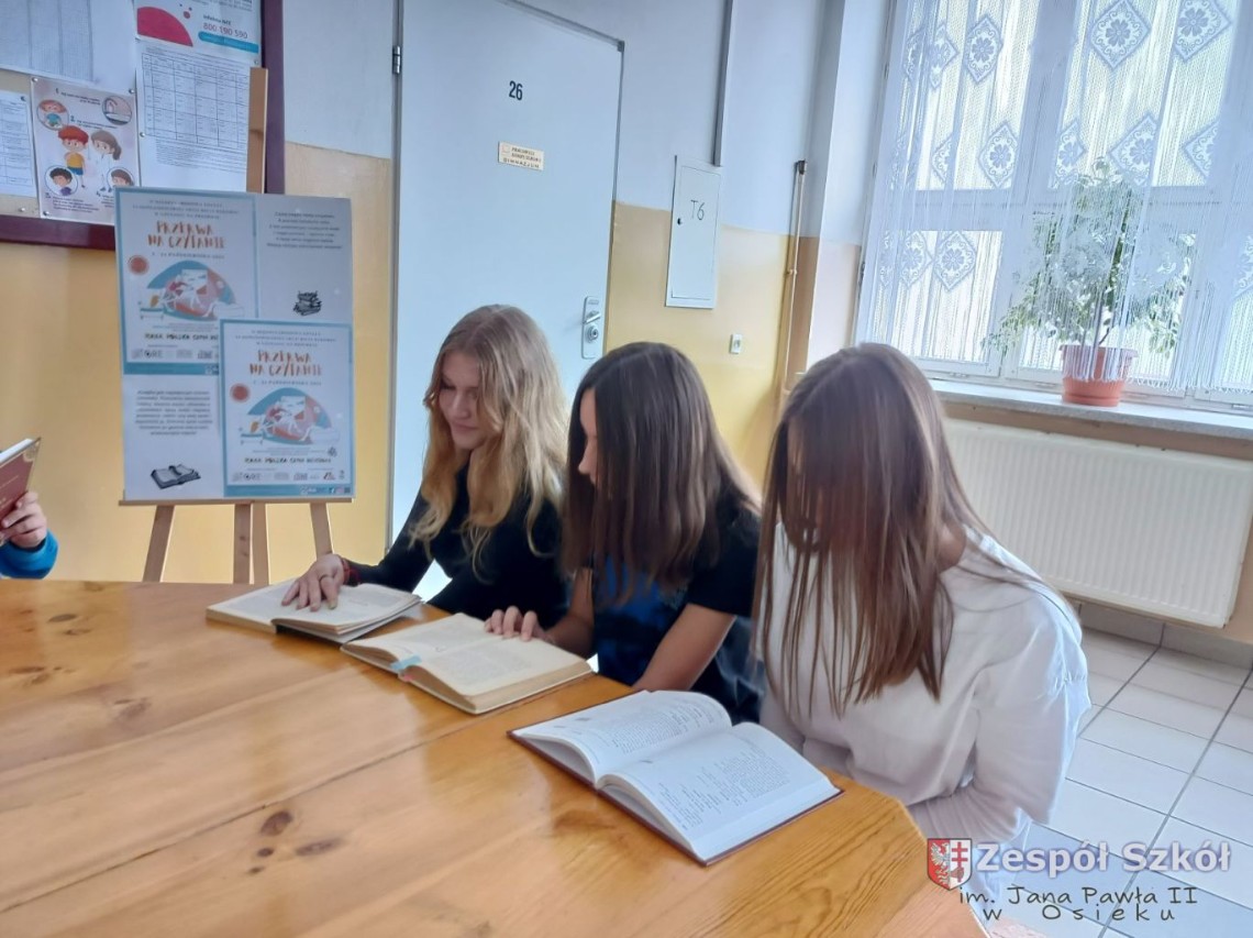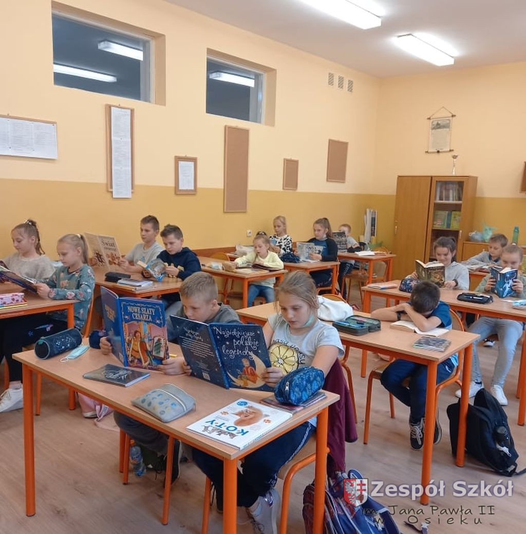 W dniu 12 października 2021 roku uczniowie, nauczyciele i pracownicy Zespołu Szkół im. Jana Pawła II w Osieku wzięli udział w II Międzynarodowej Edycji VI Ogólnopolskiej Akcji "Przerwa na czytanie – bicie rekordu w czytaniu na przerwie". Akcja realizowana jest w ramach Międzynarodowego Miesiąca Bibliotek Szkolnych oraz kampanii społecznej "Cała Polska czyta dzieciom".