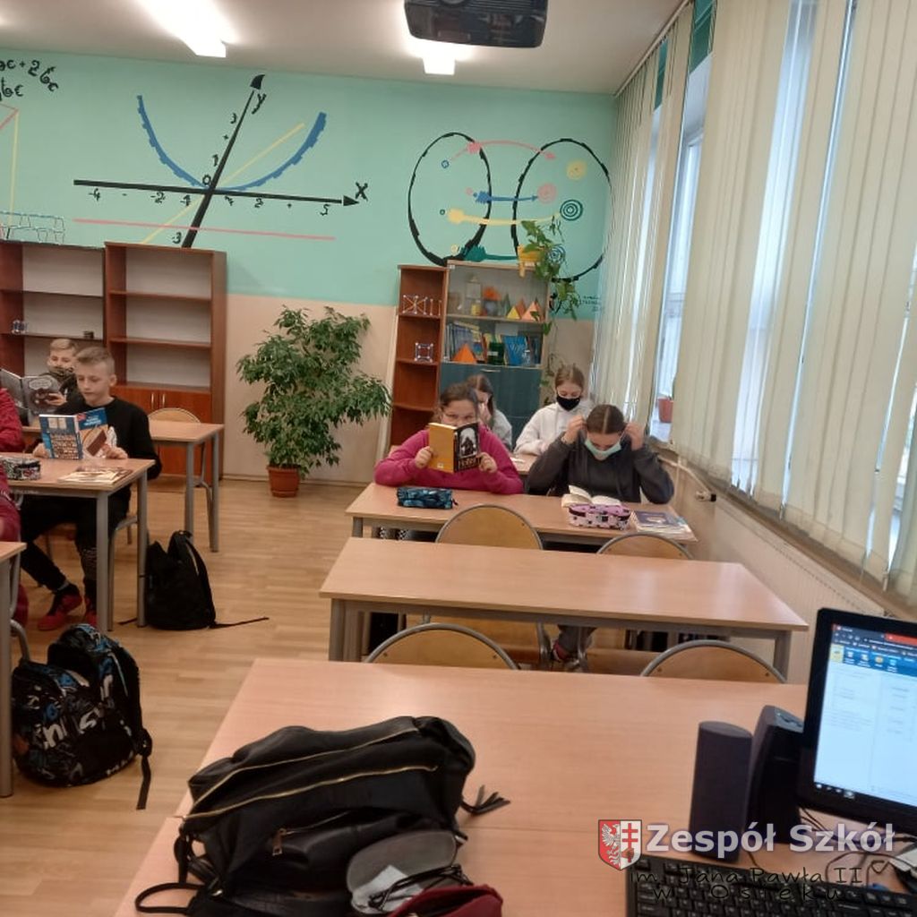 Uczniowie naszej szkoły z wielkim zaangażowaniem czytali w czasie przerwy książki przyniesione z domu lub wypożyczone z biblioteki. Akcja była okazją do promocji czytelnictwa wśród dzieci i młodzieży, pokazania, że czytanie jest ciekawe oraz zachęcenia uczniów do sięgania po książkę w każdej sytuacji i w każdym miejscu.