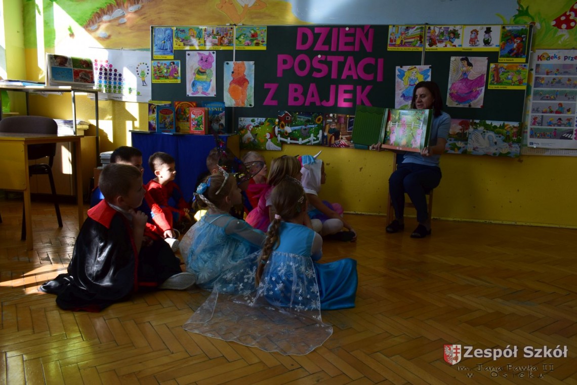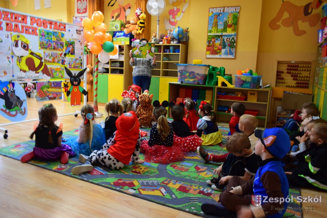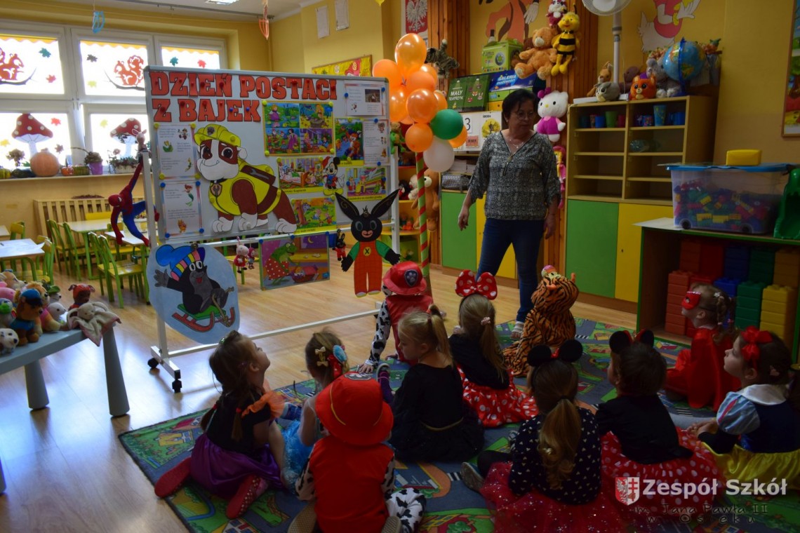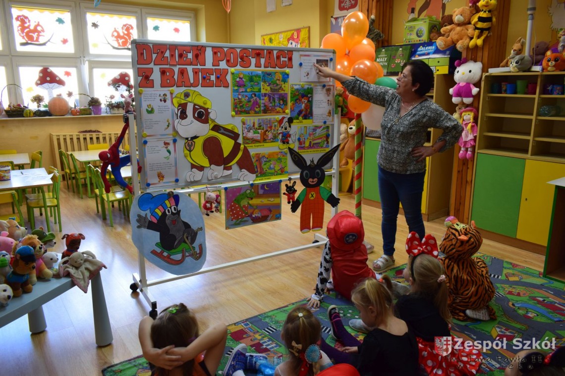 Przedszkolaki obejrzały prezentację multimedialną, rozwiązywały zagadki dotyczące bajkowych postaci, wysłuchały fragmentów znanych bajek a następnie rozpoznawały ich tytuły. Dzieci na chwilę mogły zamienić się między innymi w Kopciuszka, Czerwonego Kapturka i Spidermana. Na zakończenie dnia wykonały prace plastyczne najpiękniejszych postaci z bajek.