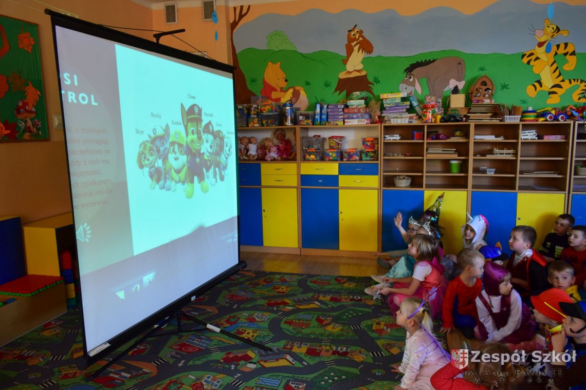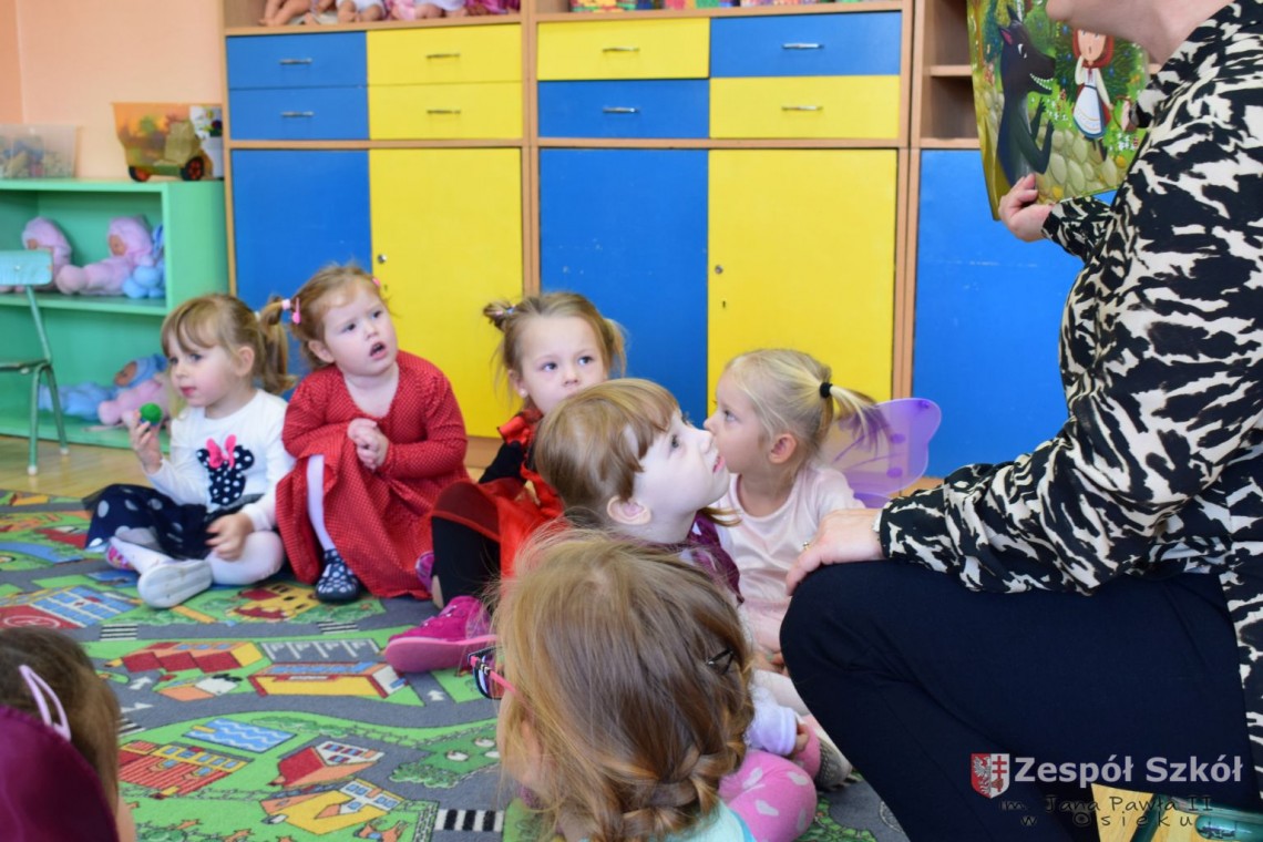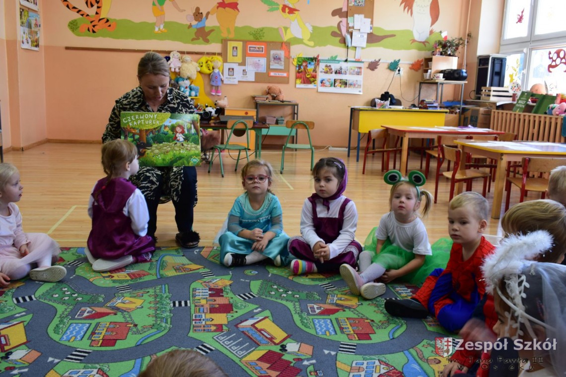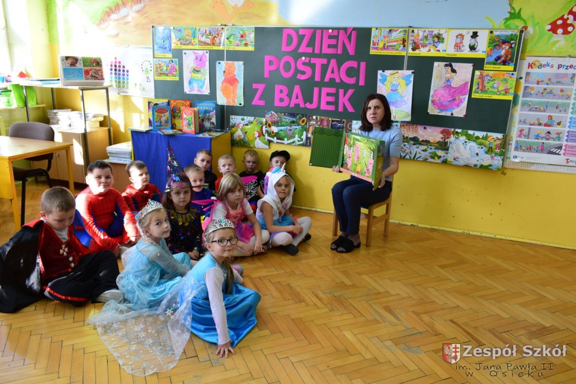 Przedszkolaki obejrzały prezentację multimedialną, rozwiązywały zagadki dotyczące bajkowych postaci, wysłuchały fragmentów znanych bajek a następnie rozpoznawały ich tytuły. Dzieci na chwilę mogły zamienić się między innymi w Kopciuszka, Czerwonego Kapturka i Spidermana. Na zakończenie dnia wykonały prace plastyczne najpiękniejszych postaci z bajek.