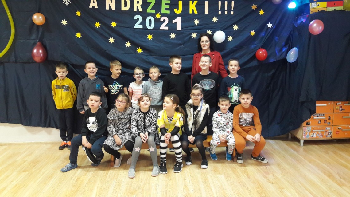 W naszej szkole dn. 26. 11.2021 r. odbyła się długo wyczekiwana zabawa andrzejkowa. Zabawę uświetniły przeboje disco polo i muzyki współczesnej. Uczniowie klas I-III, kultywując tradycje związane z wigilią św. Andrzeja, losowali wróżby. Piękne wróżki z i wróżbici przepowiadali przyszłość. Symbole wiedzy magicznej i elementy dekoracji dodawały tajemniczości całej scenerii. Każdy uczestnik andrzejkowych szaleństw z niecierpliwością przekłuwał papierowe serce, aby odczytać imię swojej sympatii, losował magiczne bileciki z nazwami zawodów przyszłości, szukał swojej szczęśliwej liczby, poznawał znaczenie swojego ulubionego koloru.