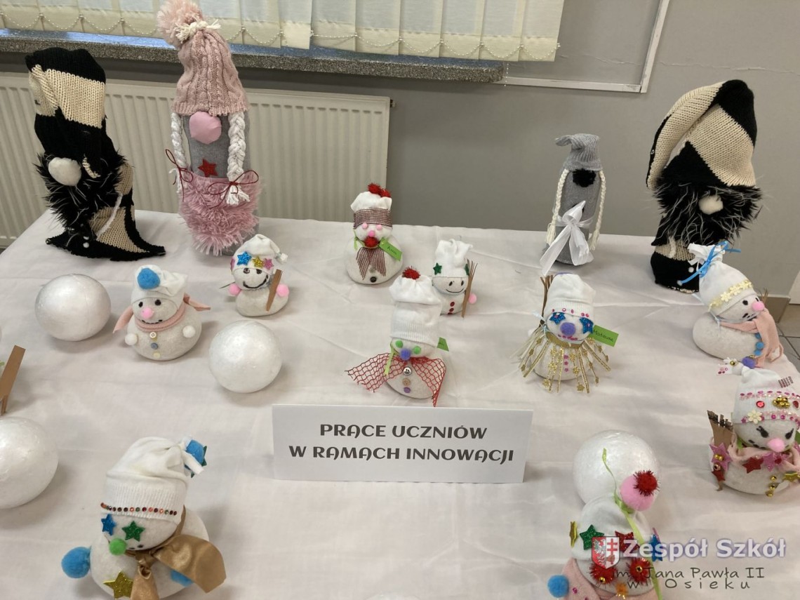 Magię zbliżających się Świąt Bożego Narodzenia można było poczuć na kolejnych zajęciach prowadzonych w ramach innowacji pedagogicznej. Uczniowie pod kierunkiem nauczycieli wykonywali ozdoby świąteczne w postaci skarpetkowych bałwanków i skrzatów.