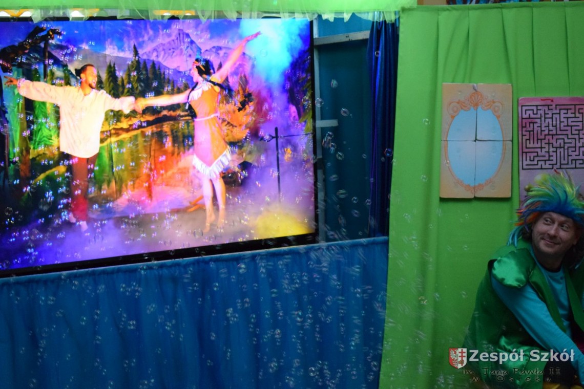 i jednej nocy, aktorzy zaprezentowali swoje umiejętności akrobatyczne, fireshow oraz pokaz pirotechniczny. Za złożenie przysięgi, że trzeba „ … do przedszkola chodzić, rodziców słuchać , to najważniejsza dla nas nauka!”, każdy przedszkolak otrzymał od Pinokia elementarz. Natomiast Królowa Śniegu udowodniła, że śnieg może padać nawet latem…, a Gerda szukając Kaja musiała przejść przez labirynt i rozwiązać zagadkę matematyczną, którą przygotowała dla niej Królowa Śniegu. Za pomoc dziewczynce dzieci otrzymały prezent – niespodziankę. Wreszcie Pokahontas, która w towarzystwie baniek mydlanych zaśpiewała piosenkę.Na koniec seansu dzieci mogły jeszcze raz spotkać się ze Świętym Mikołajem.