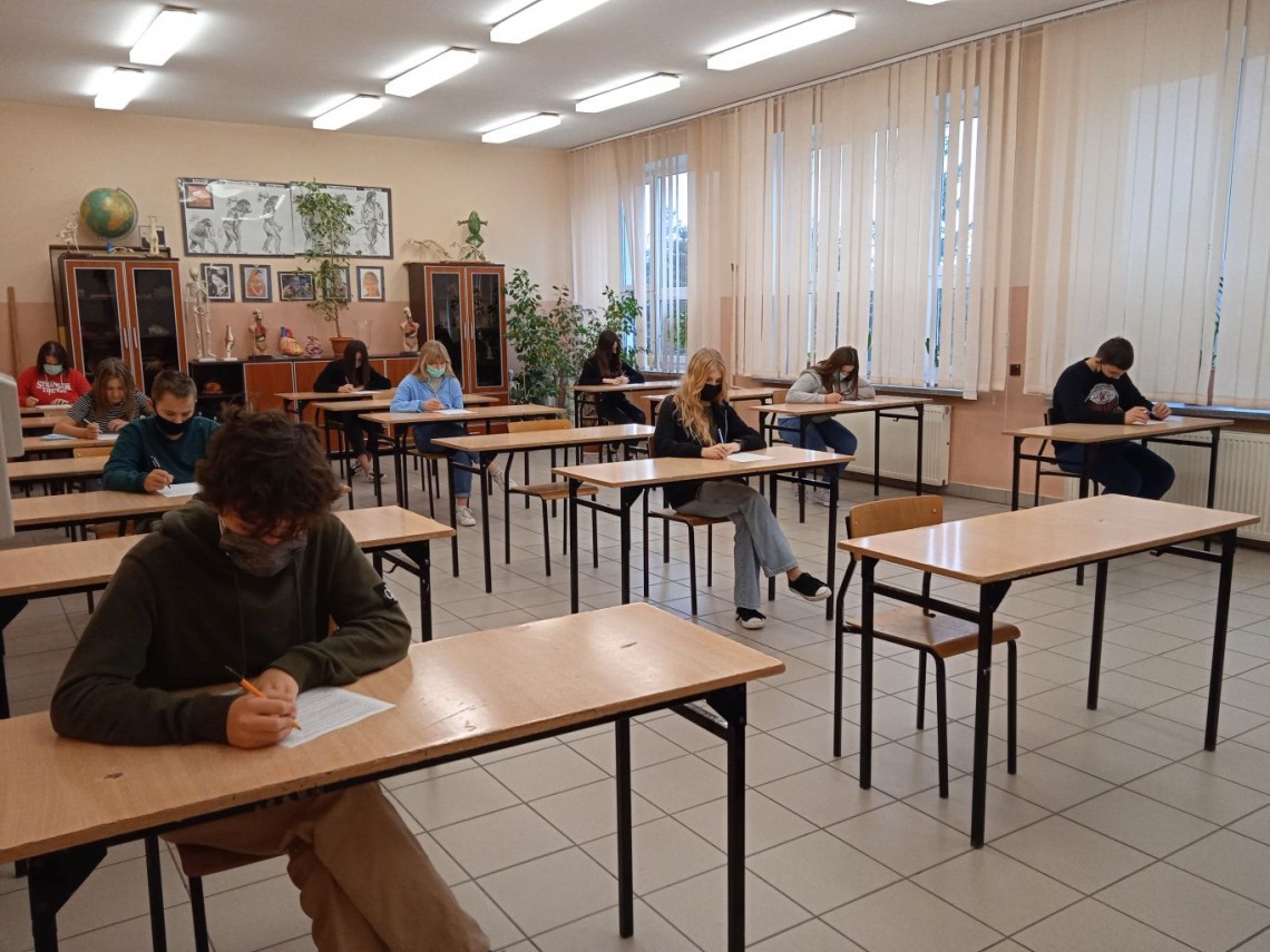 W dniu 16 grudnia 2021 r. - chętni uczniowie z klas VIIIa, VIIIb, VIIIc naszej szkoły wzięli udział w I etapie Konkursu wiedzy o HIV/AIDS, którego organizatorem była