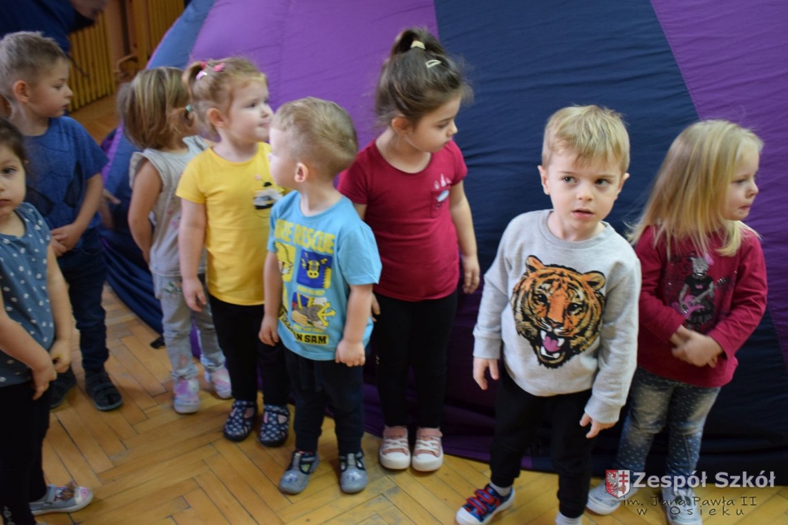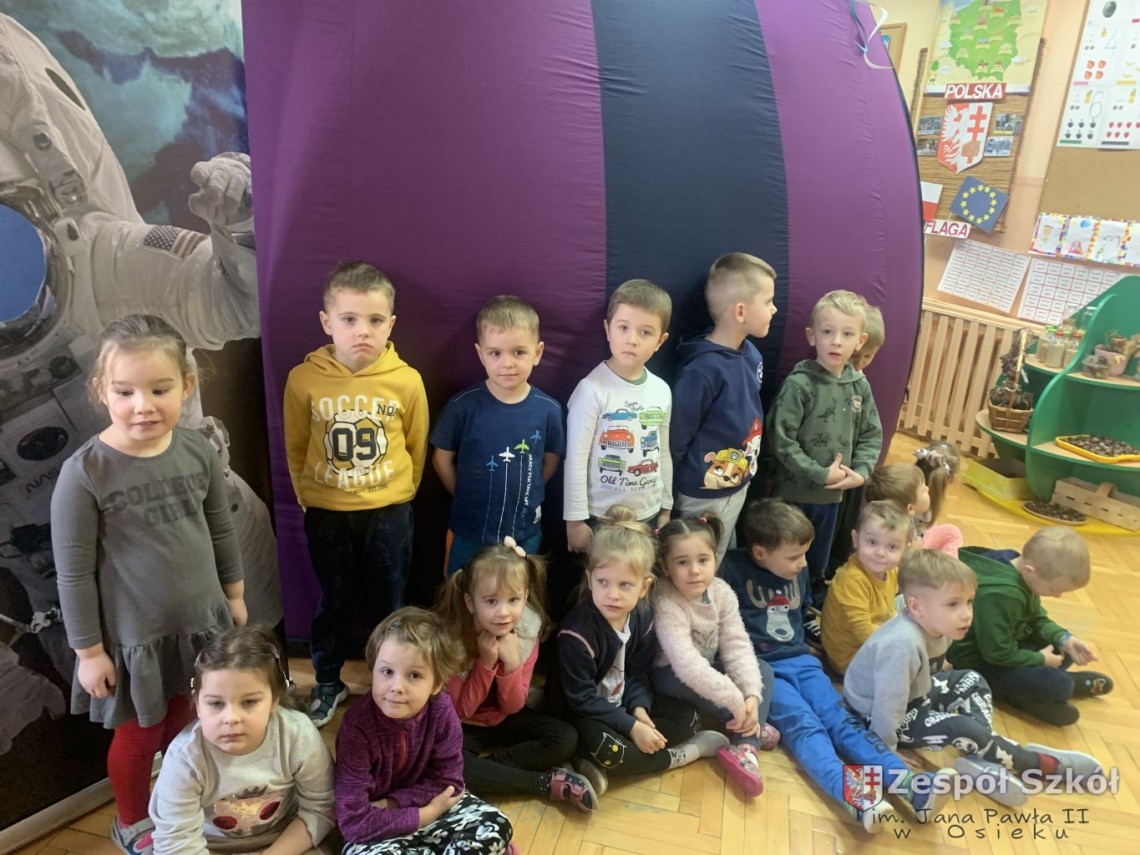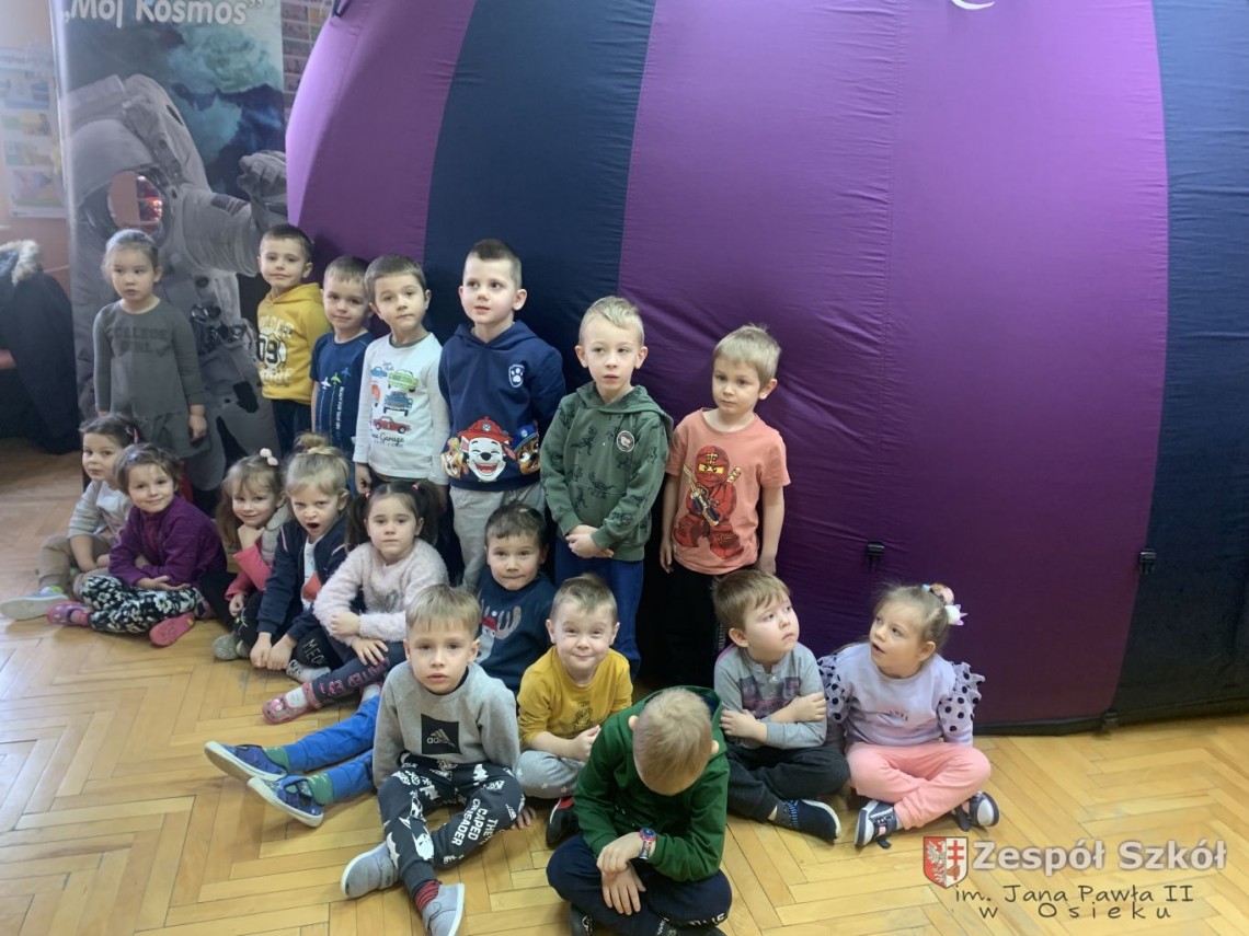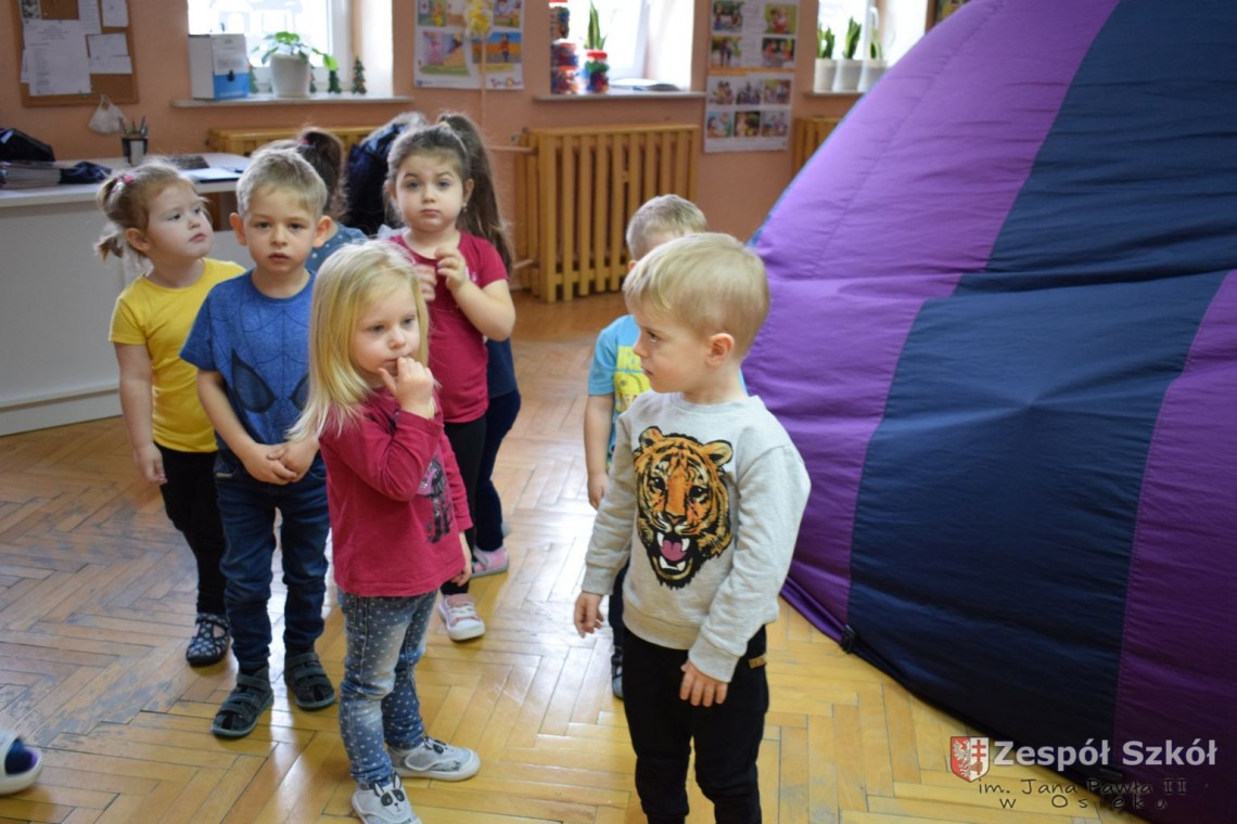 Pokaz w mobilnym planetarium był dla przedszkolaków niepowtarzalną szansą na podziwianie kosmosu. Astronomiczny pokaz miał za zadanie zaszczepić wśród dzieci chęć poszerzania wiedzy o otaczającym ich Wszechświecie. Planetarium to unikatowe narzędzie dydaktyczne, które w przystępny oraz interesujący sposób zapoznało dzieci ze zjawiskami astronomicznymi i geograficznymi zachodzącymi na niebie. Przedszkolaki przeżyły niezwykłą podróż do świata astronomii.