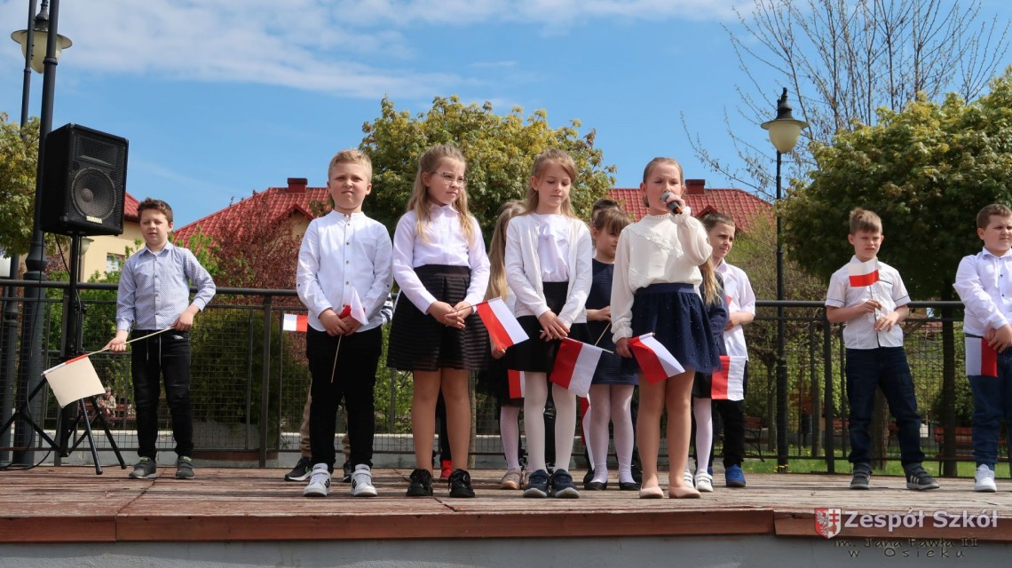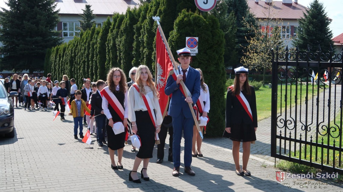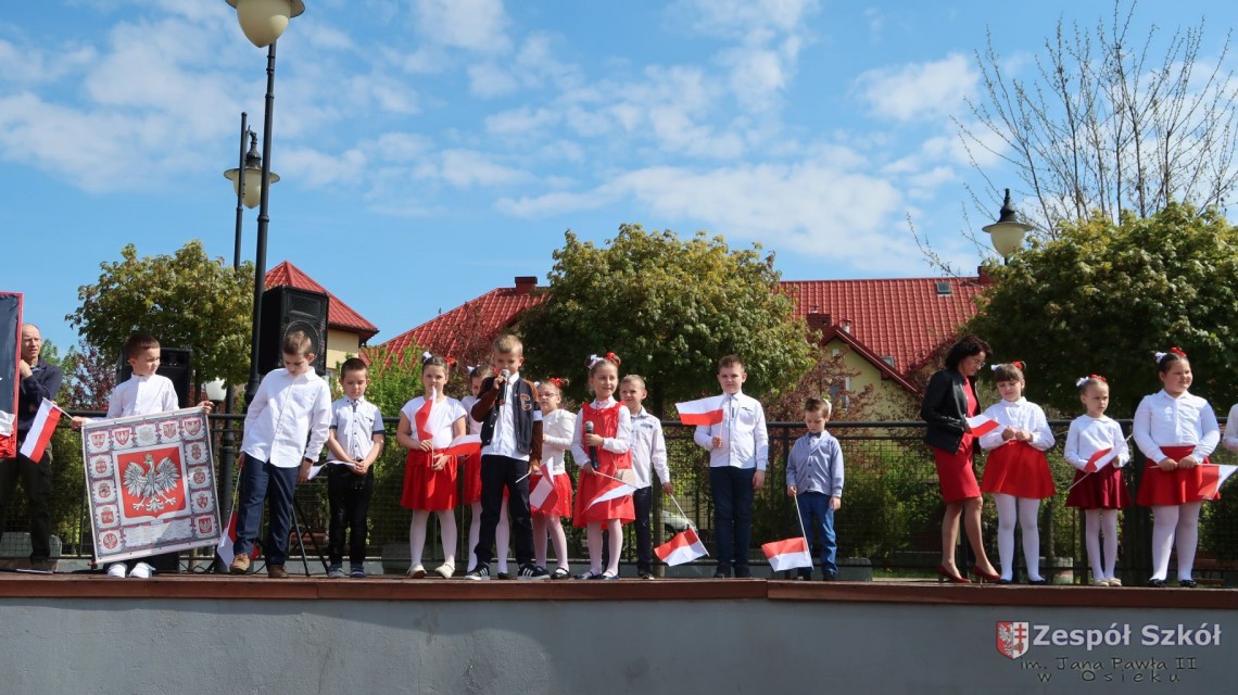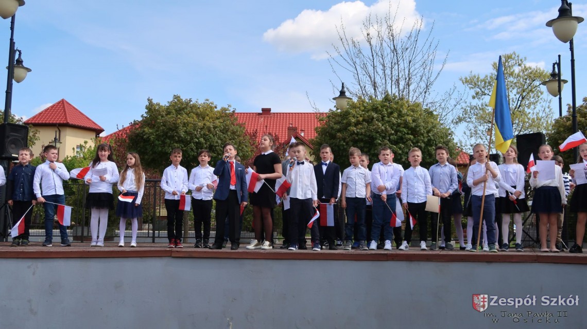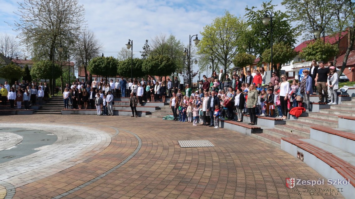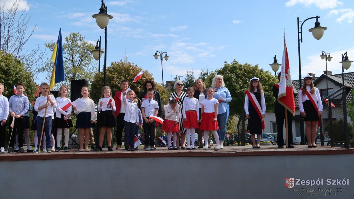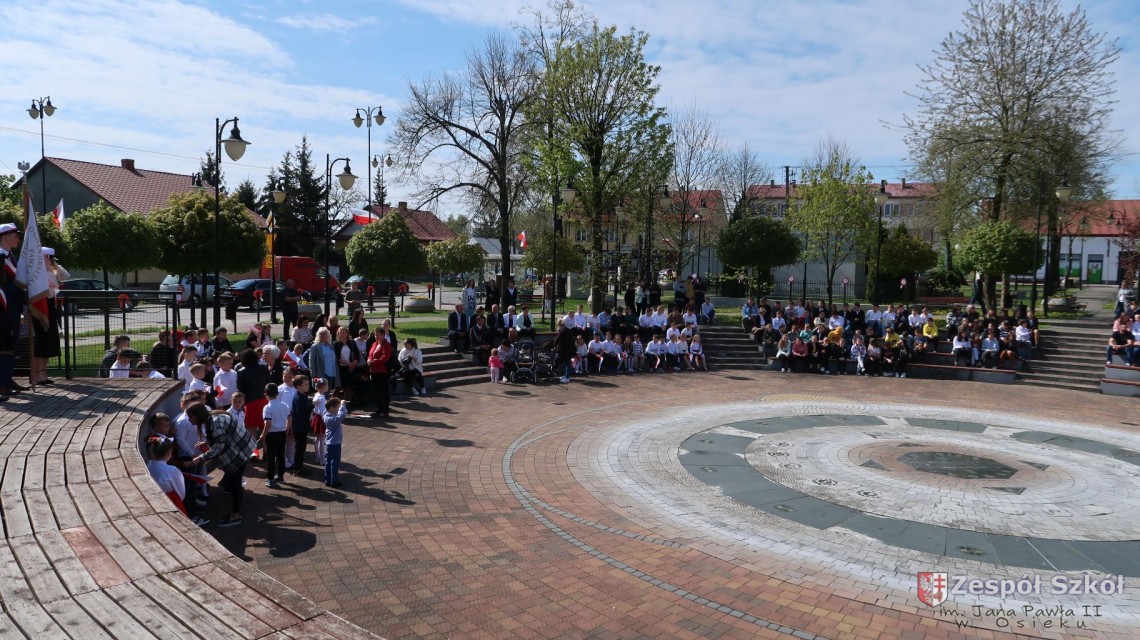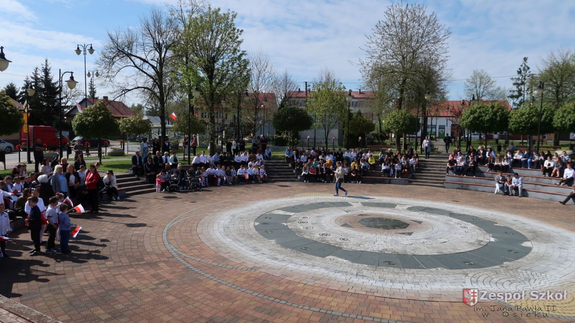 W dniu 4 maja 2022r. uczniowie Zespołu Szkół im. Jana Pawła II w Osieku świętowali 231 rocznicę uchwalenia Konstytucji 3 Maja. Uroczystości odbyły się na Rynku w Osieku, gdzie zebrała się społeczność szkolna, dyrekcja, nauczyciele, władze miasta oraz mieszkańcy.