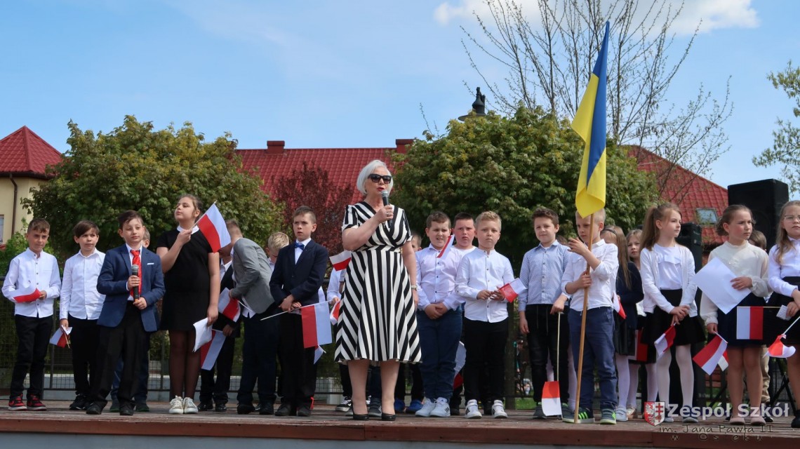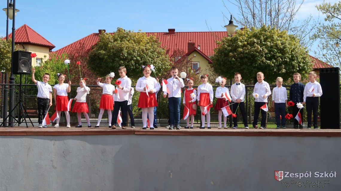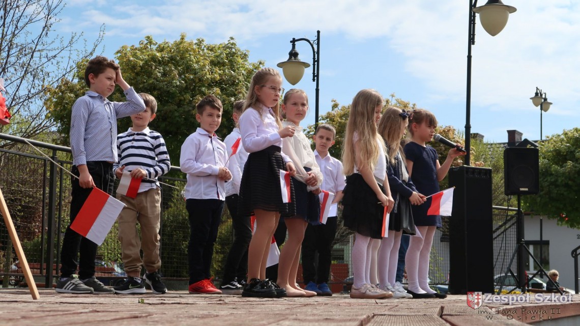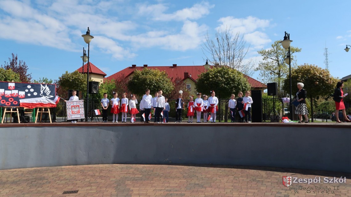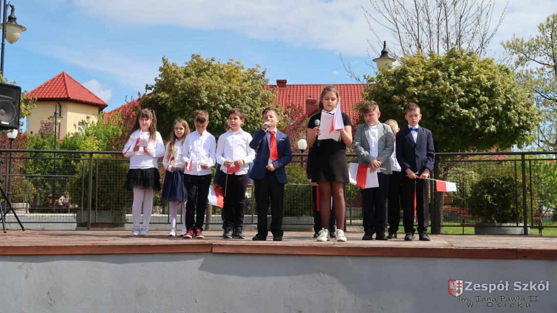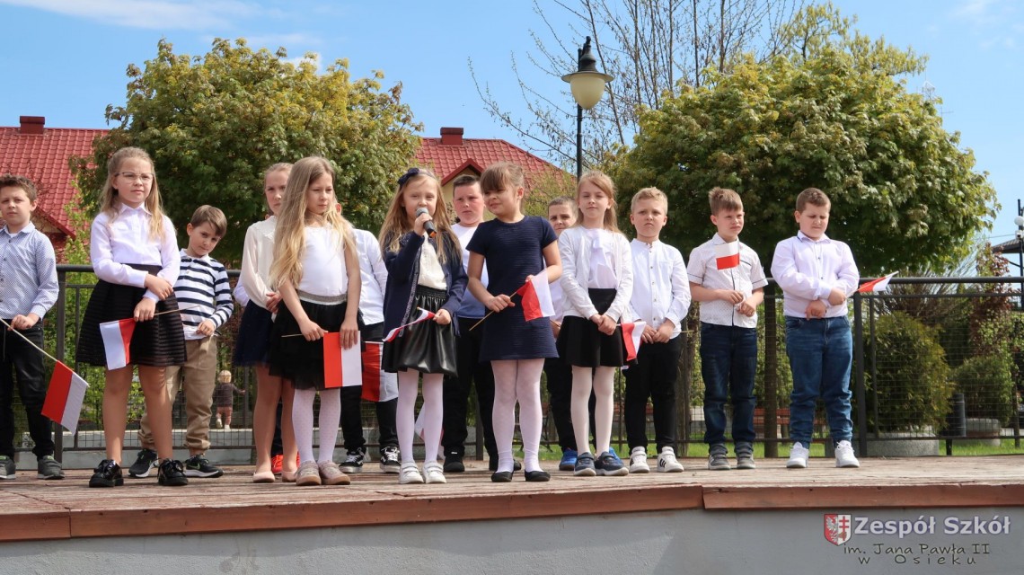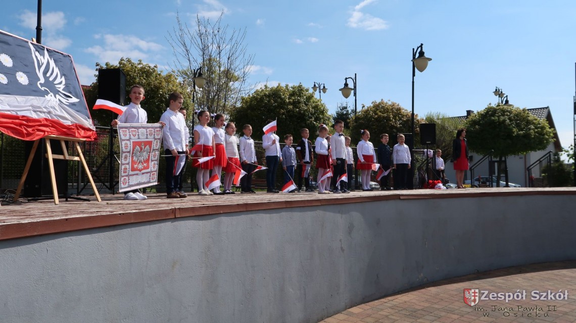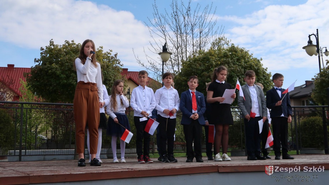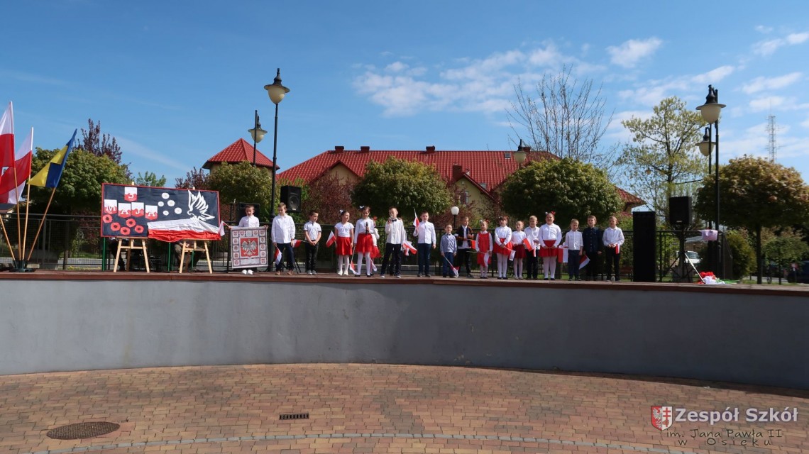 W dniu 4 maja 2022r. uczniowie Zespołu Szkół im. Jana Pawła II w Osieku świętowali 231 rocznicę uchwalenia Konstytucji 3 Maja. Uroczystości odbyły się na Rynku w Osieku, gdzie zebrała się społeczność szkolna, dyrekcja, nauczyciele, władze miasta oraz mieszkańcy.