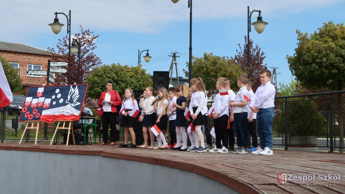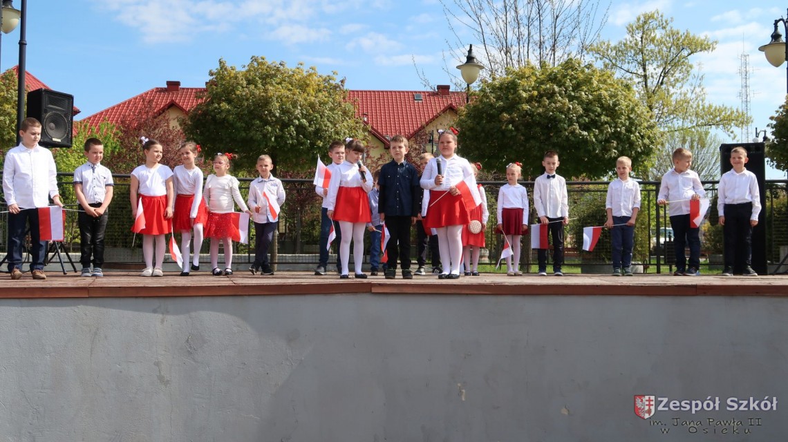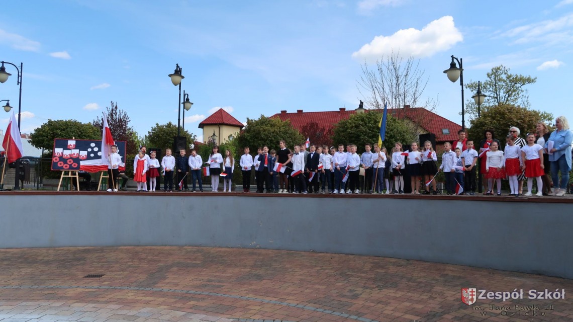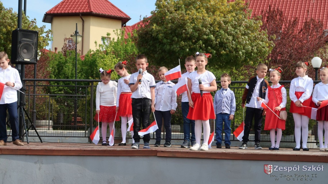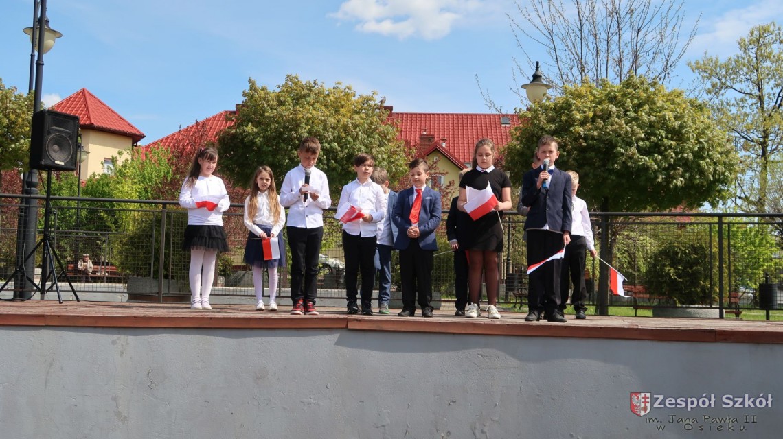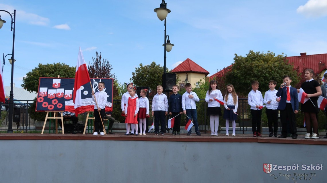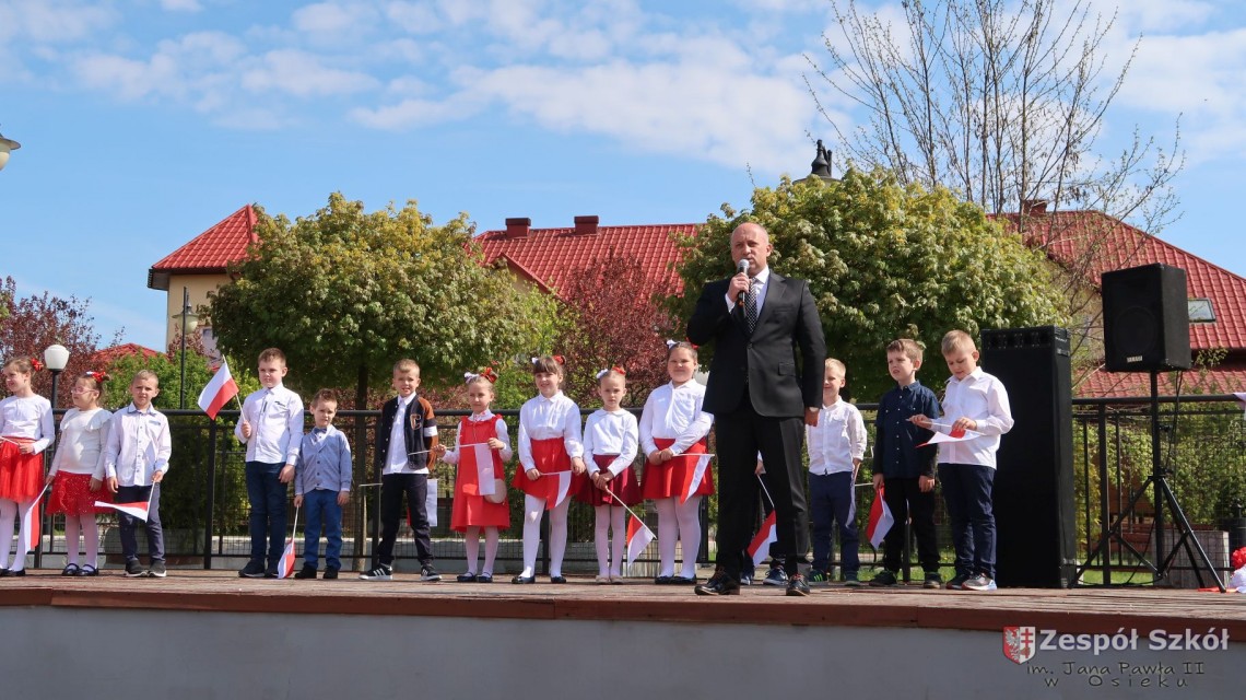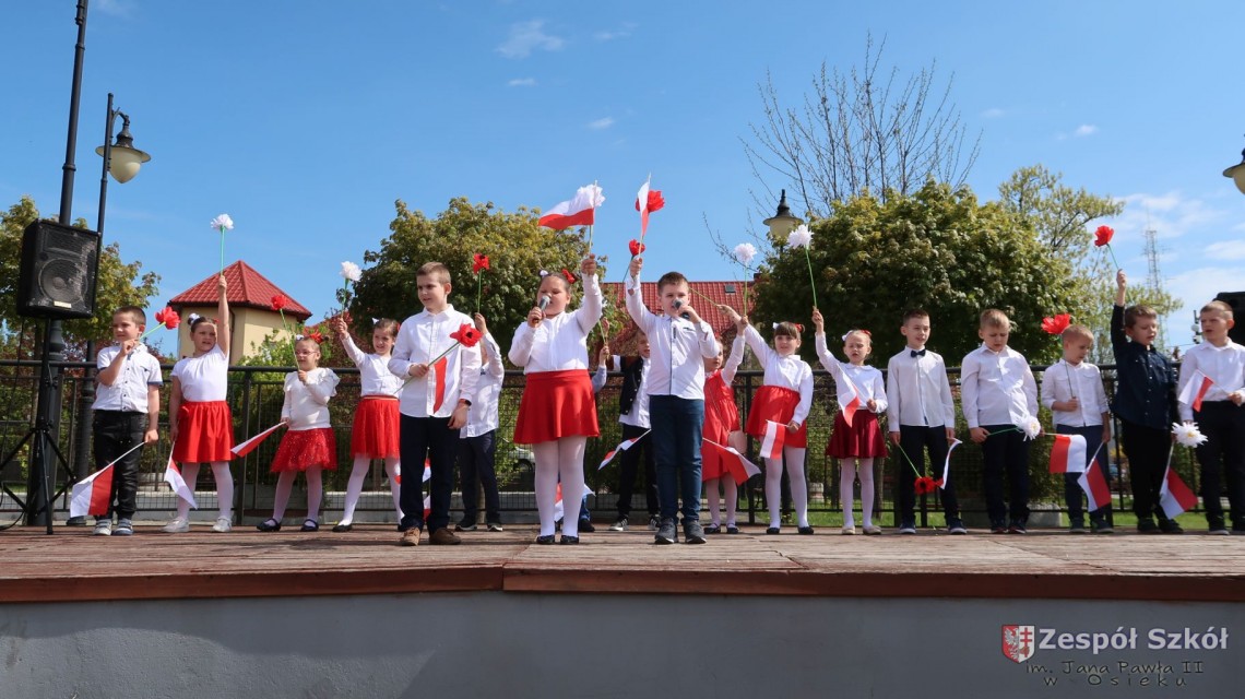 W dniu 4 maja 2022r. uczniowie Zespołu Szkół im. Jana Pawła II w Osieku świętowali 231 rocznicę uchwalenia Konstytucji 3 Maja. Uroczystości odbyły się na Rynku w Osieku, gdzie zebrała się społeczność szkolna, dyrekcja, nauczyciele, władze miasta oraz mieszkańcy.
