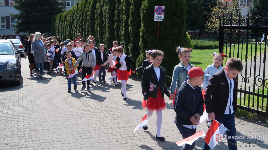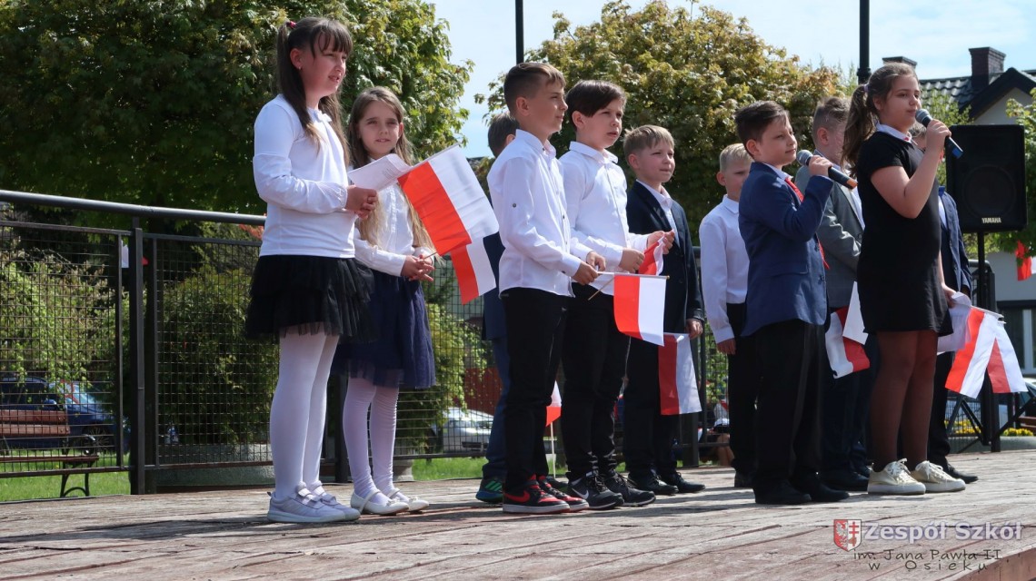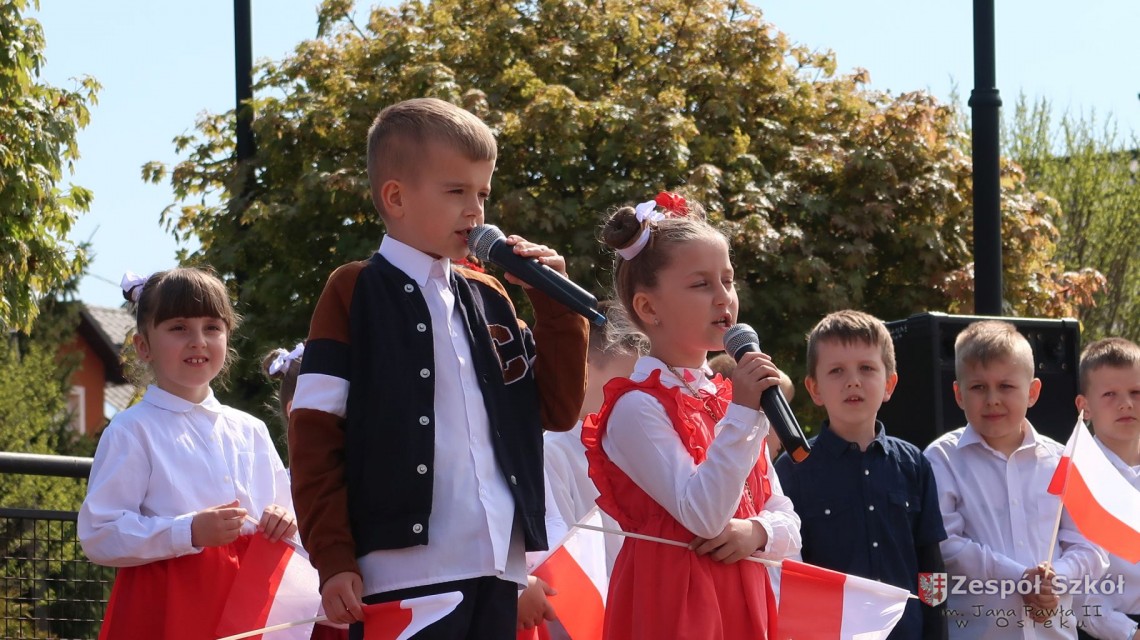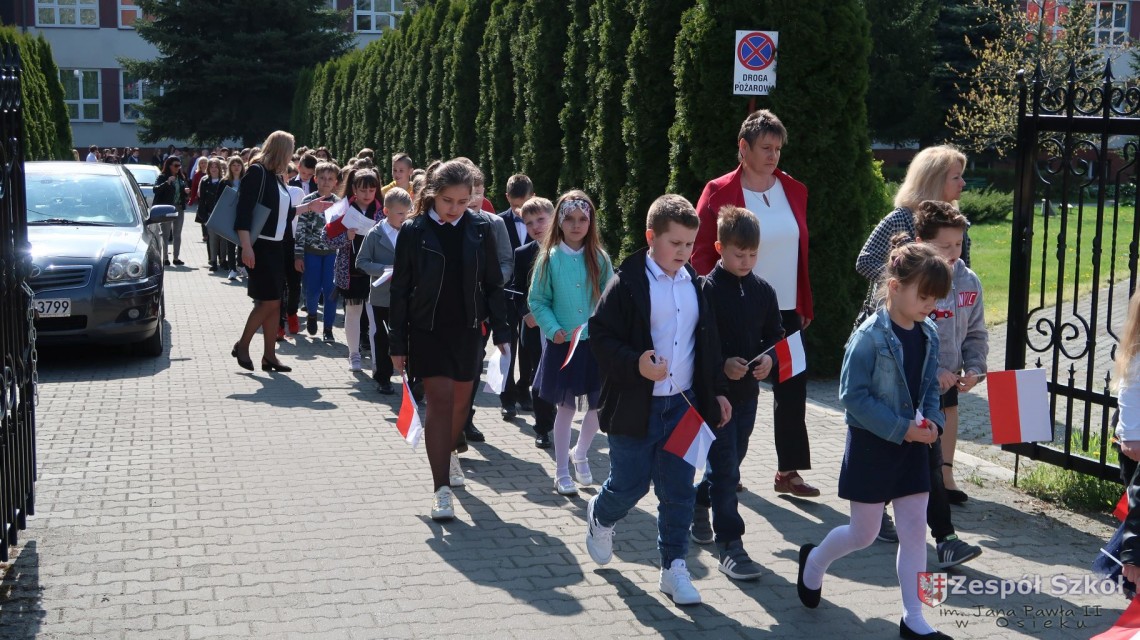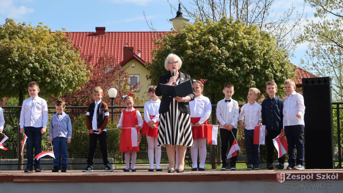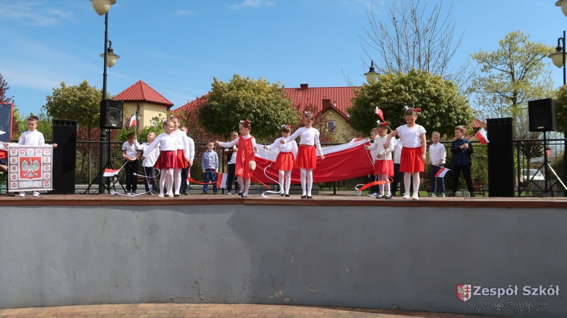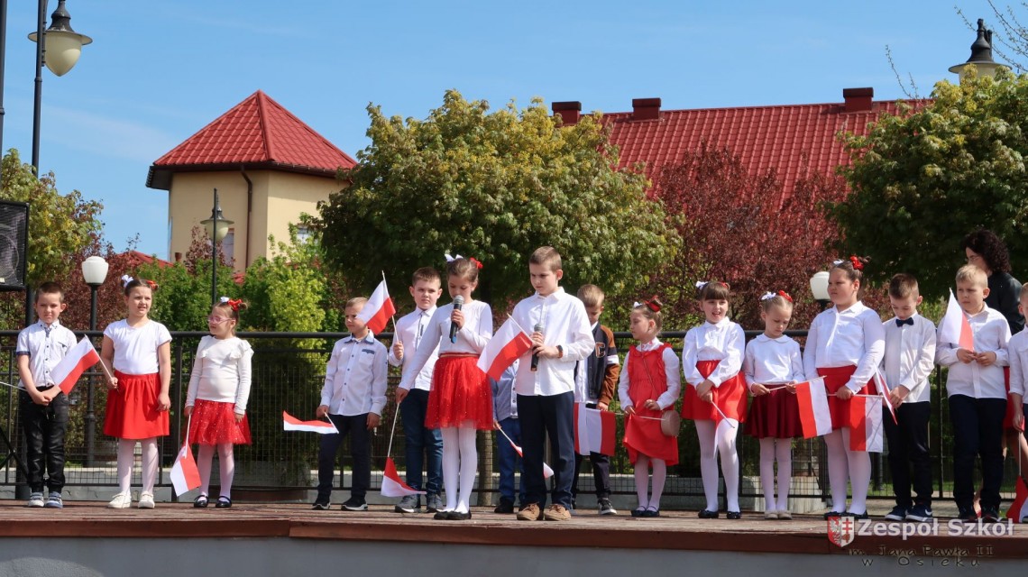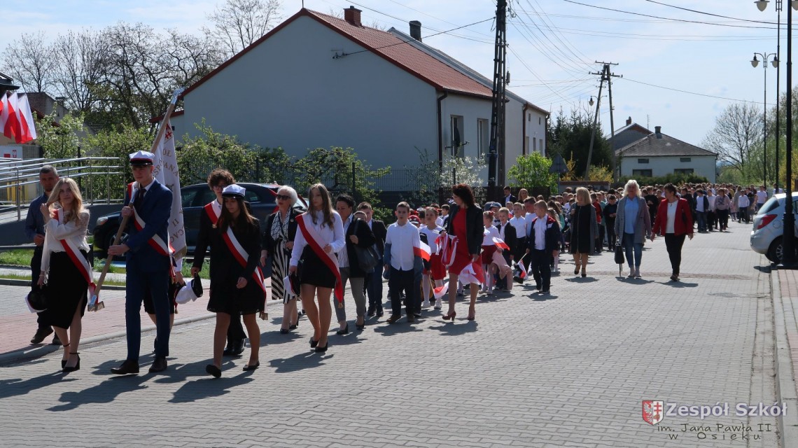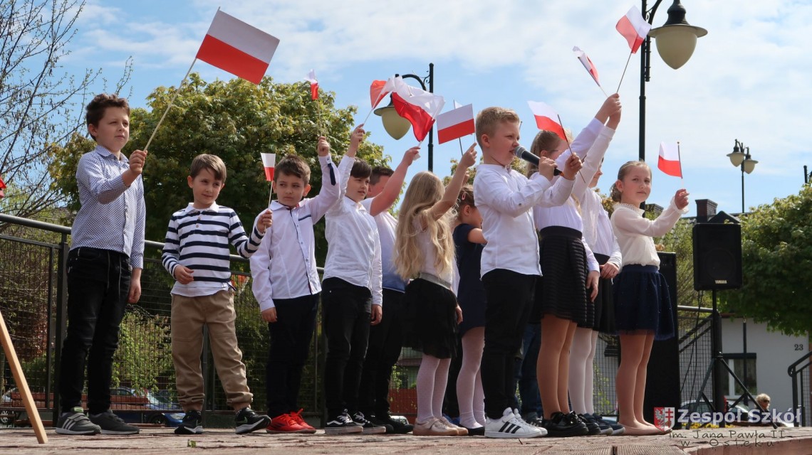W dniu 4 maja 2022r. uczniowie Zespołu Szkół im. Jana Pawła II w Osieku świętowali 231 rocznicę uchwalenia Konstytucji 3 Maja. Uroczystości odbyły się na Rynku w Osieku, gdzie zebrała się społeczność szkolna, dyrekcja, nauczyciele, władze miasta oraz mieszkańcy.