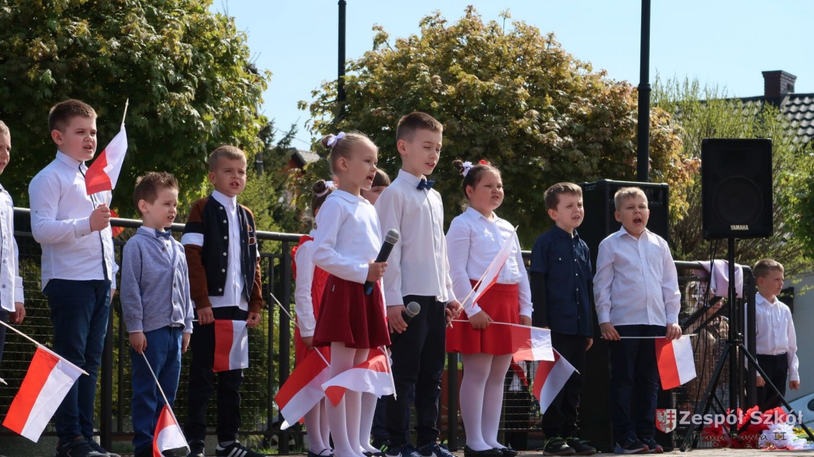 Program artystyczny przygotowali uczniowie klas 1-3 wraz z wychowawcami. Podczas uroczystości wybrzmiewały wiersze i piosenki patriotyczne. Wszyscy uczestnicy mogli wzbogacić swoją wiedzę historyczną dotyczącą tej niezwykle ważnej w naszych dziejach ustawy. Patriotyczne utwory pozwoliły przenieść się w przeszłość i dostarczyły wielu wzruszeń. Solidaryzując się z Ukrainą wszyscy wspólnie odśpiewali „Podaj rękę Ukrainie”.