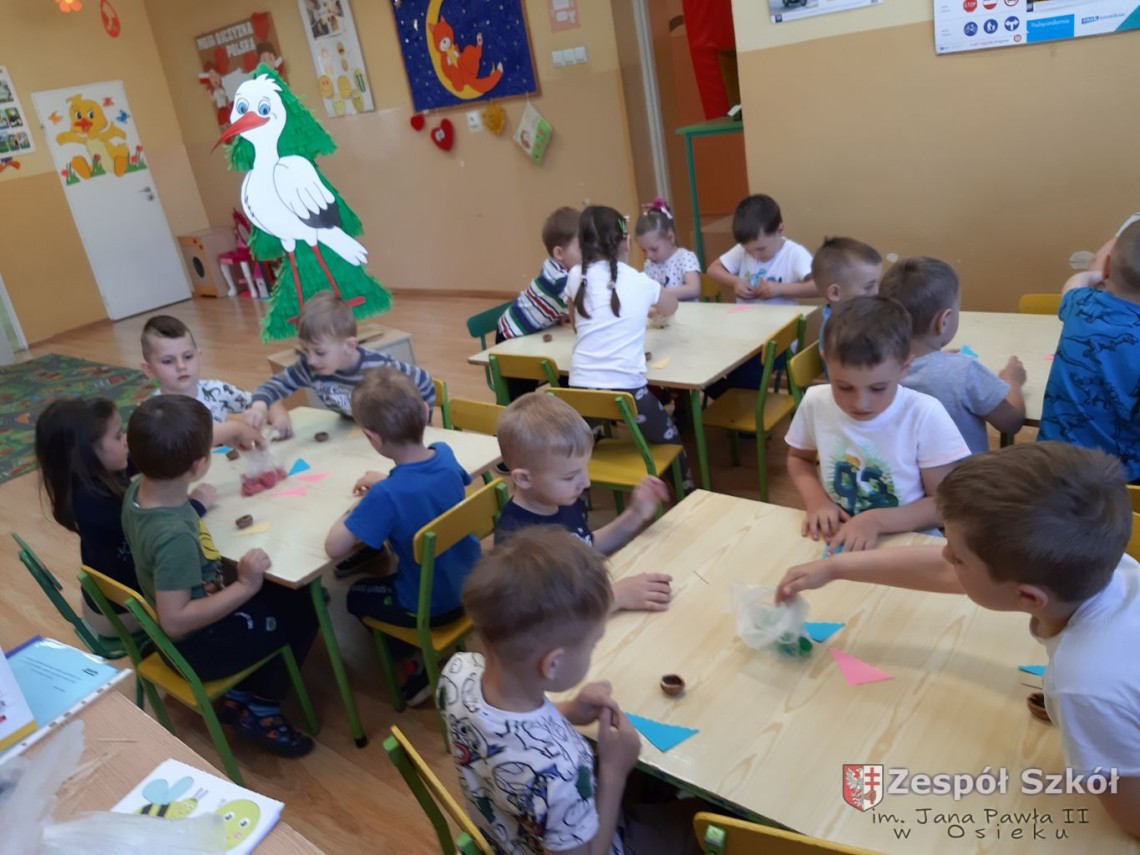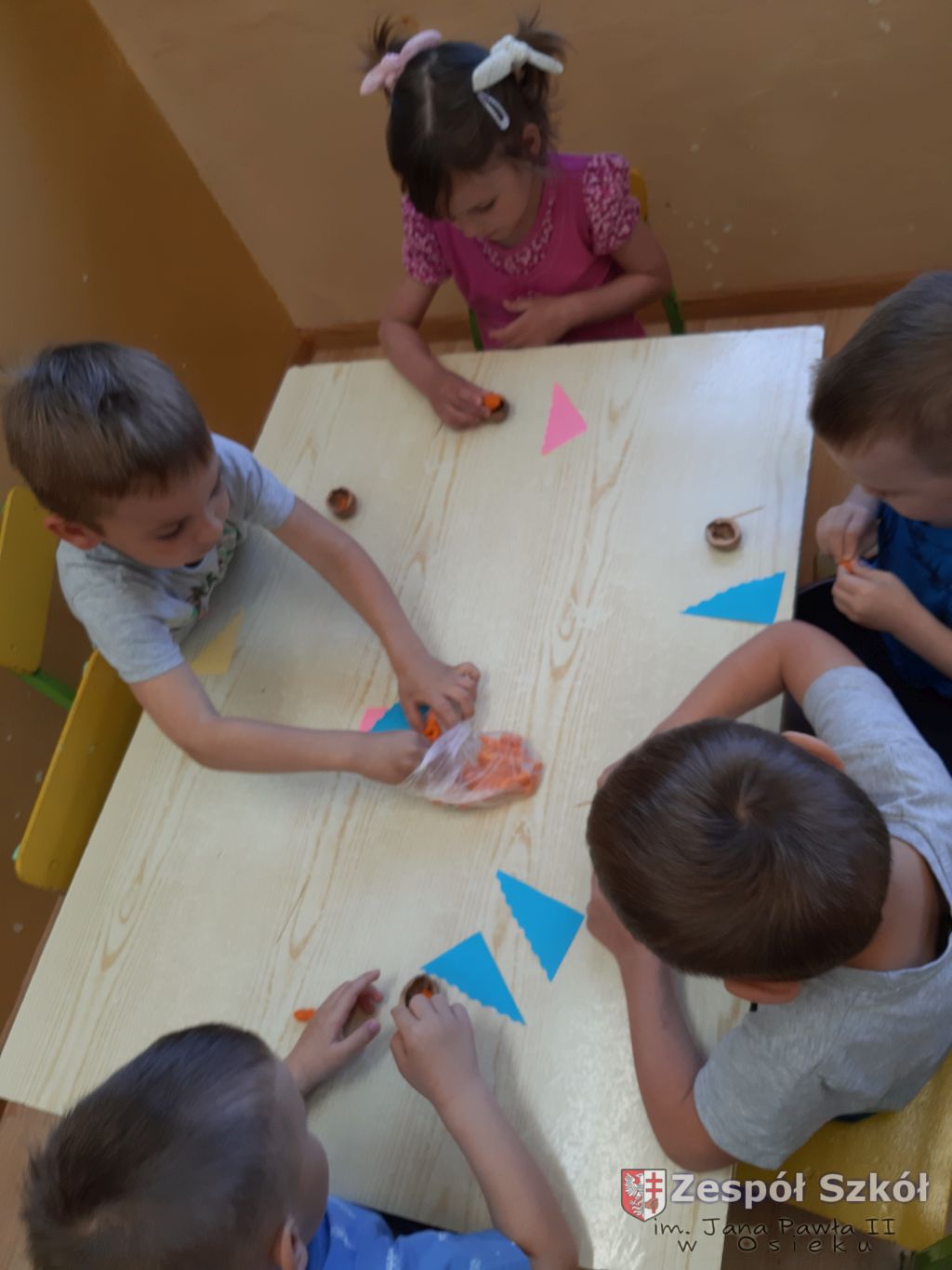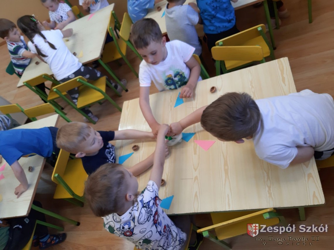 Czterolatki w miesiącu maju zakończyły realizację Ogólnopolskiego Projektu Edukacyjnego Wyzwania Teodora. Było to możliwe dzięki zdobyciu ostatniej sprawności, czyli Sprawności antynudka. Przy zdobywaniu tej odznaki dzieci poznały „Nudzimisie”, które jak się okazało były najlepsze w „odnudzaniu”. Te niesamowite stworki dzieci poznały podczas słuchania książki napisanej przez Rafała Klimczaka o takim właśnie tytule „Nudzimisie”. Dzieci przed przystąpieniem do zdania zapoznały się z historią pewnego przedszkolaka, którego odwiedzały te niesamowite stworki. Pomagały one rozwiązać wiele dziecięcych problemów. Czterolatki też postanowiły wymyślić sposób na nudę, który dla nich polegał na konstruowaniu. Wykorzystały to, co było kiedyś zgromadzone/podarowane, czyli: łupinki z orzechów włoskich, wykałaczki, plastelinę i kartki, aby skonstruować żaglówki, które później wezmą udział w wyścigu.
