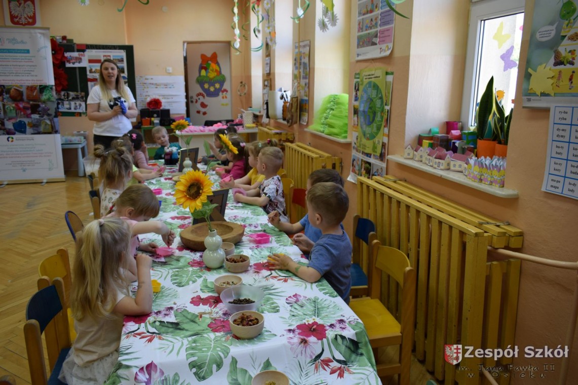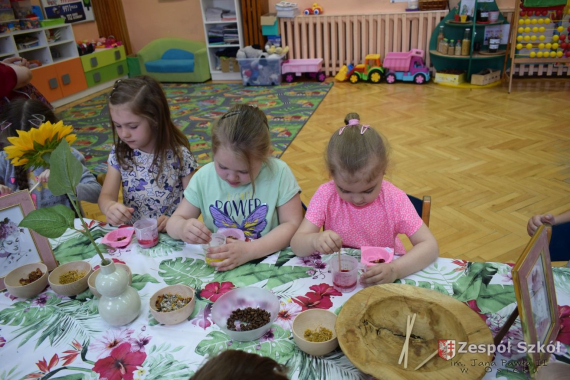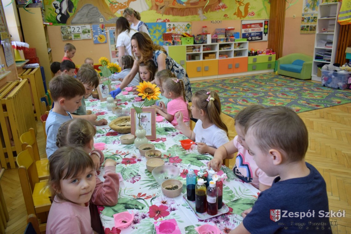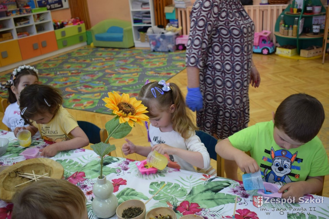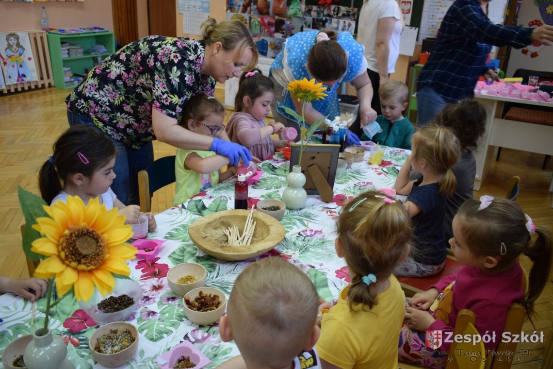 Właścicielka firmy Kwitnące Umysły Pracownia Twórczego Rozwoju i Edukacji przeprowadziła w przedszkolu warsztaty mydlarskie. Mydła, które tworzyły dzieci na warsztatach były doskonałą formą twórczej aktywności. Na zajęciach dzieci same decydowały, co będzie zatopione w ich mydełkach. Rozwijane były w ten sposób u dzieci nie tylko kreatywność i twórcze myślenie, lecz także poczucie odpowiedzialności, umiejętność podejmowania decyzji, poczucie sprawstwa. Dzieci dodawały do mydełek swoje ulubione zapachy.