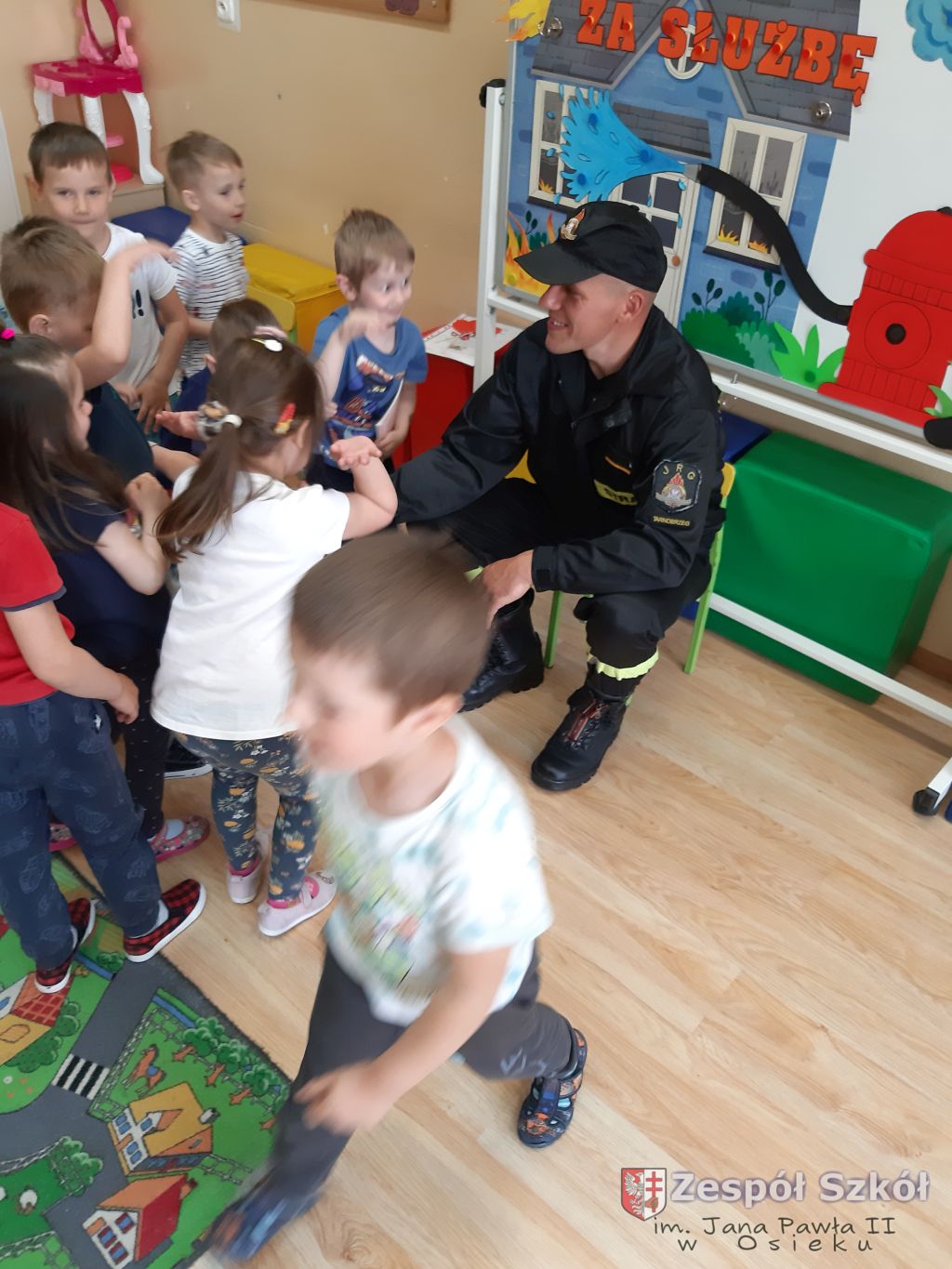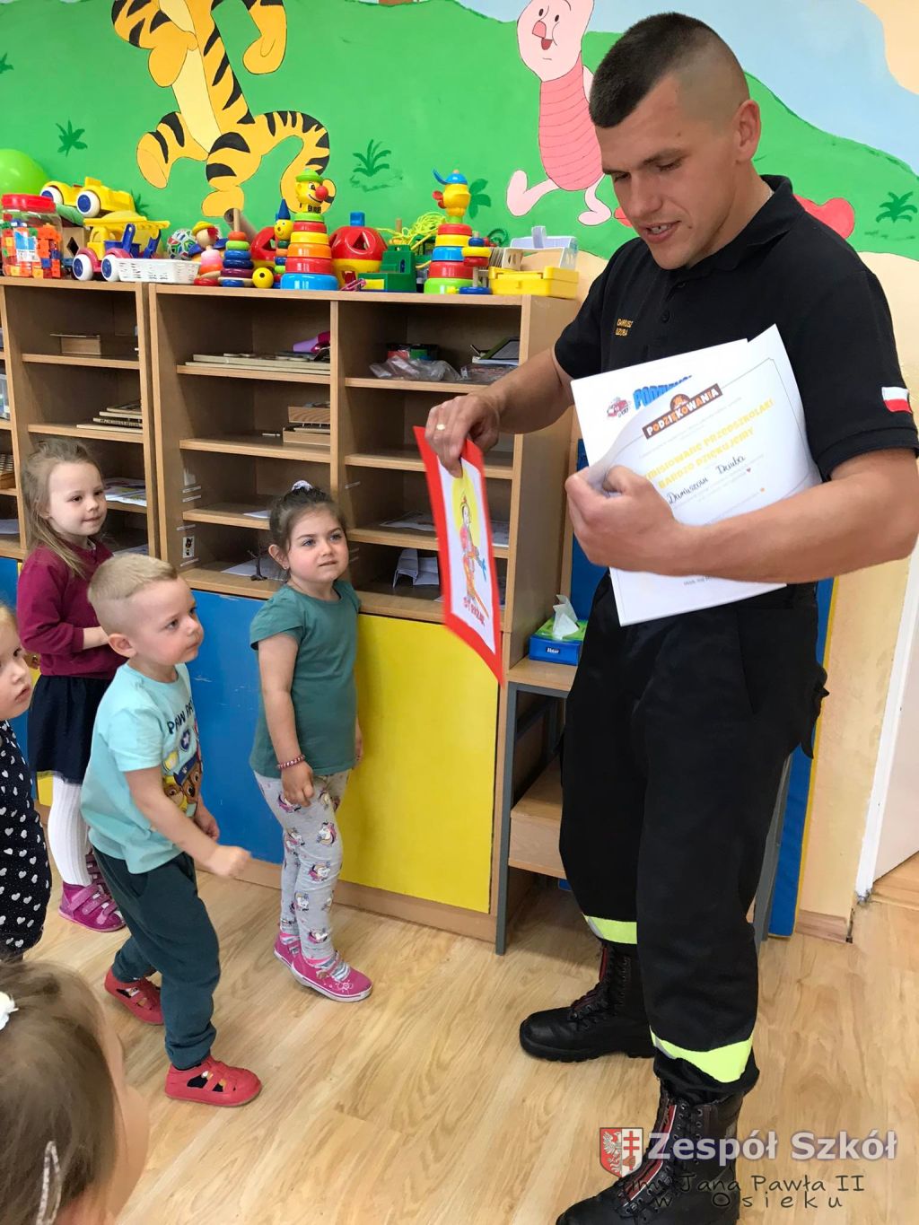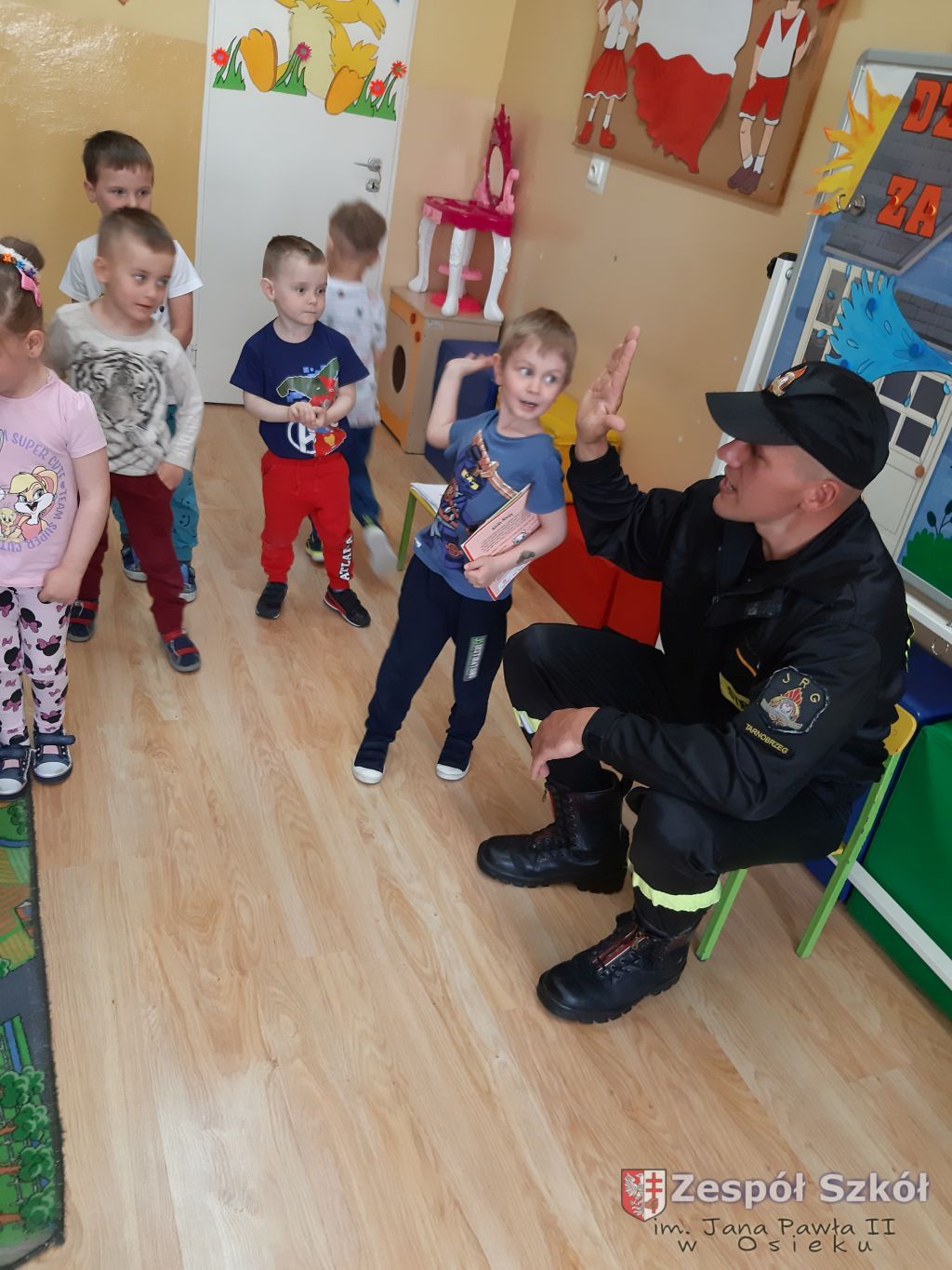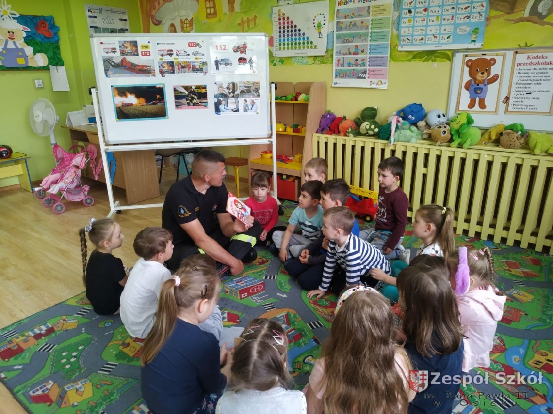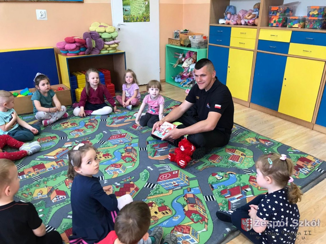 Strażak w przedszkolu.
