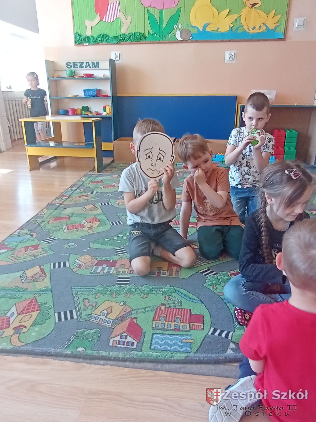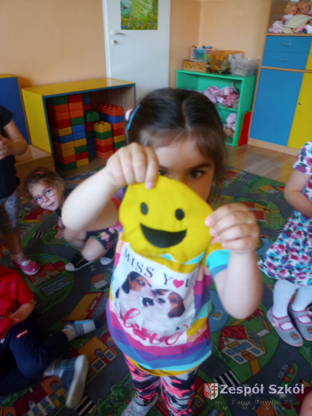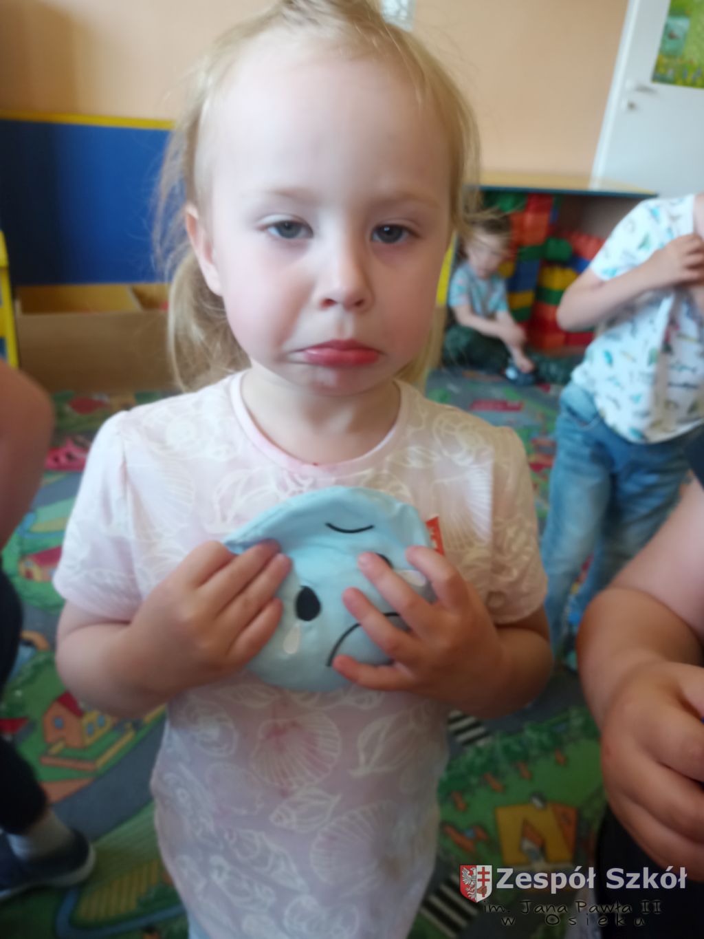 03.06.2022 r. zorganizowane zostało spotkanie dla przedszkolaków z pedagogiem szkolnym- Panią Joanną Jur, poświęcone tematyce zdrowia psychicznego. Podczas spotkania pani pedagog przeprowadziła zajęcia pt: ,,Jestem radosny, jestem zły - świat emocji przedszkolaków". Celem zajęć było wspieranie rozwoju emocjonalnego i społecznego oraz rozwijanie inteligencji emocjonalnej u przedszkolaków. Pani pedagog opowiedziała dzieciom o różnych rodzajach emocji na podstawie „buziek – emotikonów”, wysłuchały wiersza