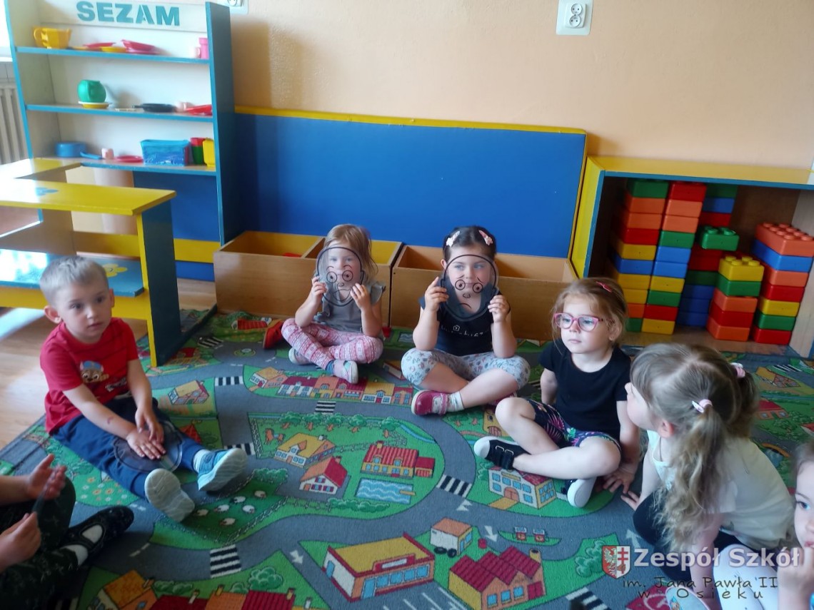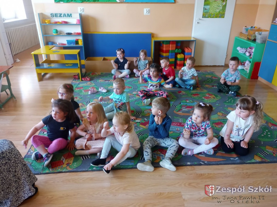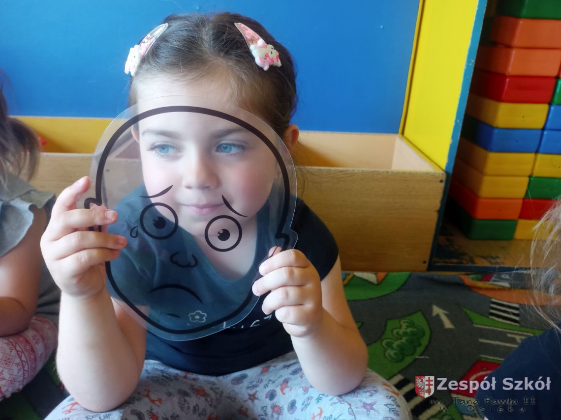 03.06.2022 r. zorganizowane zostało spotkanie dla przedszkolaków z pedagogiem szkolnym- Panią Joanną Jur, poświęcone tematyce zdrowia psychicznego. Podczas spotkania pani pedagog przeprowadziła zajęcia pt: ,,Jestem radosny, jestem zły - świat emocji przedszkolaków". Celem zajęć było wspieranie rozwoju emocjonalnego i społecznego oraz rozwijanie inteligencji emocjonalnej u przedszkolaków. Pani pedagog opowiedziała dzieciom o różnych rodzajach emocji na podstawie „buziek – emotikonów”, wysłuchały wiersza