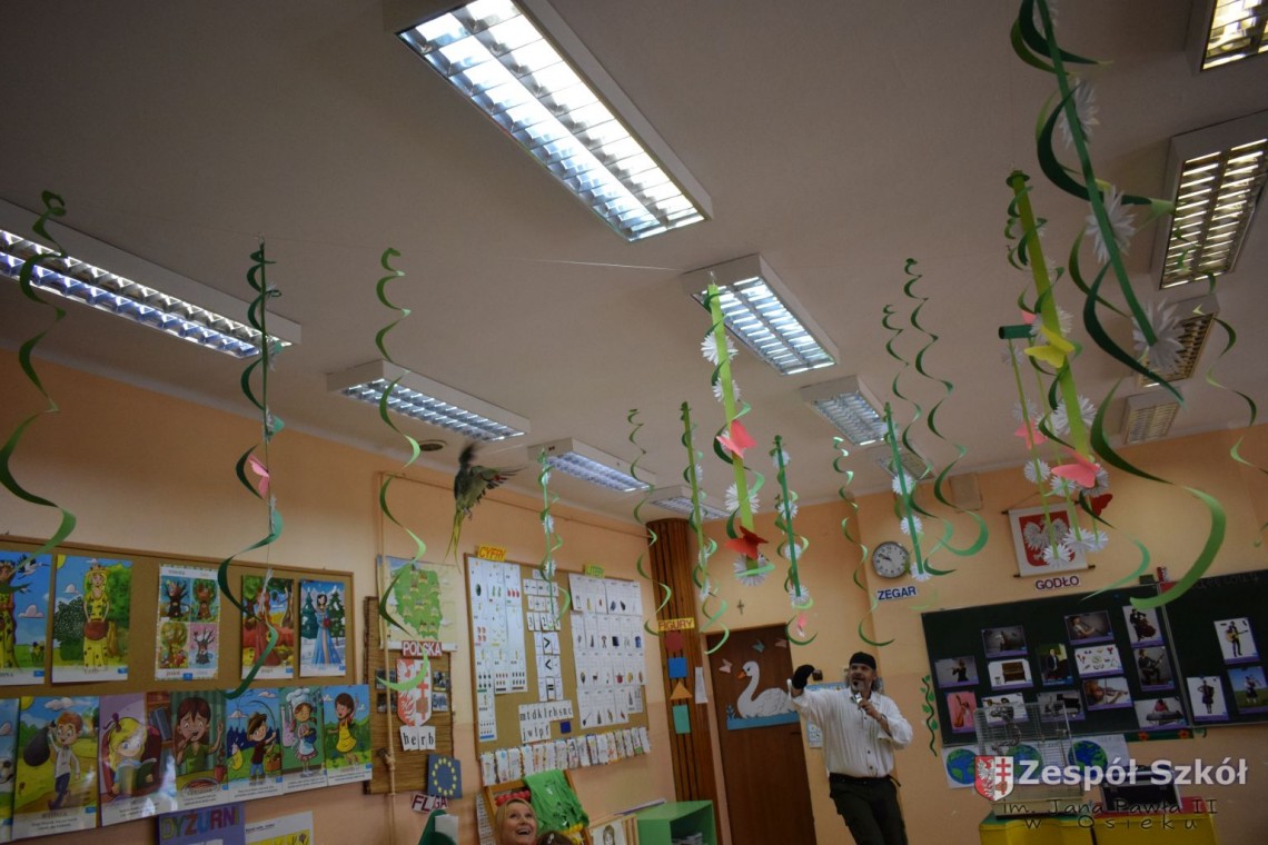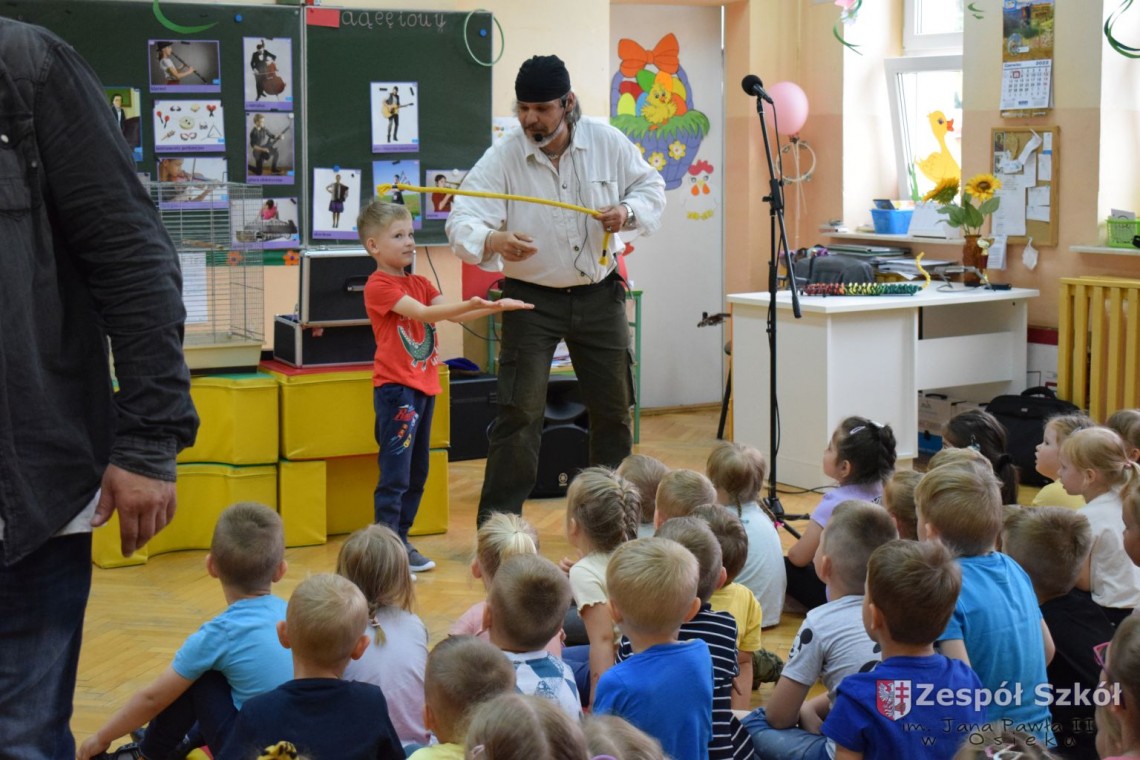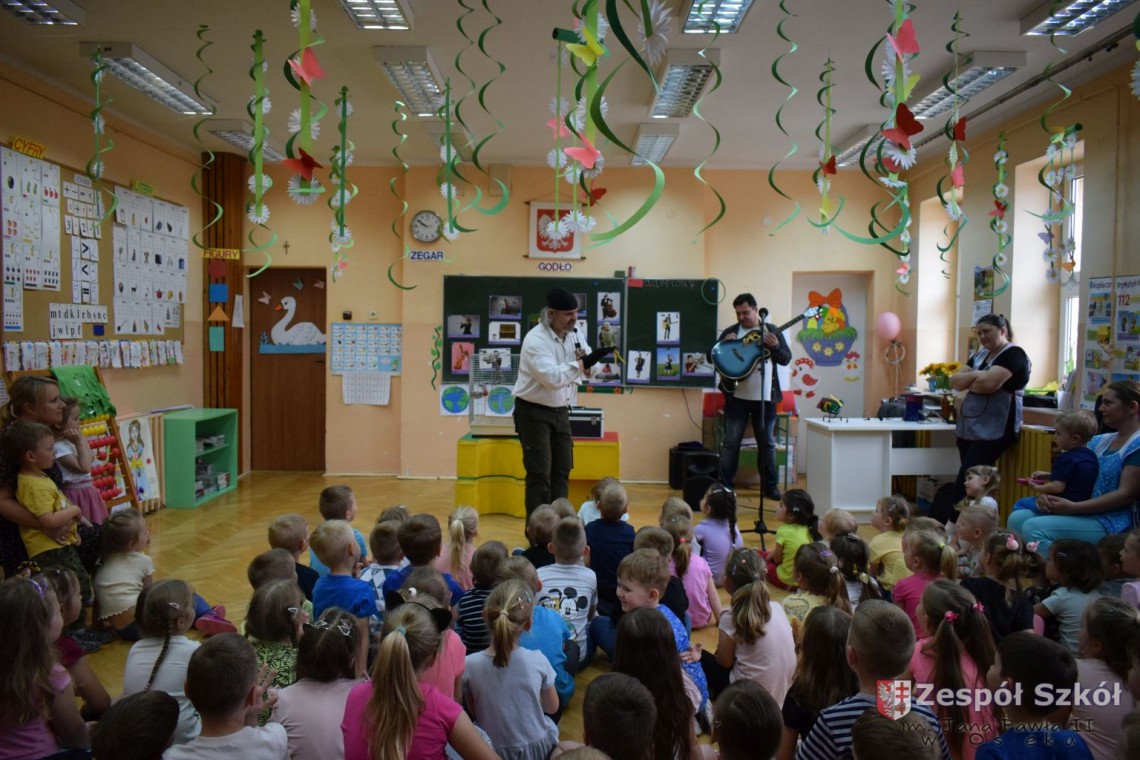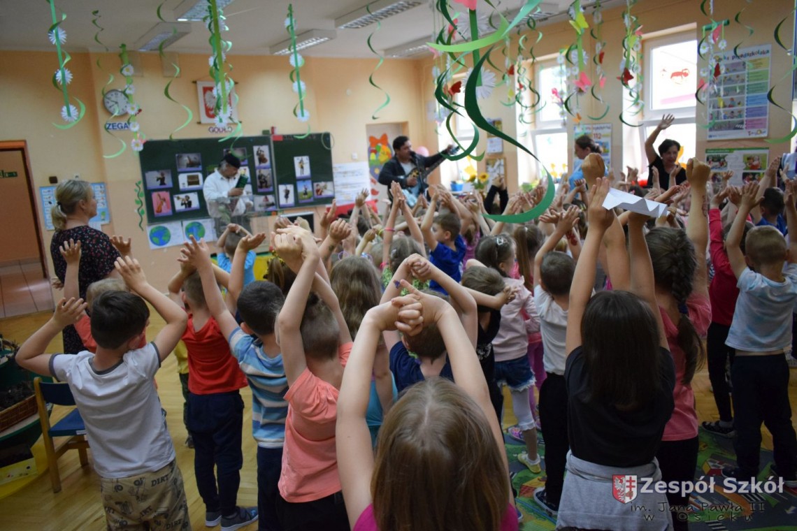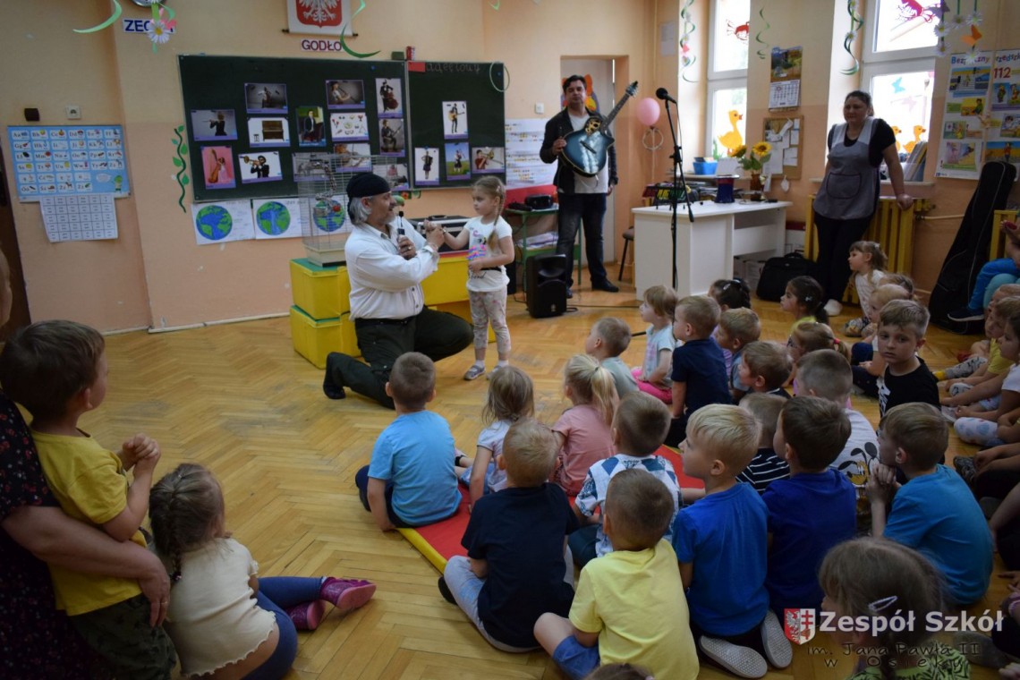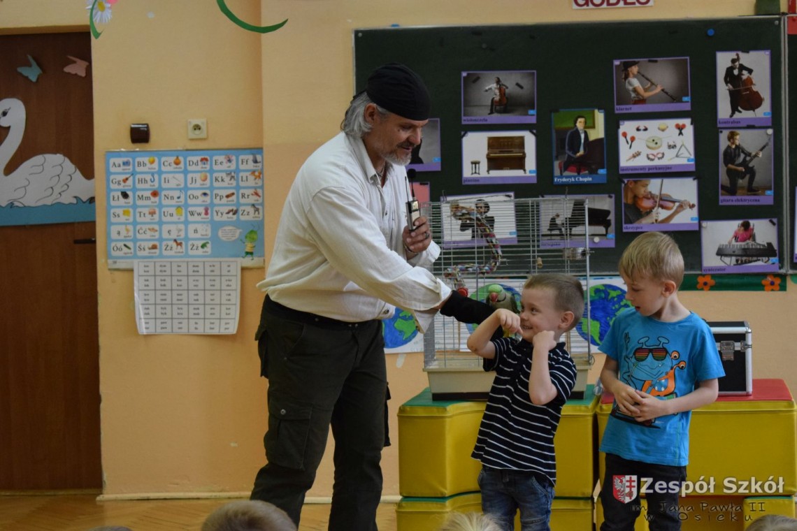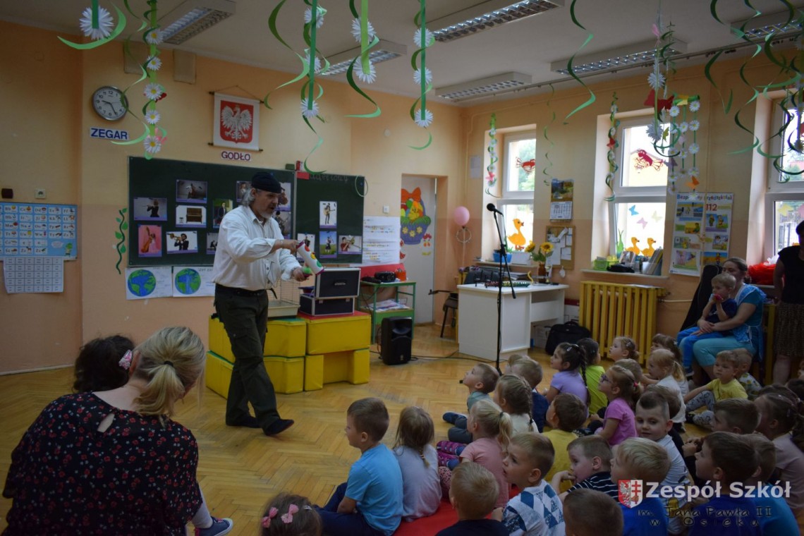 Pod takim tytułem odbyło się spotkanie artystów z przedszkolakami. Podczas spotkania, zaprezentowano pokaz iluzji wypełniony różnymi sztuczkami w wykonaniu Artysty Cyrkowego z trzydziestoletnim doświadczeniem oraz pokaz umiejętności "wytresowanej" papugi. Wszystko to z oprawą muzyczną w wykonaniu Muzyka, Animatora i Pedagoga z wieloletnim doświadczeniem scenicznym, który prezentował i zachęcał do śpiewania dzieci piosenek o tematyce ekologicznej. Dzieci miały możliwość poznać różne instrumenty muzyczne, którymi posługiwali się artyści. Spotkanie przebiegło w radosnej atmosferze.