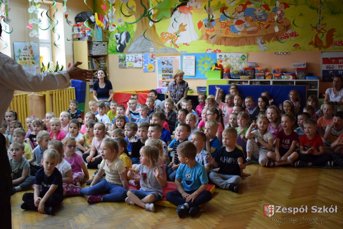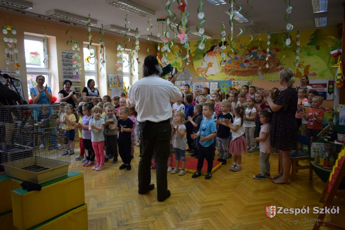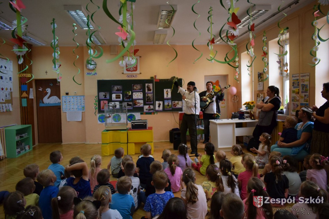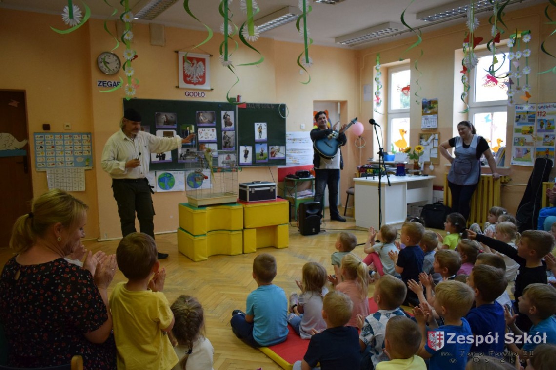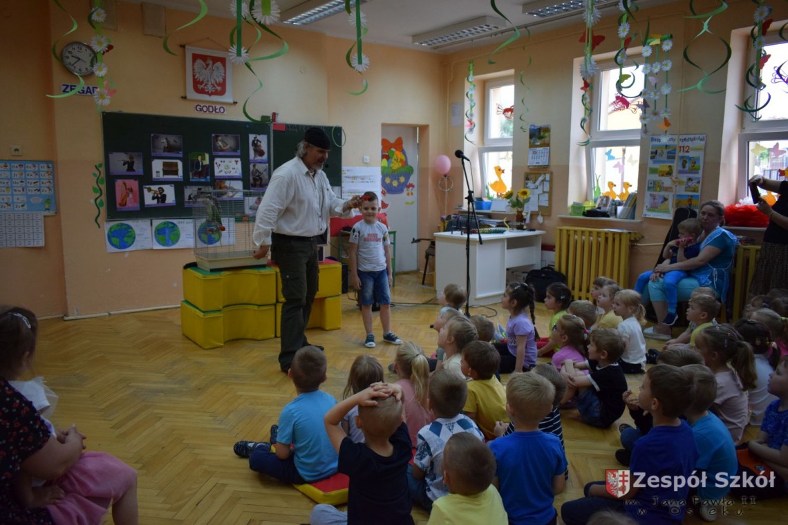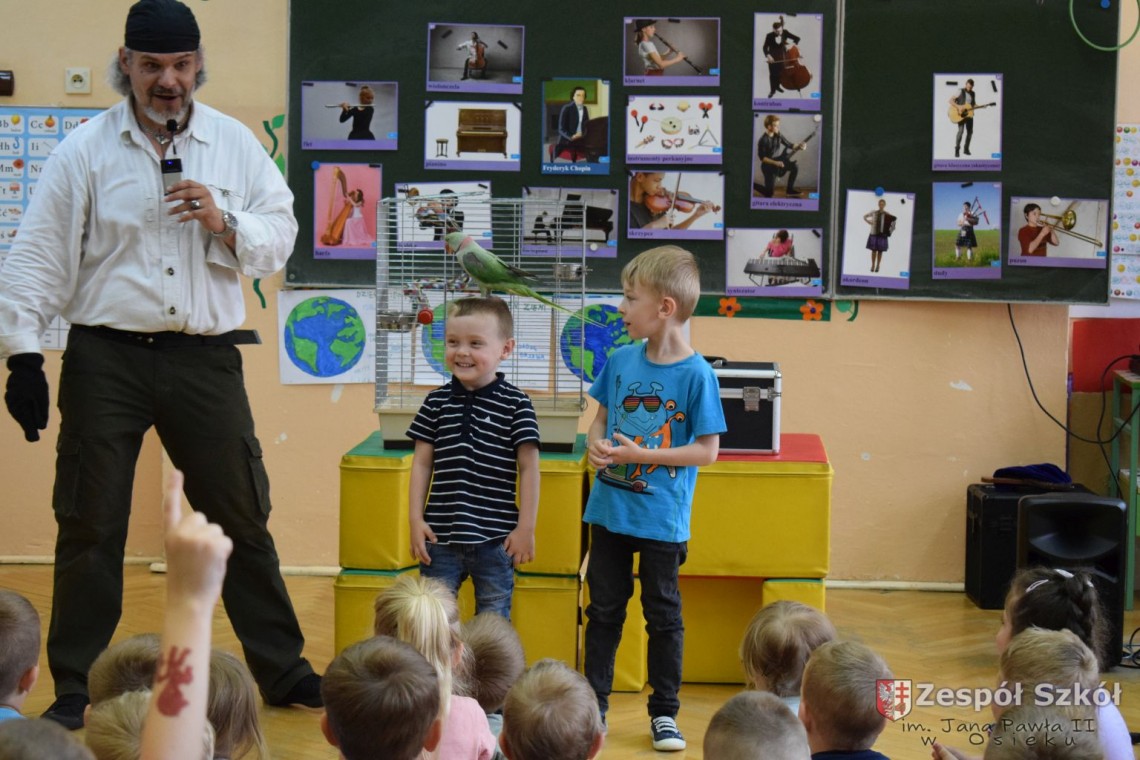 Pod takim tytułem odbyło się spotkanie artystów z przedszkolakami. Podczas spotkania, zaprezentowano pokaz iluzji wypełniony różnymi sztuczkami w wykonaniu Artysty Cyrkowego z trzydziestoletnim doświadczeniem oraz pokaz umiejętności "wytresowanej" papugi. Wszystko to z oprawą muzyczną w wykonaniu Muzyka, Animatora i Pedagoga z wieloletnim doświadczeniem scenicznym, który prezentował i zachęcał do śpiewania dzieci piosenek o tematyce ekologicznej. Dzieci miały możliwość poznać różne instrumenty muzyczne, którymi posługiwali się artyści. Spotkanie przebiegło w radosnej atmosferze.