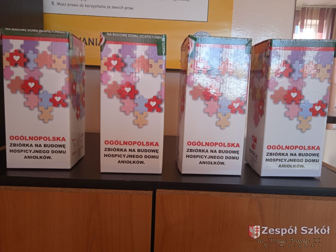 Szkolny Klub Wolontariuszy w Zespole Szkół im. Jana Pawła II w Osieku we współpracy z Fundacją „Z Serca Dla Serca” organizuje na terenie naszej szkoły akcję zbiórki pieniędzy. Zostaną one przeznaczone na rzecz budowy "Domu Aniołków" - Domu Hospicyjnego dla dzieci chorych w Skowierzynie w gminie Zaleszany w powiecie stalowowolskim.