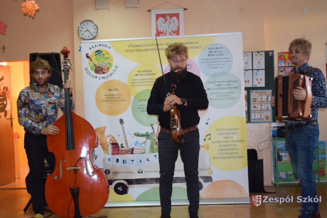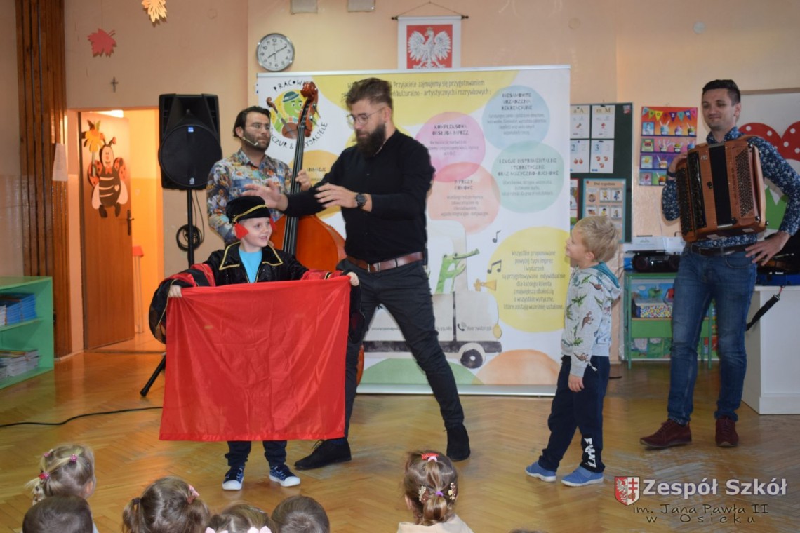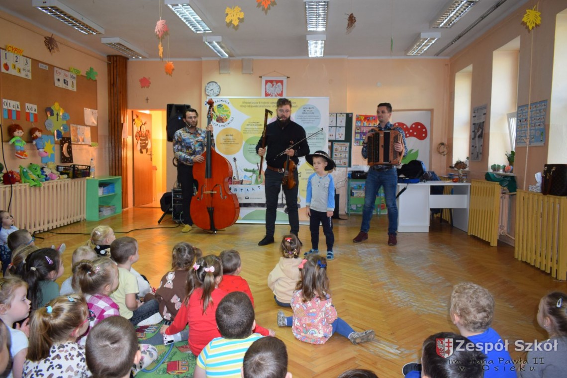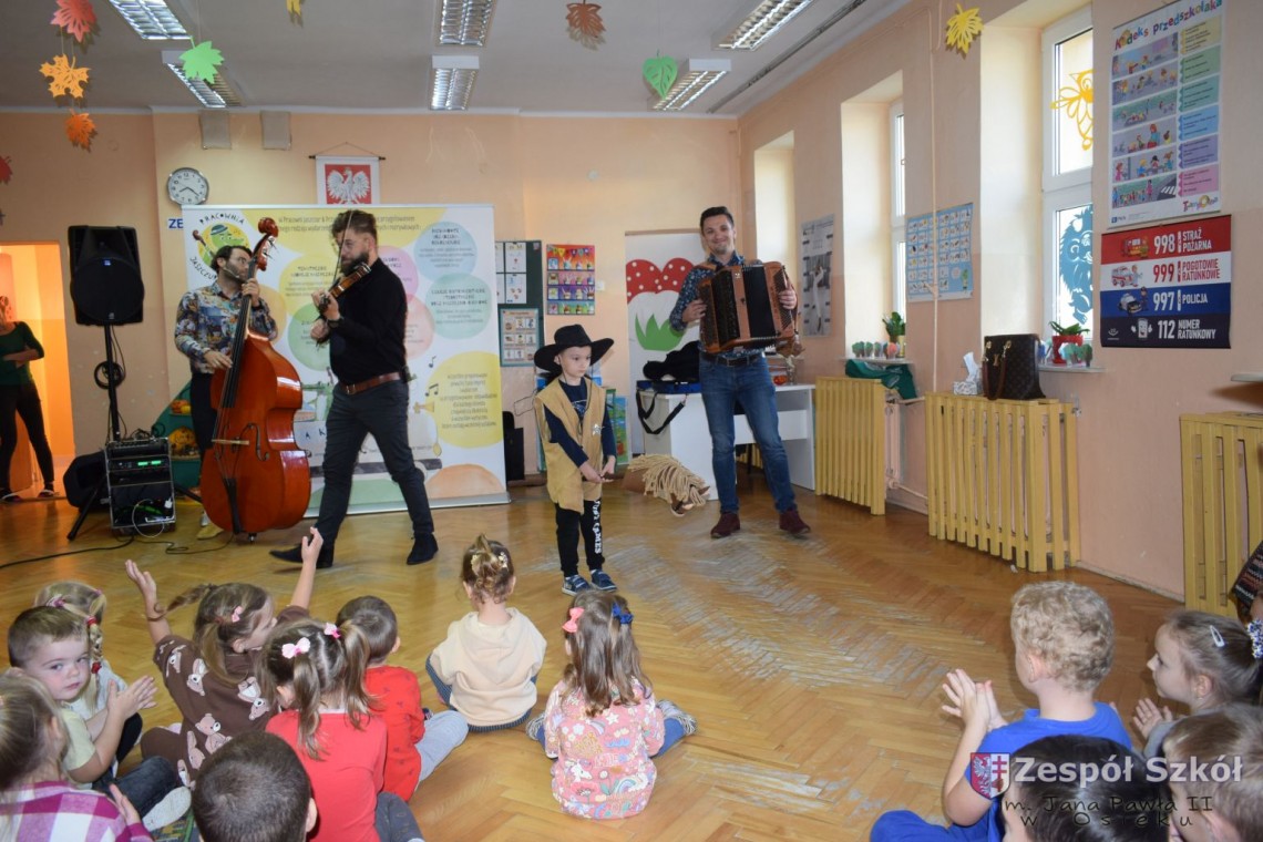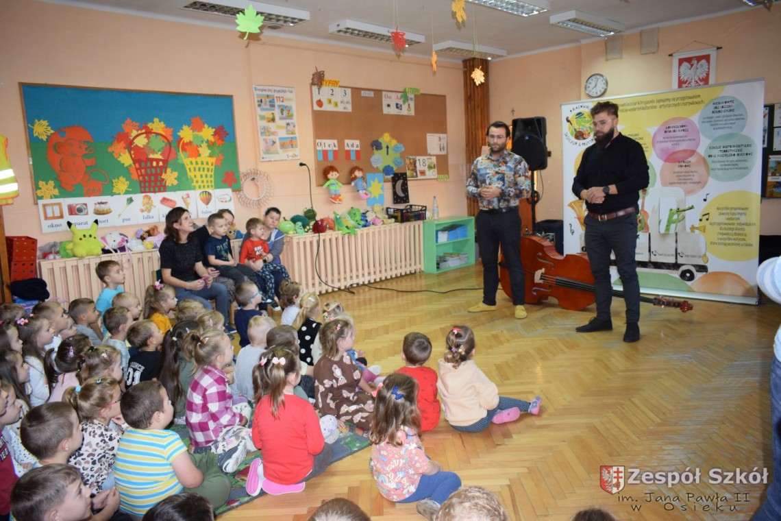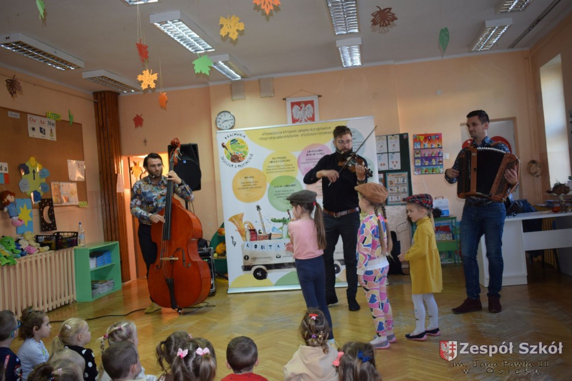 Dzieci z naszego przedszkola 19 października miały możliwość wzięcia udziału w audycji muzycznej „Podróż dookoła świata muzycznym samolotem” prowadzonej prze muzyków z „Pracowni Jaszczur i Przyjaciele”. W rytmie pięknych piosenek dzieci poznały nowe instrumenty muzyczne oraz ich charakterystyczne dźwięki, tańczyły i świetnie się bawiły. Audycja wszystkim uczestnikom sprawiła wiele radości.
