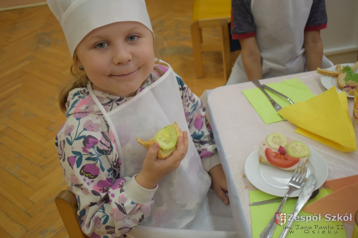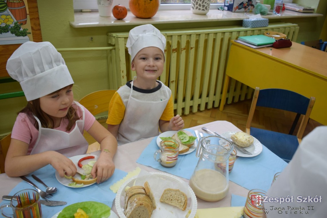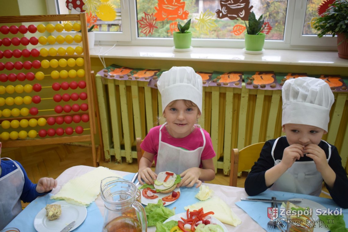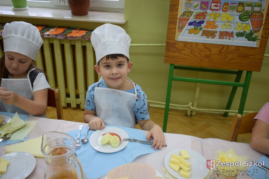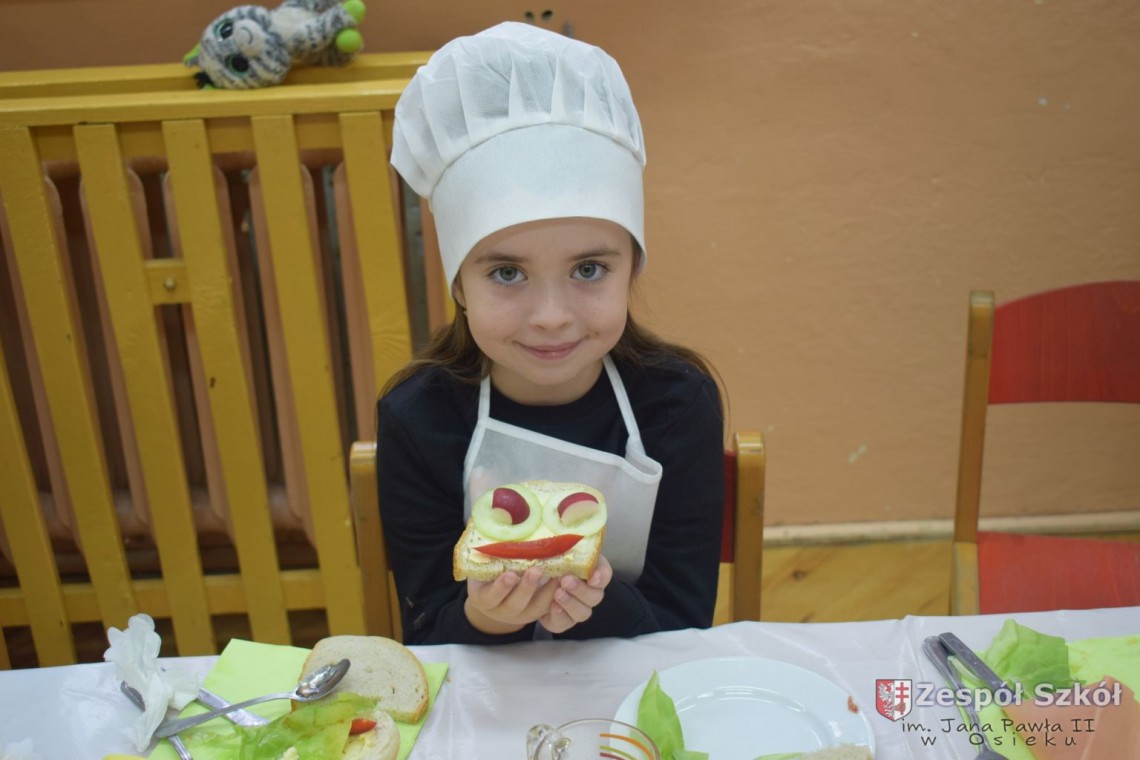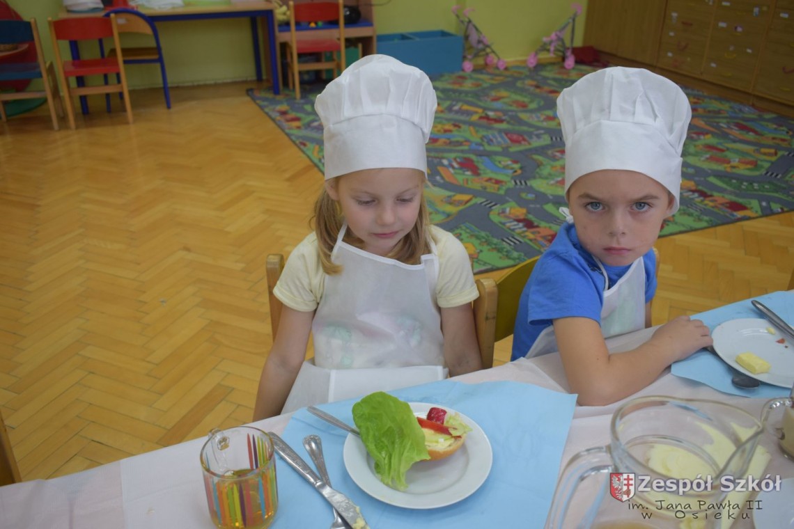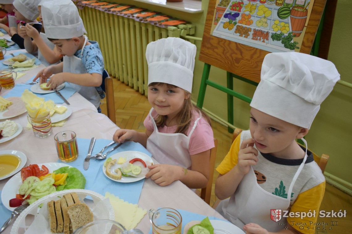 Biedronki i Muchomorki przygotowały pyszne, zdrowe, kolorowe kanapki, szaszłyki warzywne, zdrowe napoje. Najciekawszym momentem była degustacja. Wszystkie zdrowe produkty okazały się smaczne, ponieważ szybko zniknęły z talerzy.