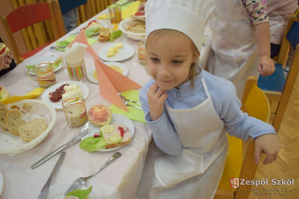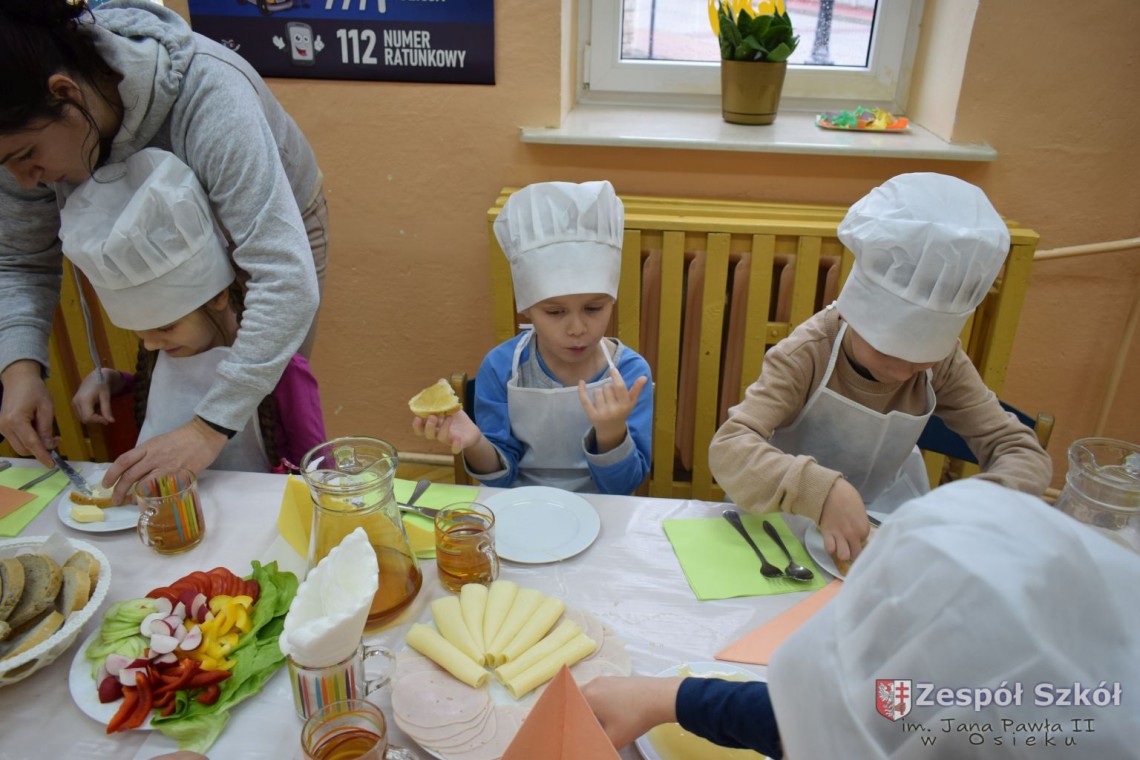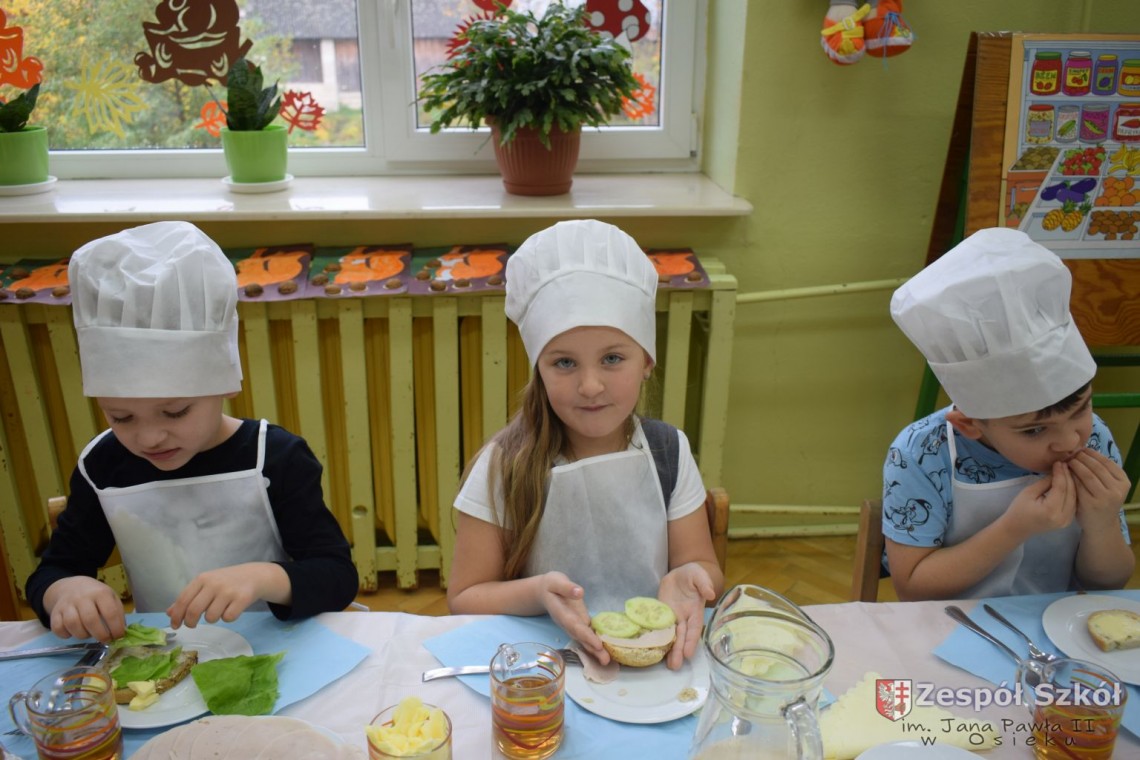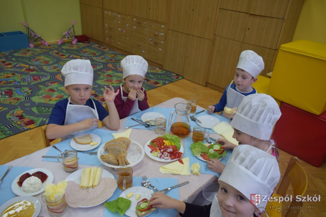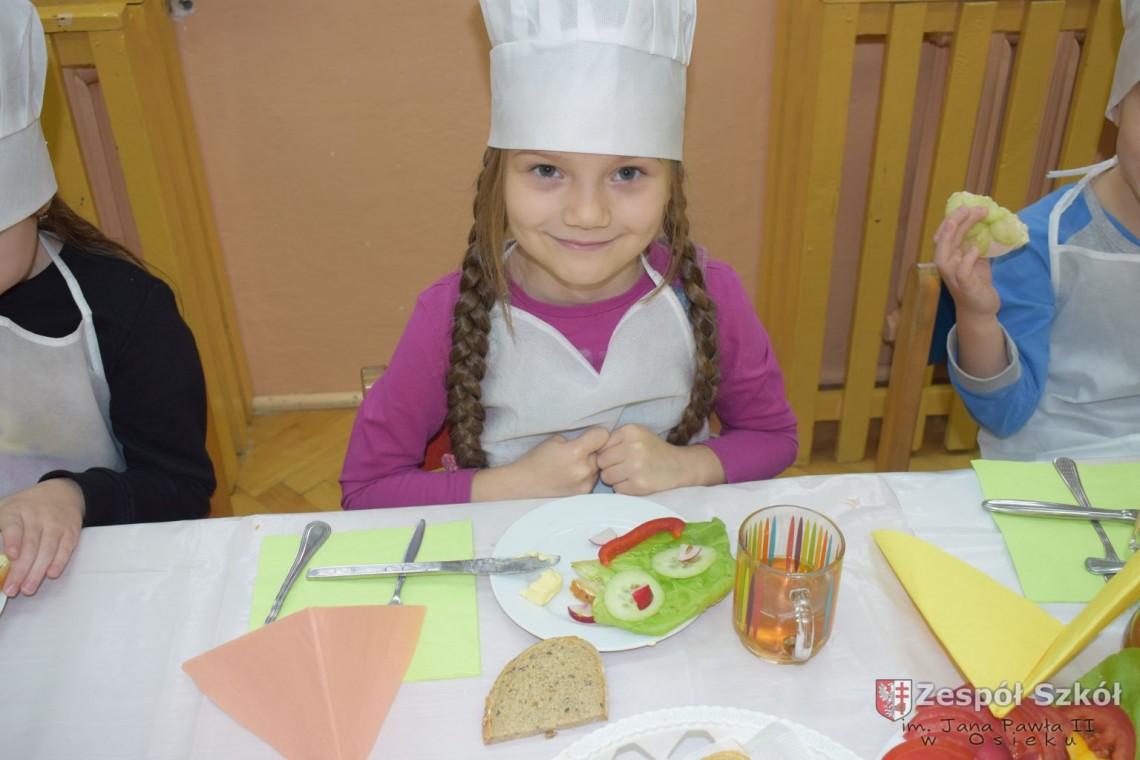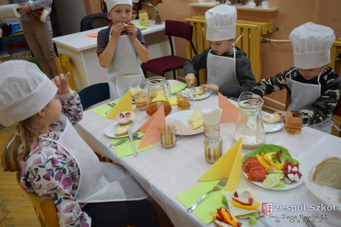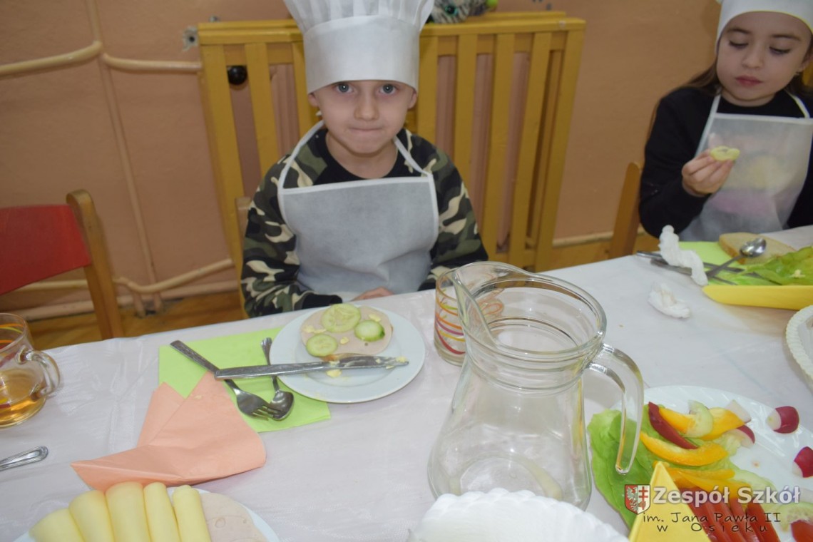 Biedronki i Muchomorki przygotowały pyszne, zdrowe, kolorowe kanapki, szaszłyki warzywne, zdrowe napoje. Najciekawszym momentem była degustacja. Wszystkie zdrowe produkty okazały się smaczne, ponieważ szybko zniknęły z talerzy.