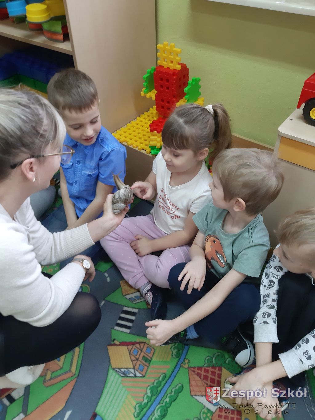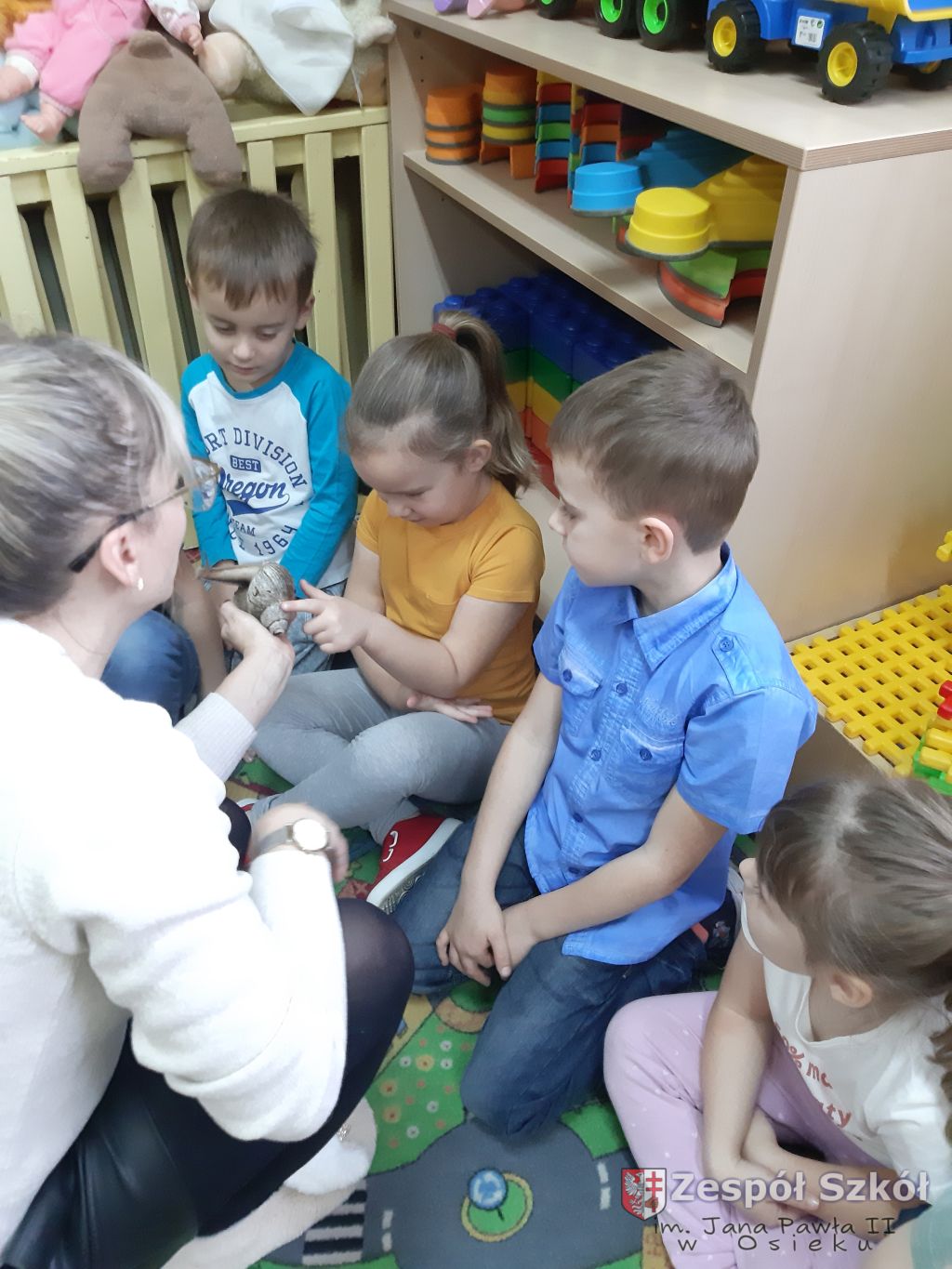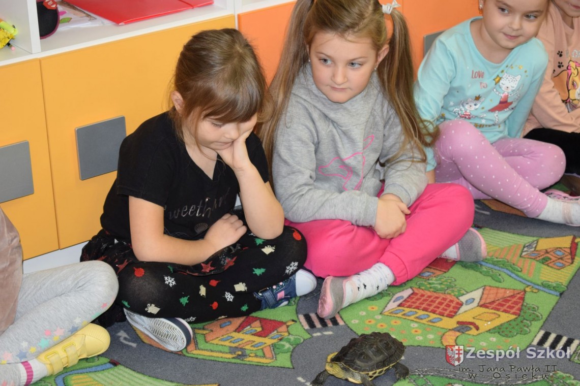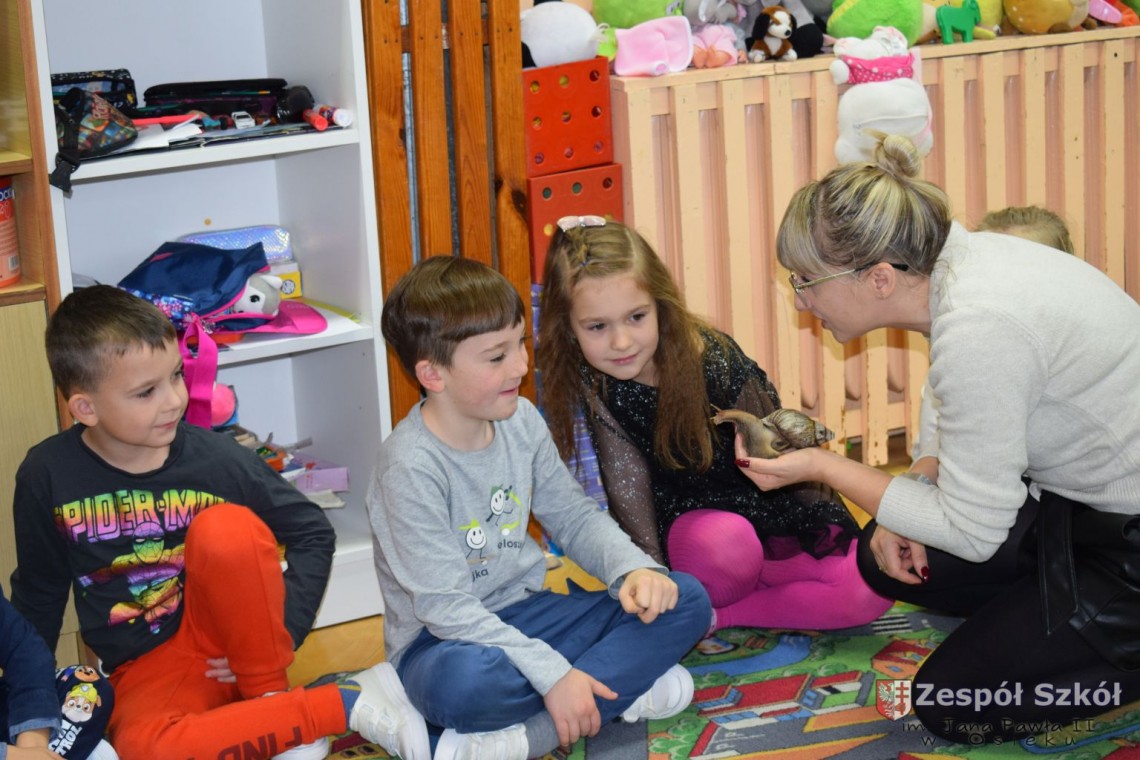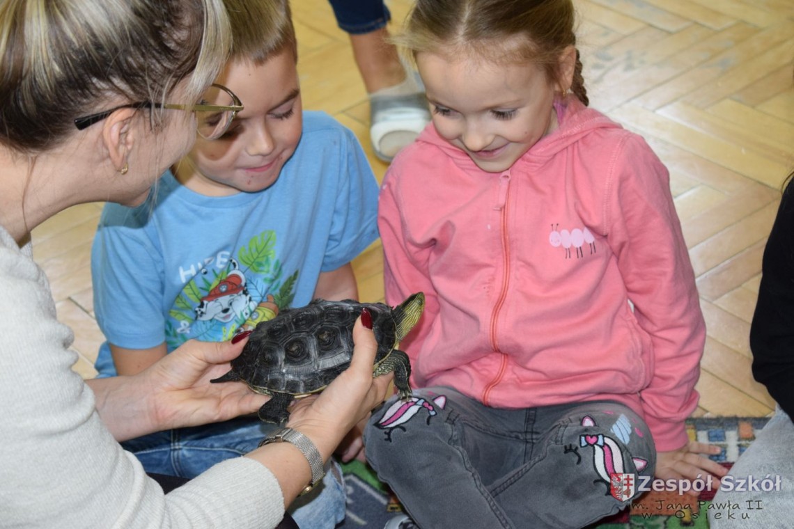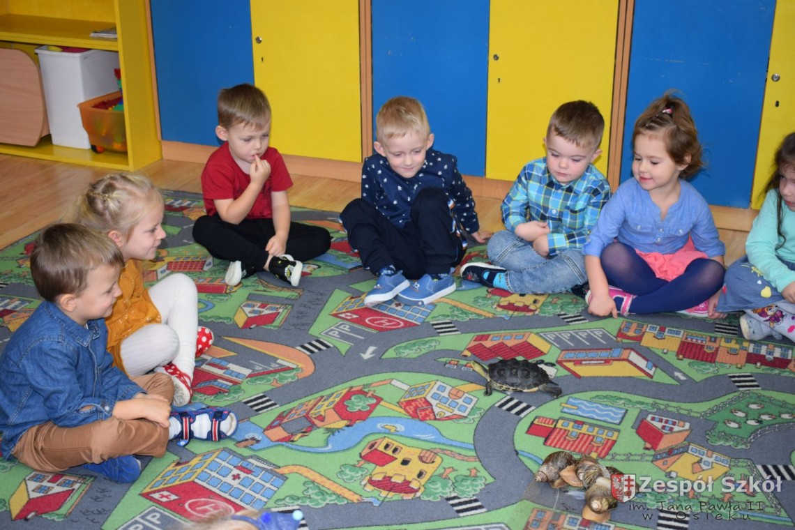 Taki temat był warsztatów egzotycznych dla przedszkolaków, które odbyły się w dniu 15 listopada. Dzieci miały możliwość zobaczyć  ślimaki afrykańskie Achatina, to największe ślimaki lądowe, są wielkości świnki morskiej oraz żółwia wodno – lądowego Stefana. Afrykańskie ślimaki Achatina oraz żółwie wodno-lądowe  to wyjątkowo ciekawe zwierzęta. Dzieci dowiedziały się jak należy dbać o nie, co jedzą, czemu mają blizny na muszlach, jakie maja znaczenie w przyrodzie no i to, że nie potrzebują domku tak jak inne zwierzęta, bo rodzą się z domkiem na swoim ciele.