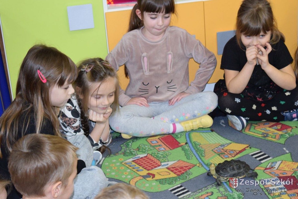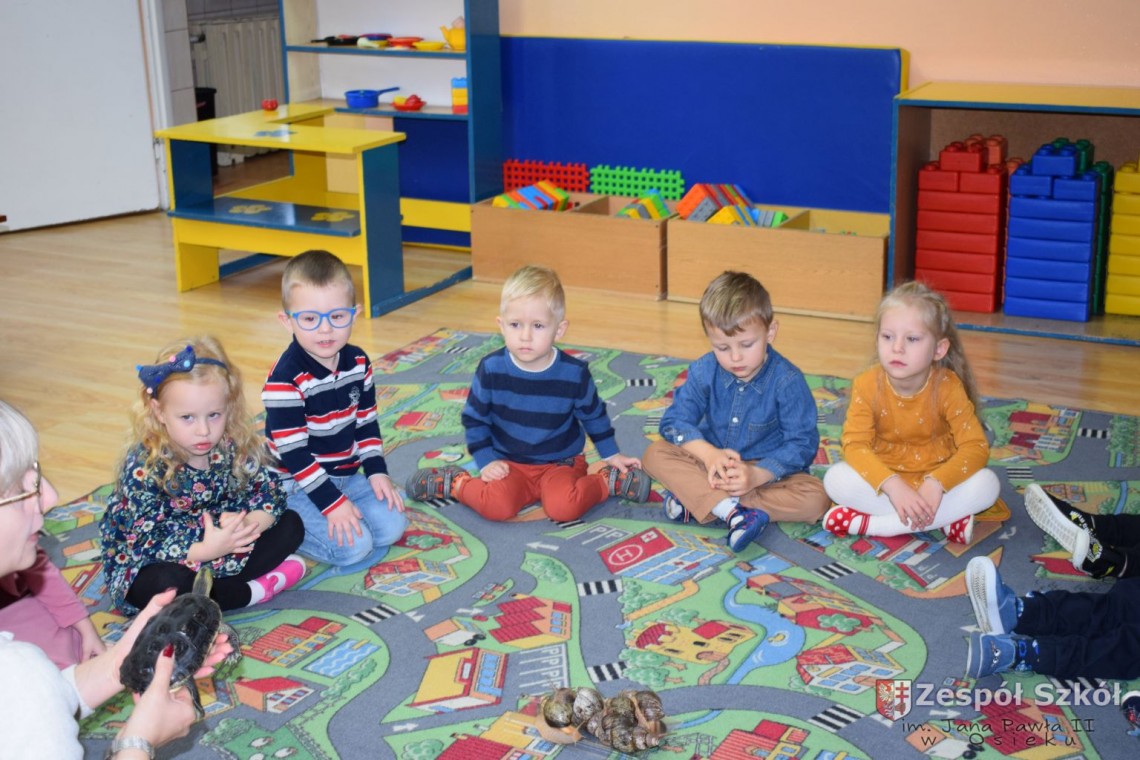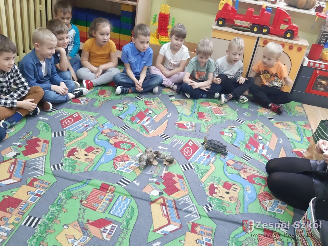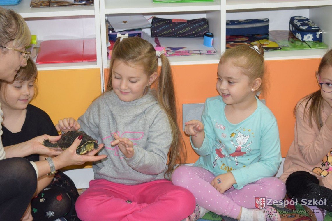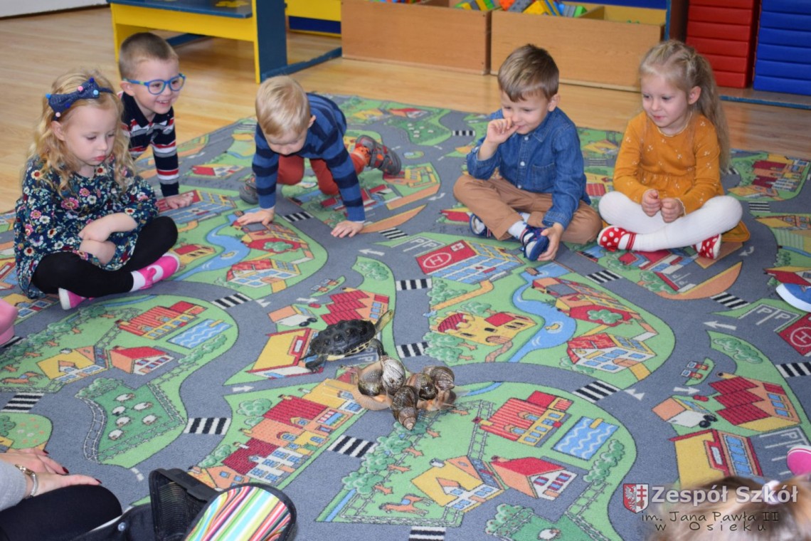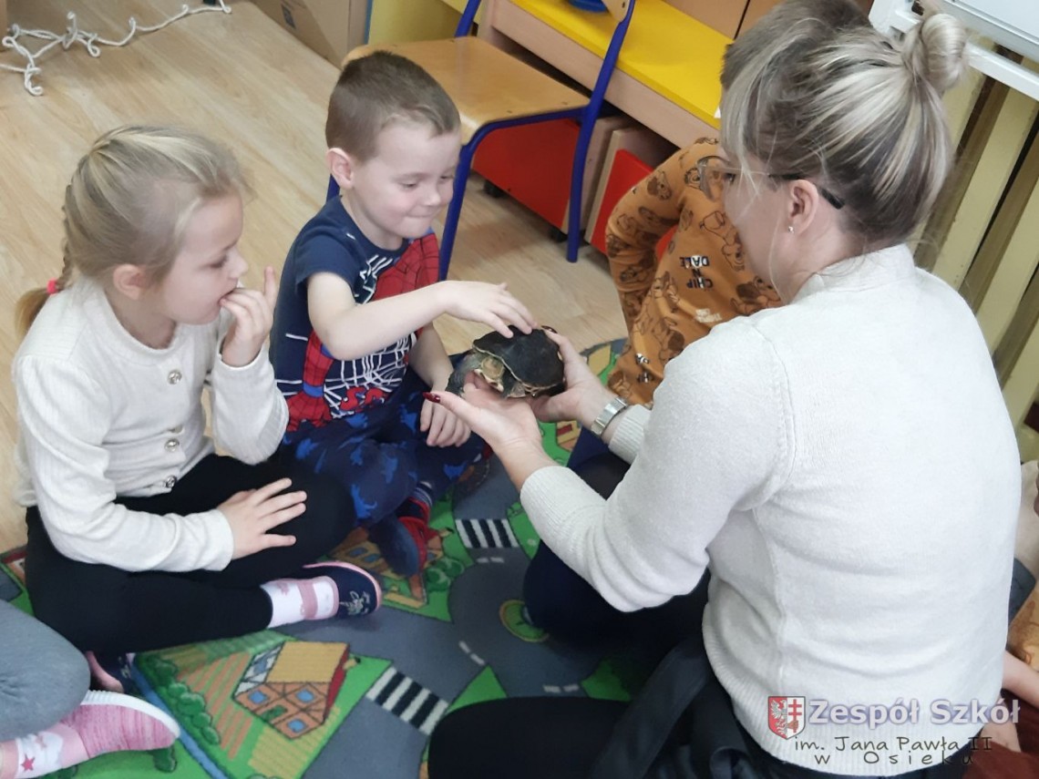 Taki temat był warsztatów egzotycznych dla przedszkolaków, które odbyły się w dniu 15 listopada. Dzieci miały możliwość zobaczyć  ślimaki afrykańskie Achatina, to największe ślimaki lądowe, są wielkości świnki morskiej oraz żółwia wodno – lądowego Stefana. Afrykańskie ślimaki Achatina oraz żółwie wodno-lądowe  to wyjątkowo ciekawe zwierzęta. Dzieci dowiedziały się jak należy dbać o nie, co jedzą, czemu mają blizny na muszlach, jakie maja znaczenie w przyrodzie no i to, że nie potrzebują domku tak jak inne zwierzęta, bo rodzą się z domkiem na swoim ciele.