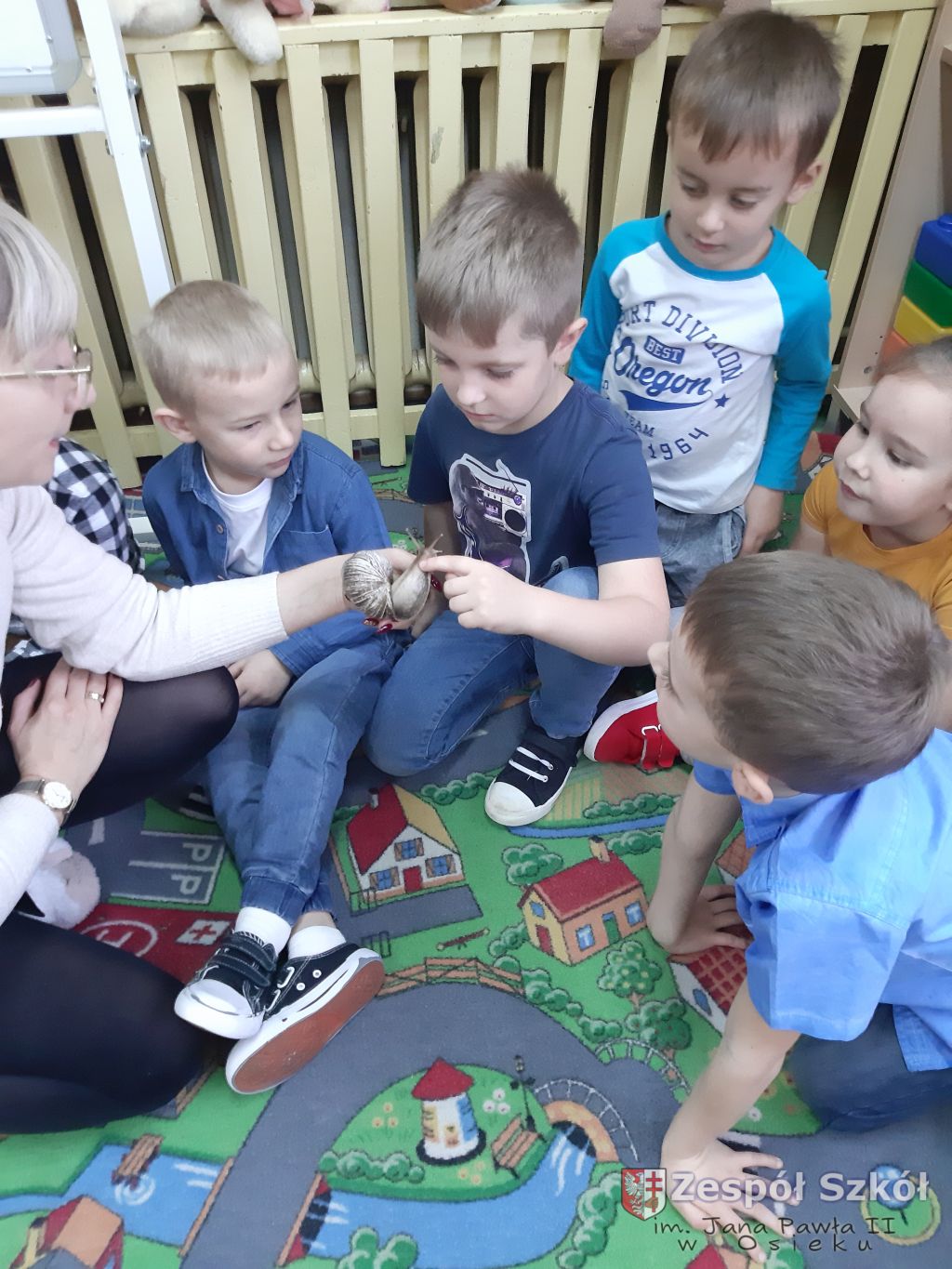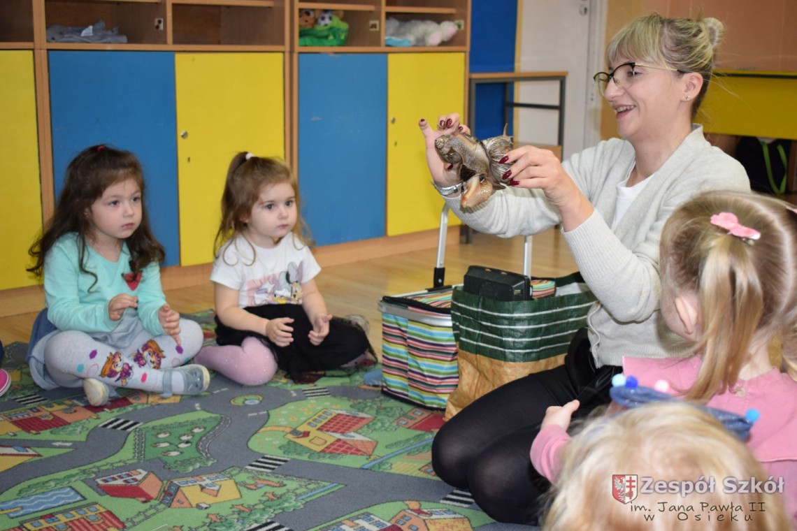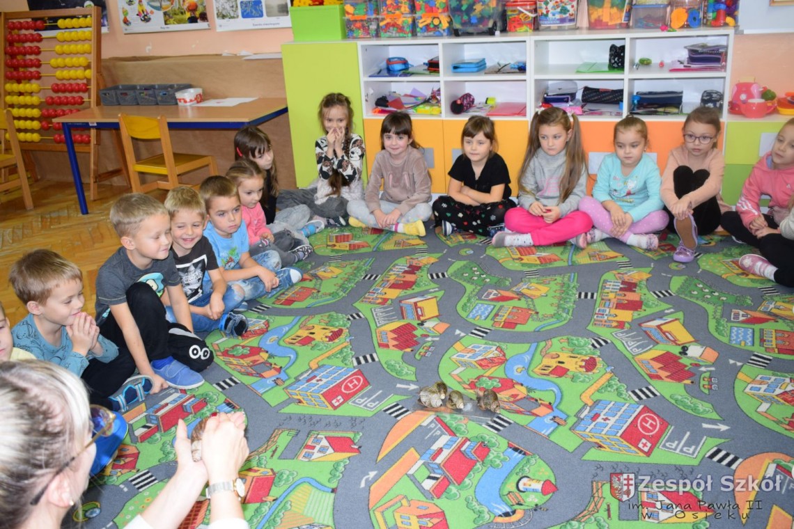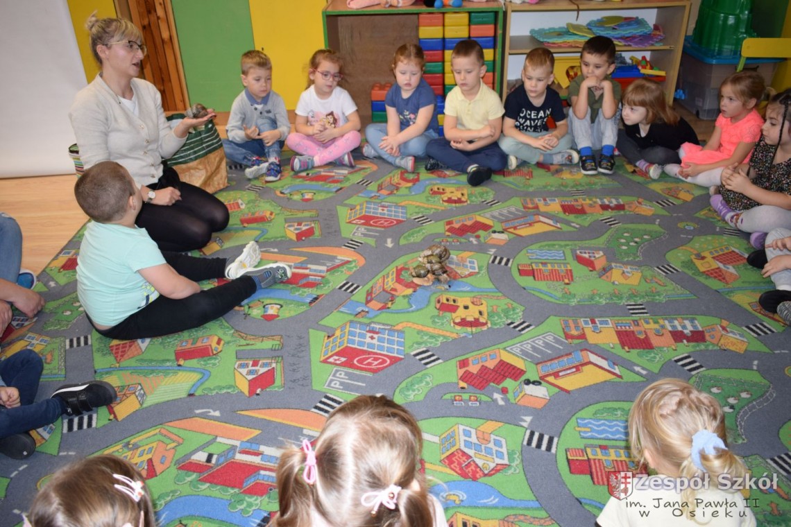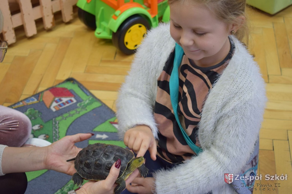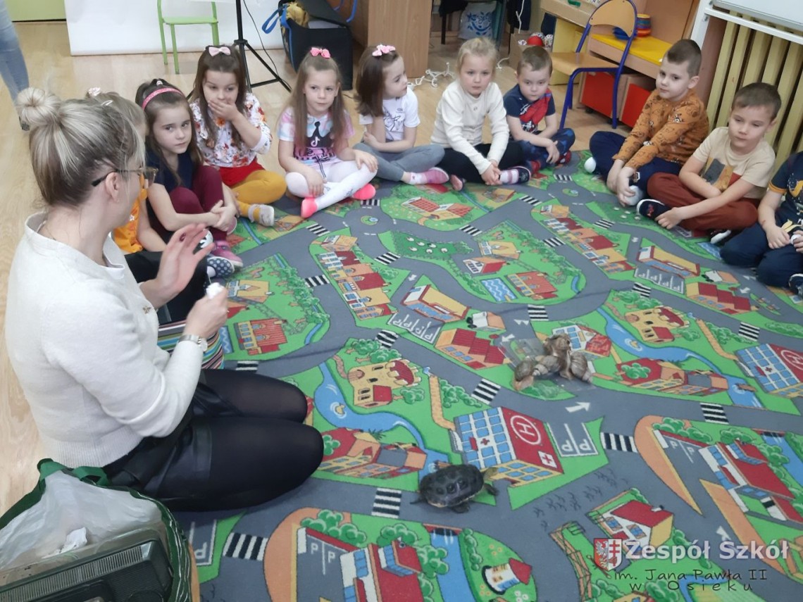 Taki temat był warsztatów egzotycznych dla przedszkolaków, które odbyły się w dniu 15 listopada. Dzieci miały możliwość zobaczyć  ślimaki afrykańskie Achatina, to największe ślimaki lądowe, są wielkości świnki morskiej oraz żółwia wodno – lądowego Stefana. Afrykańskie ślimaki Achatina oraz żółwie wodno-lądowe  to wyjątkowo ciekawe zwierzęta. Dzieci dowiedziały się jak należy dbać o nie, co jedzą, czemu mają blizny na muszlach, jakie maja znaczenie w przyrodzie no i to, że nie potrzebują domku tak jak inne zwierzęta, bo rodzą się z domkiem na swoim ciele.