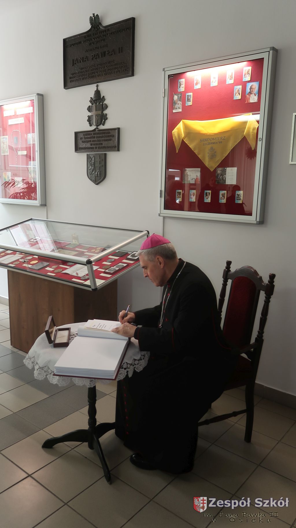Za możliwość spotkania się Ksiądz Biskup podziękował Pani Dyrektor szkoły, oraz wyraził swoją wdzięczność wszystkim nauczycielom i pracownikom, przede wszystkim za poświęcenie, jakie wkładają w wychowanie młodego pokolenia.